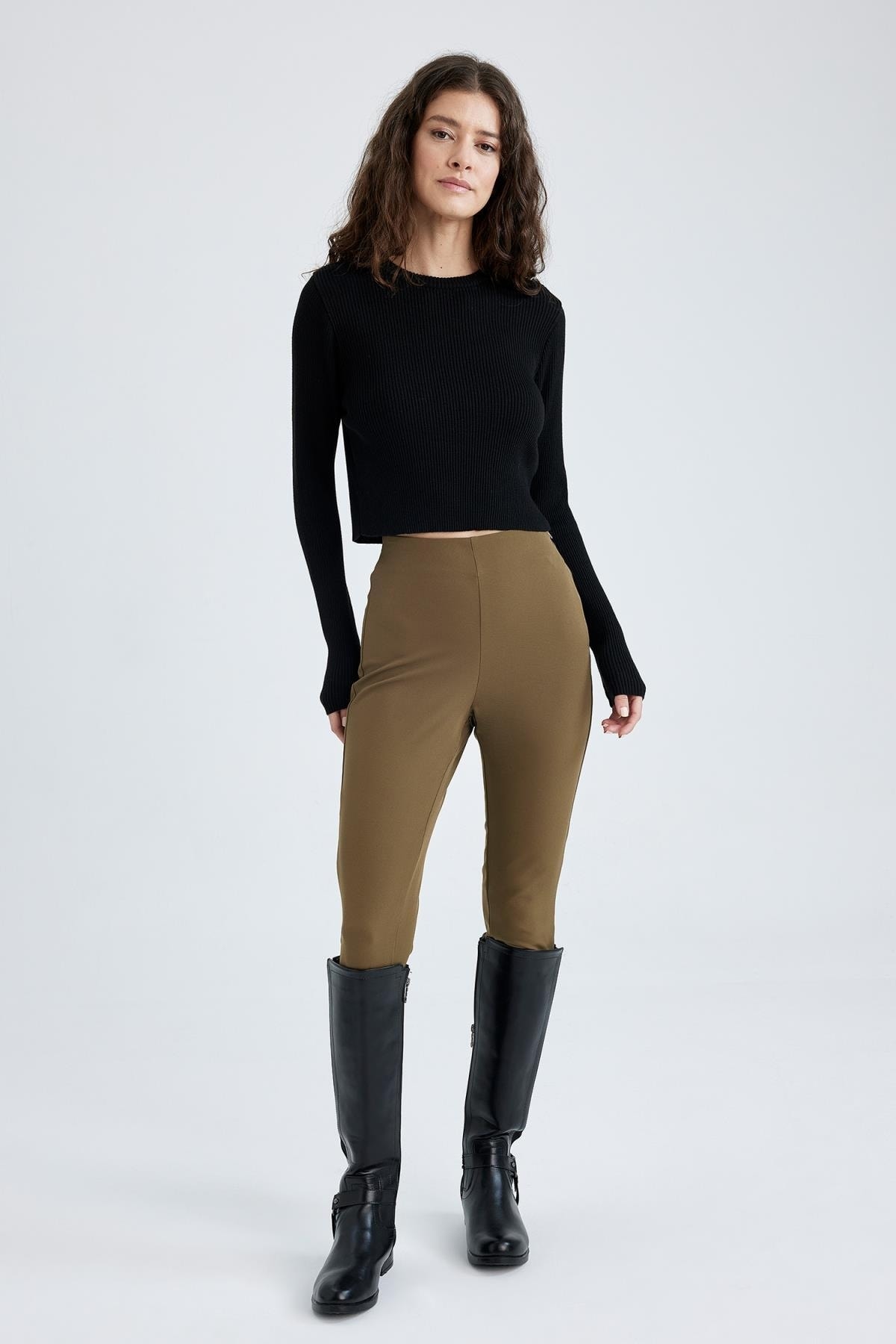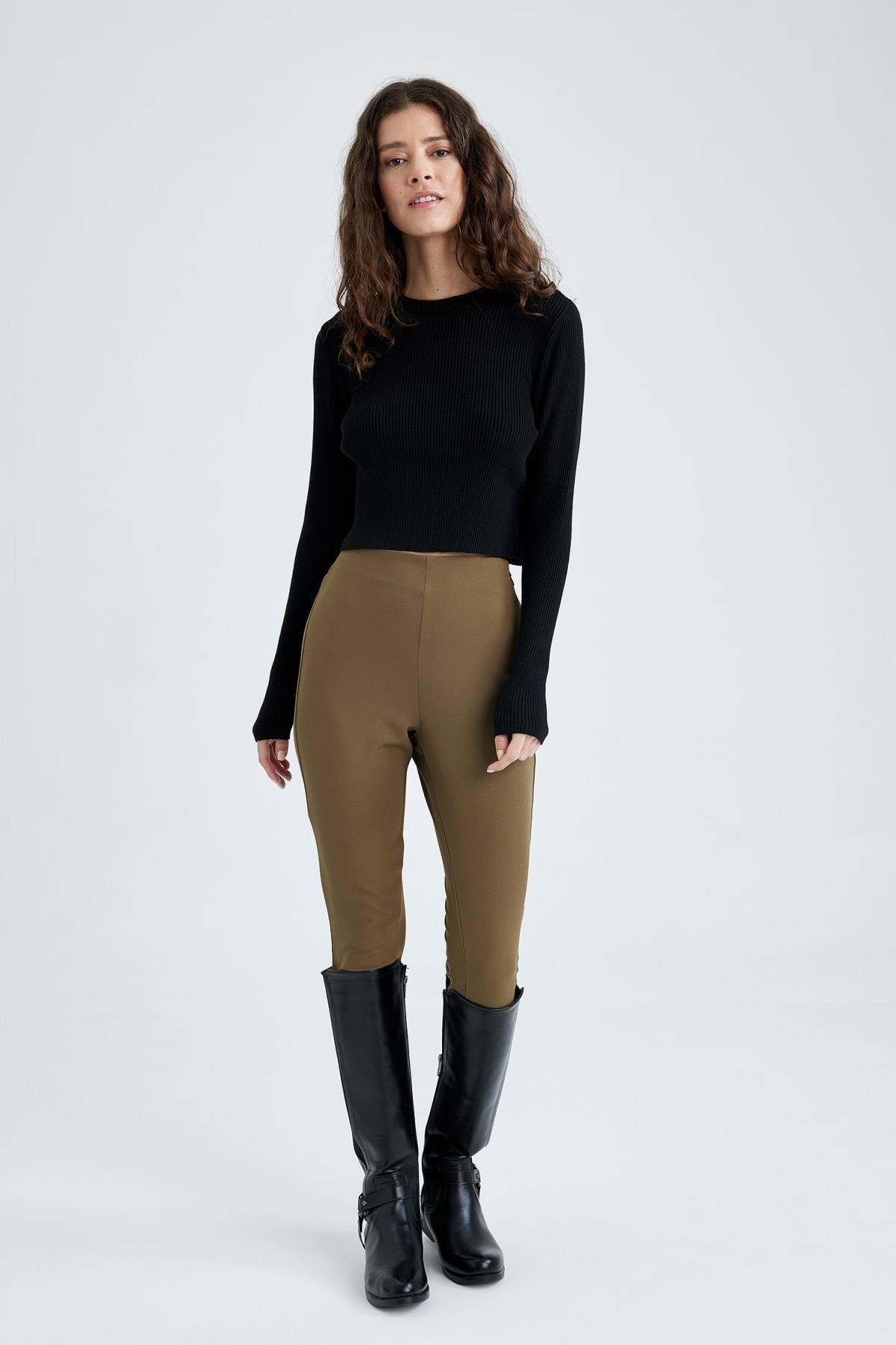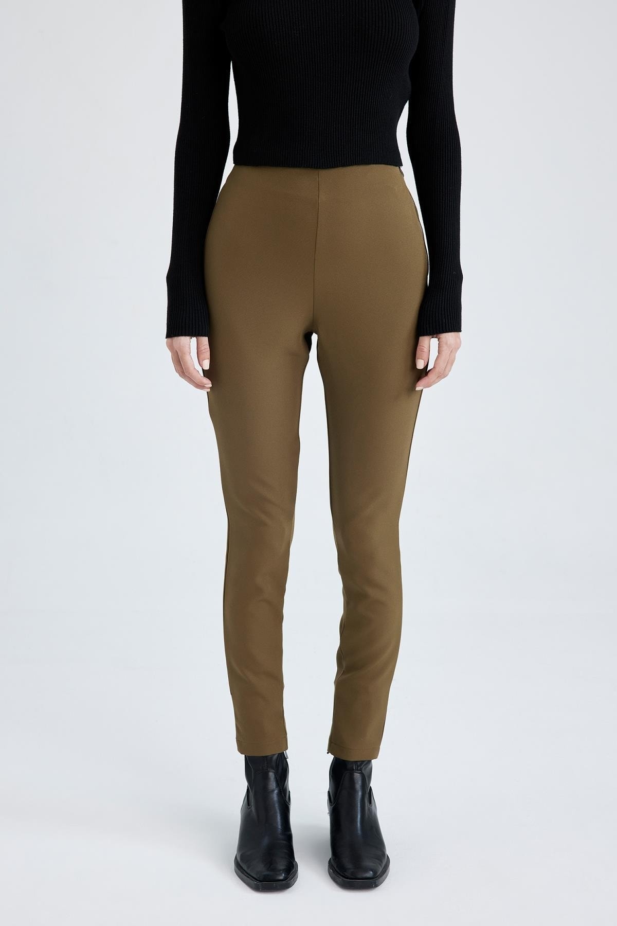 Skinny fit dar kesimi, yan fermuarlı tasarımı ile spor veya günlük giyiminizde tercih ederek trend görünebileceğiniz, basic crop tişört, tunik gömlek, sweatshirt, kapüşonlu hırkalarla kombinleyebileceğiniz DeFacto Kadın Skinny Fit Bilek Boy Pantolon.