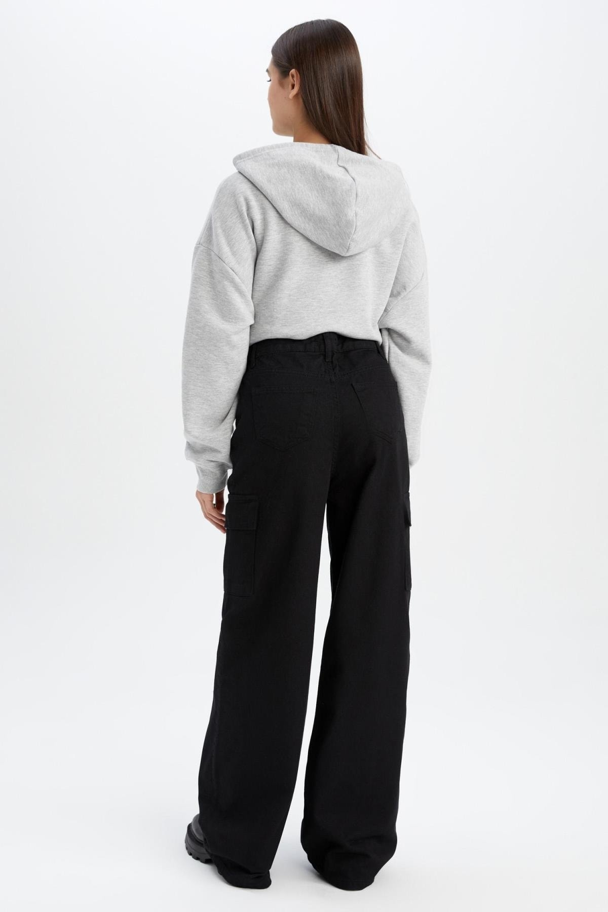 Rahat kesimi ile kolayca fit bir görünüm elde edebileceğiniz aynı zamanda trend görünebileceğiniz dilediğiniz, rengiyle son derece stil sahibi, crop top, crop sweatshirt, crop tişört, flanel gömlek, ekoseli gömlek, kare yaka bluz ve gömleklerle kombinleyebileceğiniz, düğme kapamalı kullanışlı tasarımıyla DeFacto Kadın Geniş Paça Kargo Gabardin Pantolon.