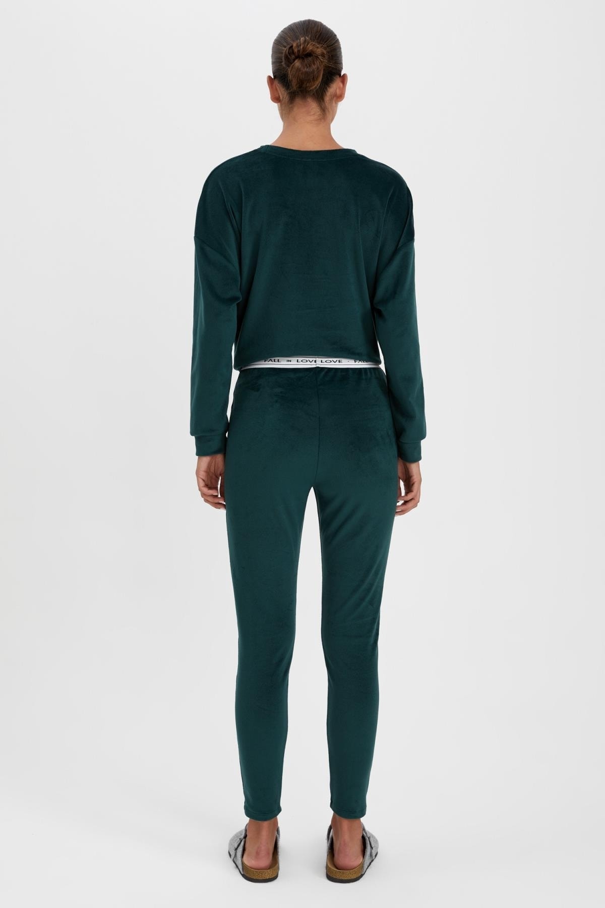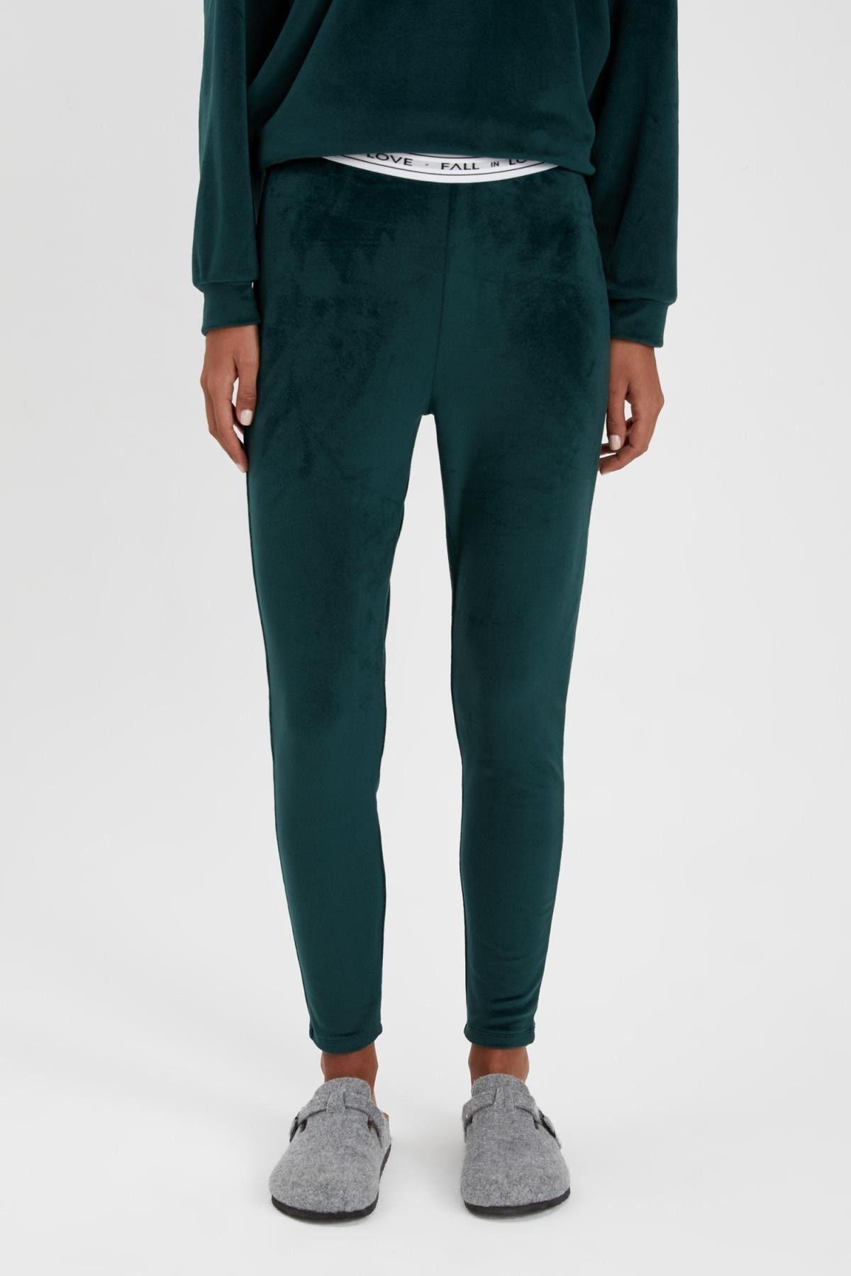 Beli slogan baskılı uzun alt tasarımıyla, rahat kalıbı ile evde hem rahat olmak hem de güzel görünmek isteyen kadınlar için, yumuşacık velur kumaşıyla tercih edeceğiniz DeFacto Kadın Fall In Love Regular Fit Beli Baskı Detaylı Pijama Altı