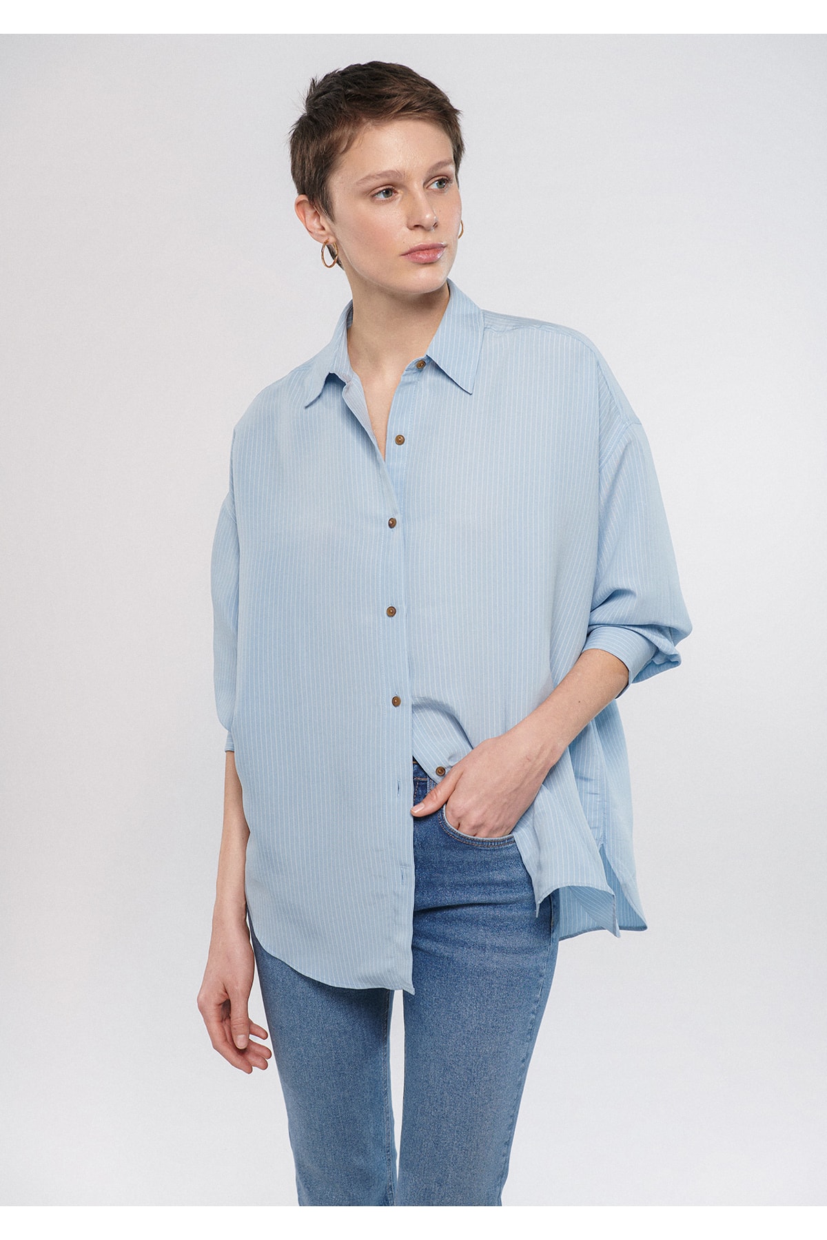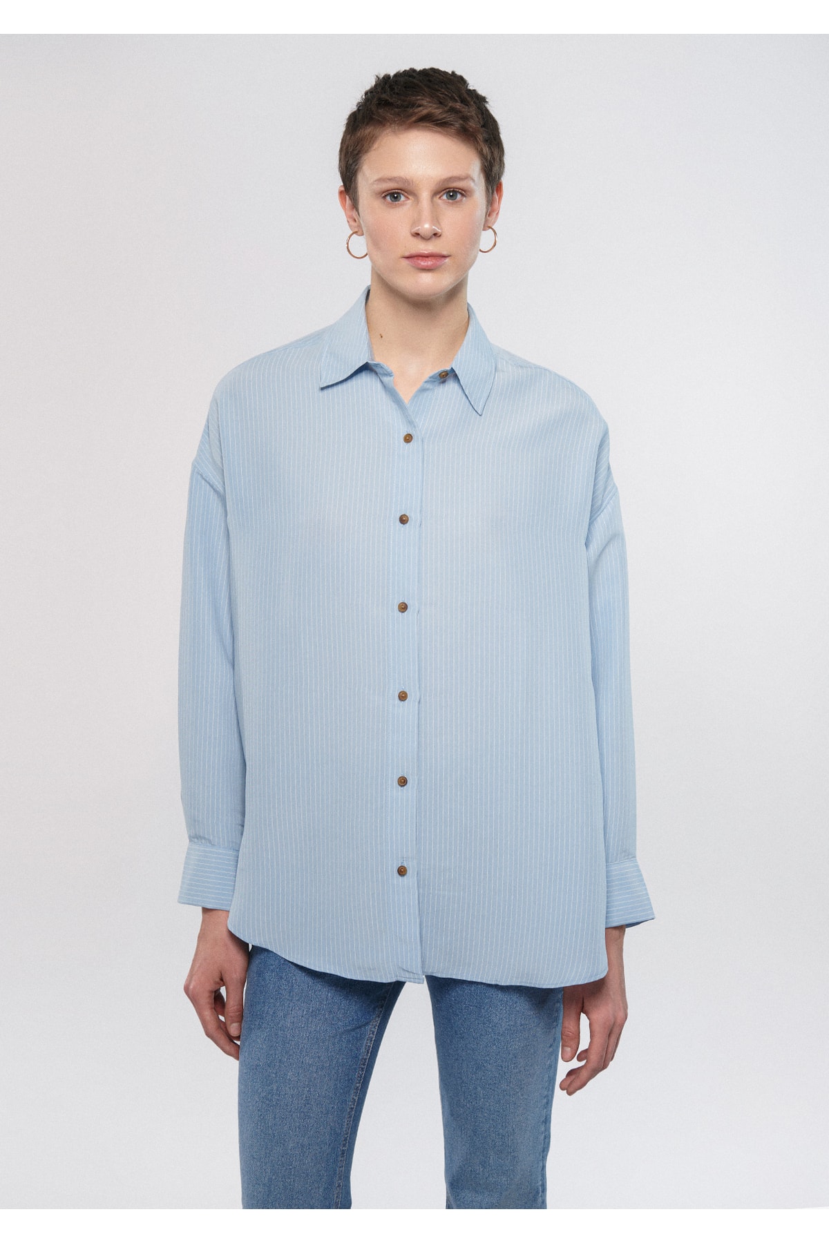 Mavi nin Lux Touch Koleksiyonundan Lux Touch Çizgili Mavi Gömlek Uzun Kol Model Ölçüleri: Boy: 178 cm Bel: 60 cm Göğüs: 86 cm Kalça: 88 cm Model Üzerindeki Ürün Bedeni Jeanler İçin, Bel: 25 Boy: 32 Diğer Ürünlerde: S Materiel:%82 Modal %18 Polyester Gender:Kadın Sleeve:Uzun Kol