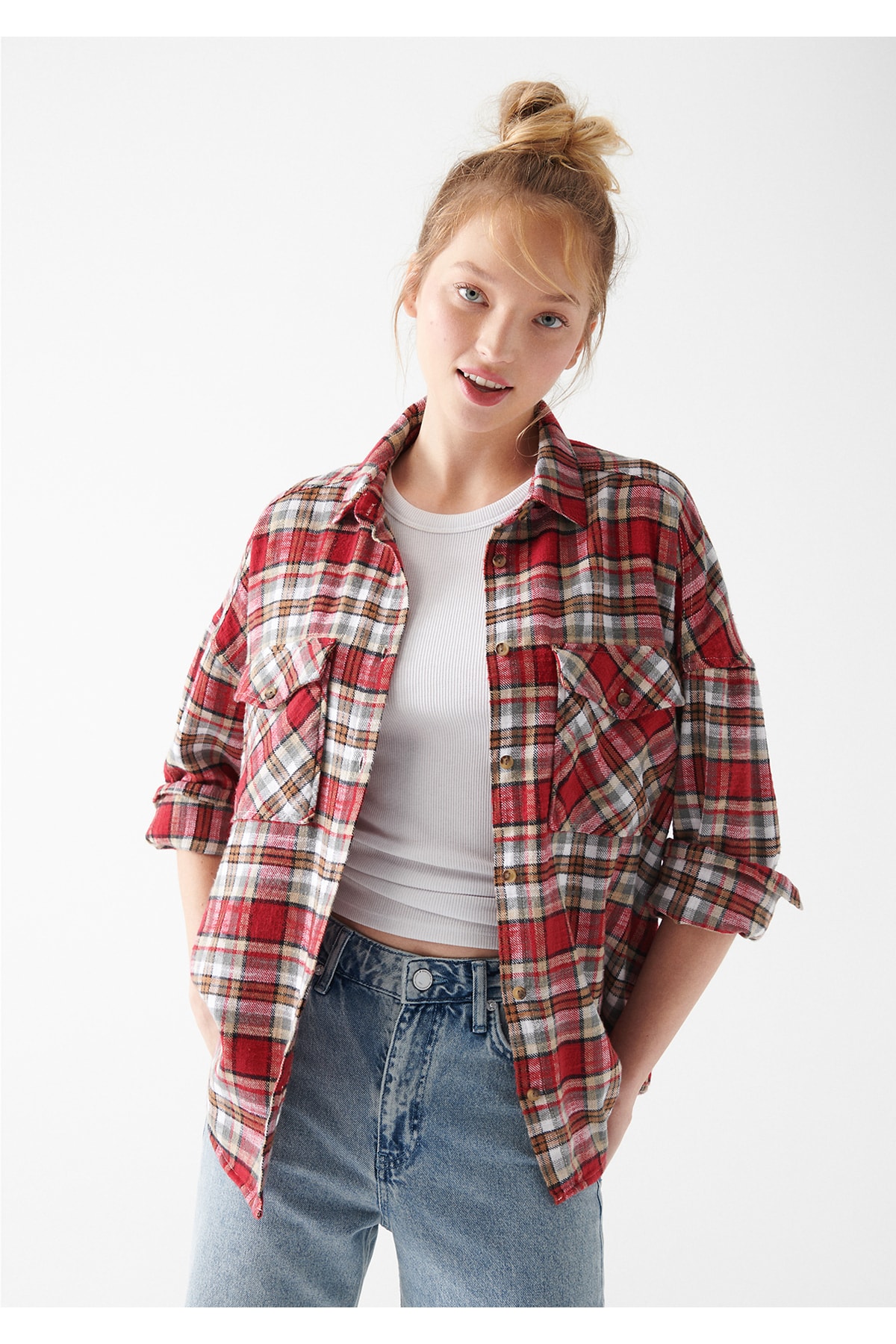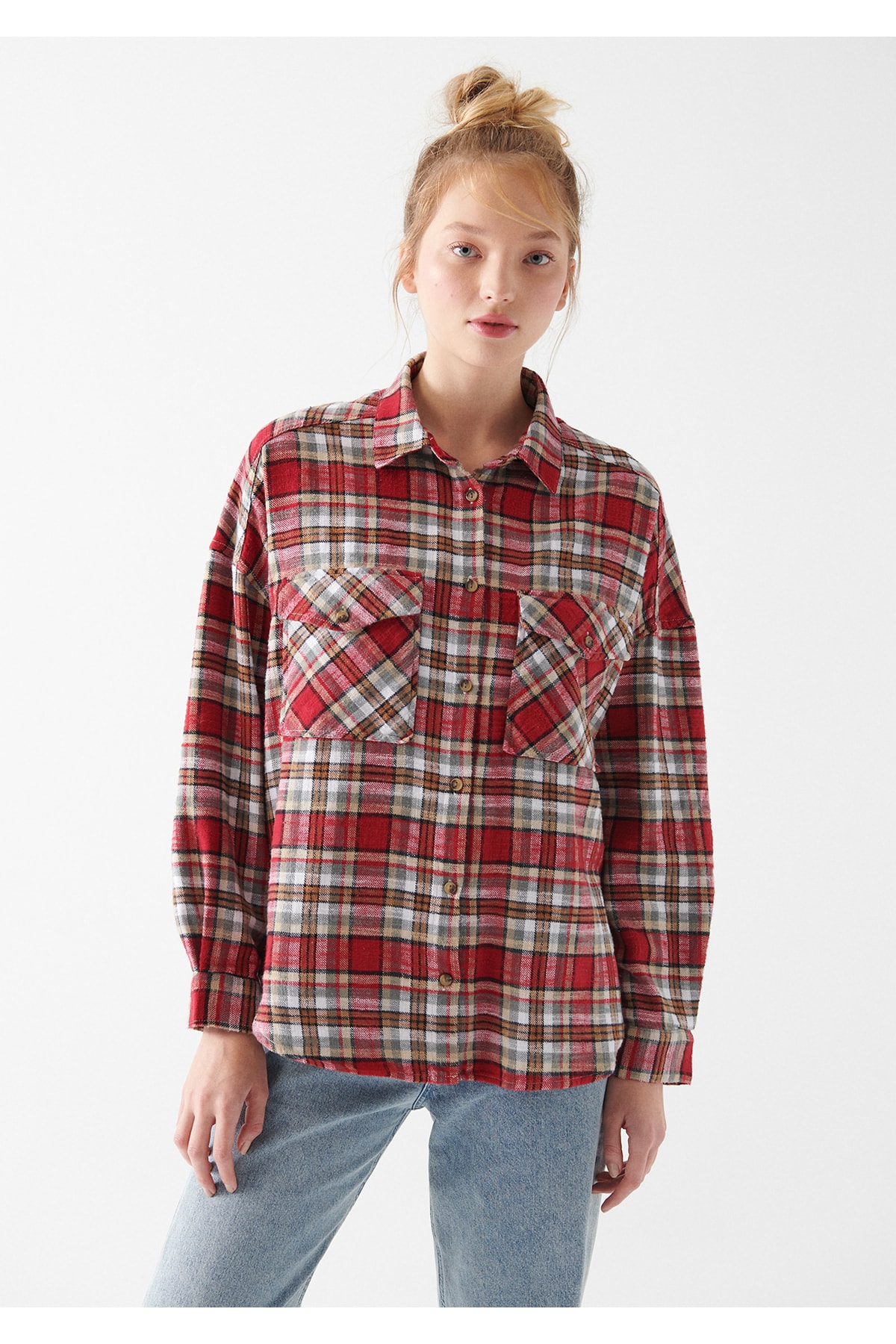 - نام : Kareli Kırmızı Gömlek Loose Fit / Bol Rahat Kesim 1210295-83173