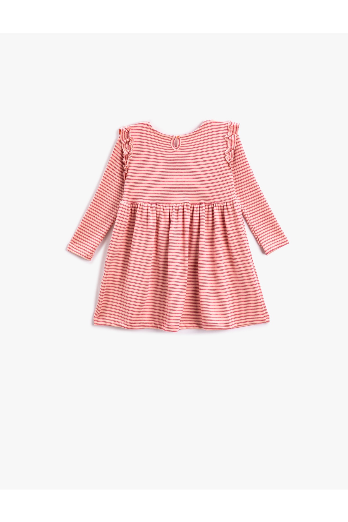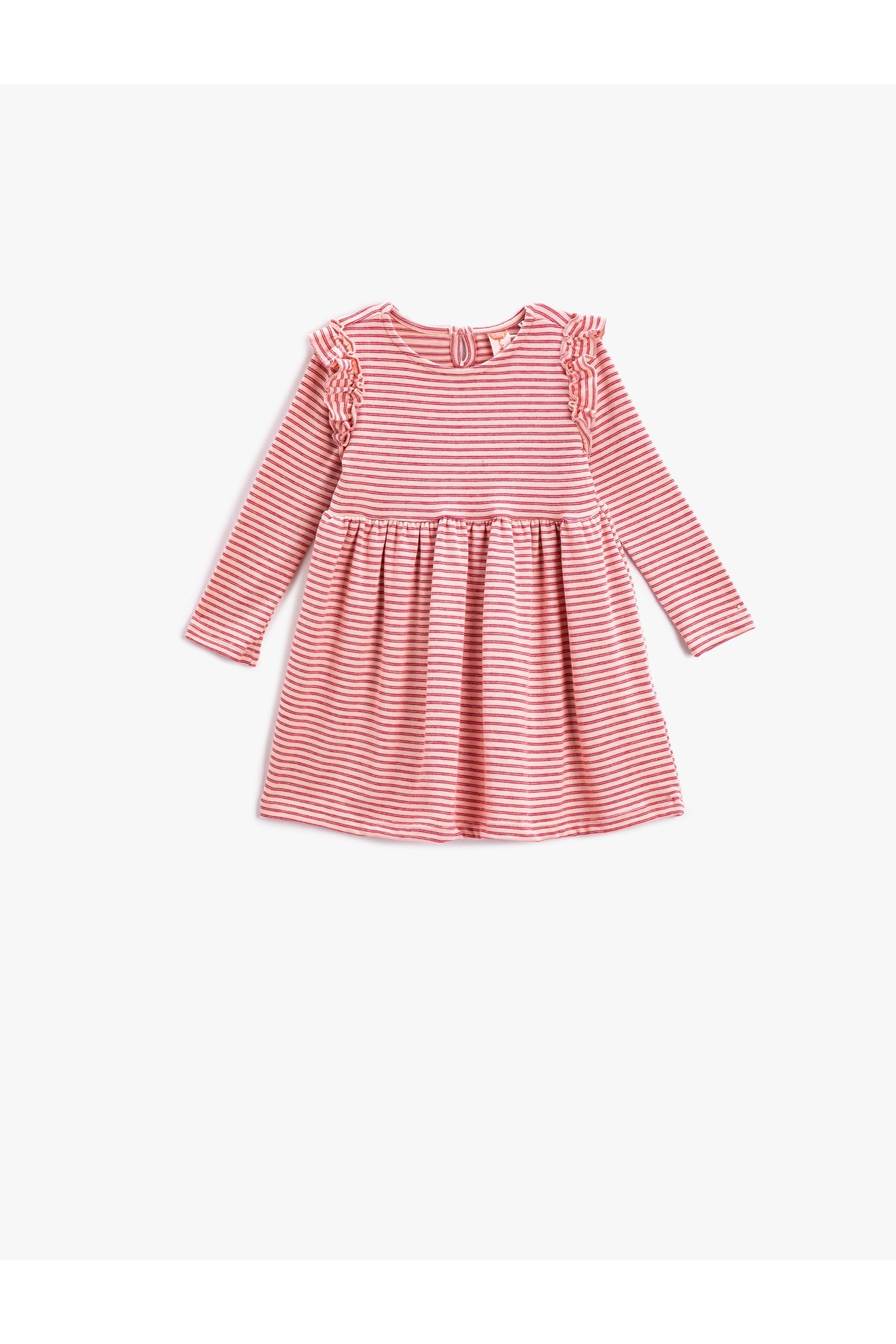 Günlük yaşamın olmazsa olmazı elbiseler, Koton kalitesi ile buluşarak bebeklerin konforunu yükseltiyor. Fırfırlı, bisiklet yaka, uzun kollu elbise şık görünümün yanı sıra bebekler için pratik kullanım imkanı sunuyor.