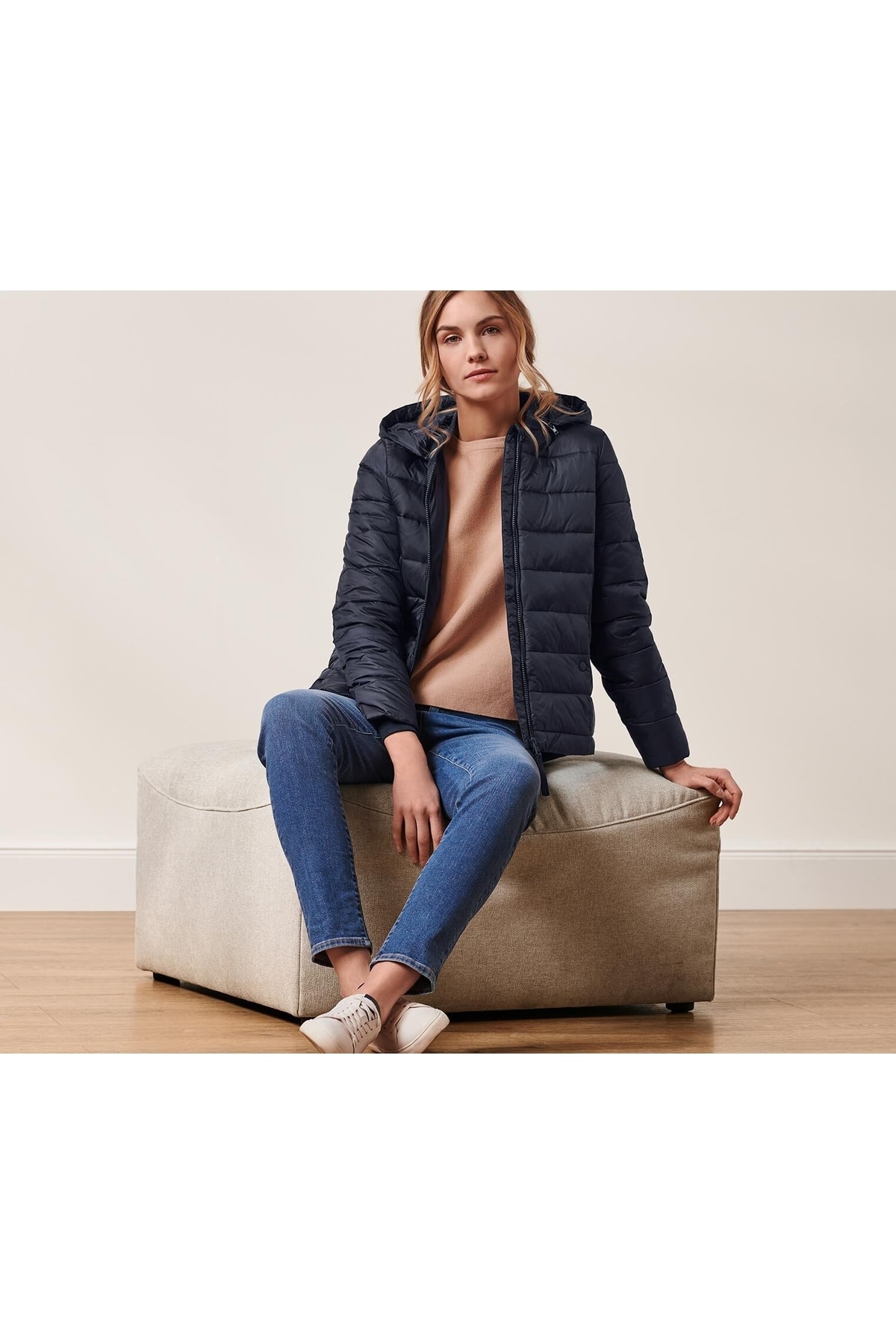 Kapüşonlu Kapitone Mont, Lacivert Kesim: Regular Fit Renk: Lacivert Malzeme: Ana kumaş ve astar %100 poliamitDolgu %100 polyester (geri dönüştürülmüş)Ribana %94 polyester, %6 elastan Ölçüler: Toplam uzunluğu yakl. 69 cm (40 beden) Geri dönüştürülmüş malzemeden hafif, sıcak tutan dolgu|Çıt çıt düğmeli yan cepler|Çıkarılabilir kapüşonlu mont|Elastik ribanalı kol ağızları ve dik yaka|Fermuarlı ön kısım|Kadınsı bir siluet için Viyana dikişli|Bu kapitone mont PET şişeler geri dönüştürülerek yapılmıştır.