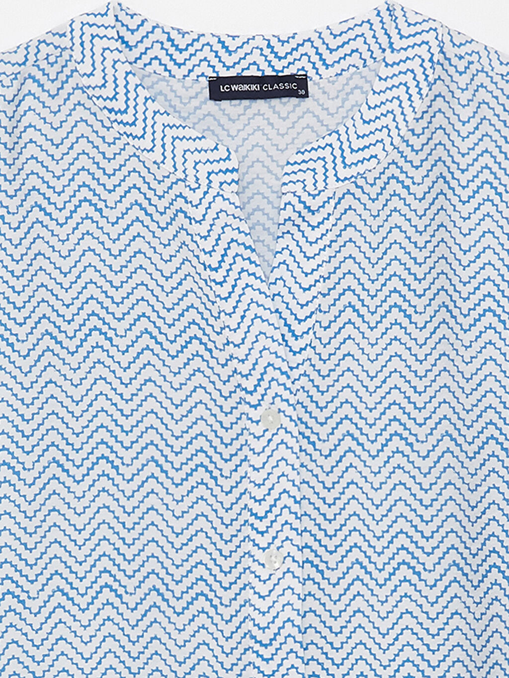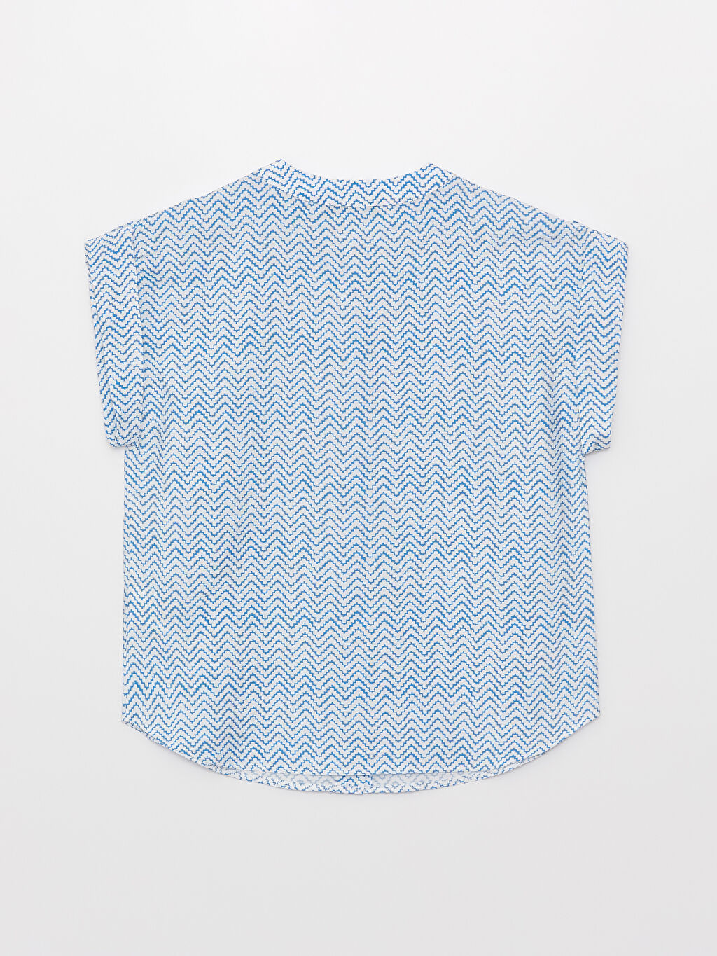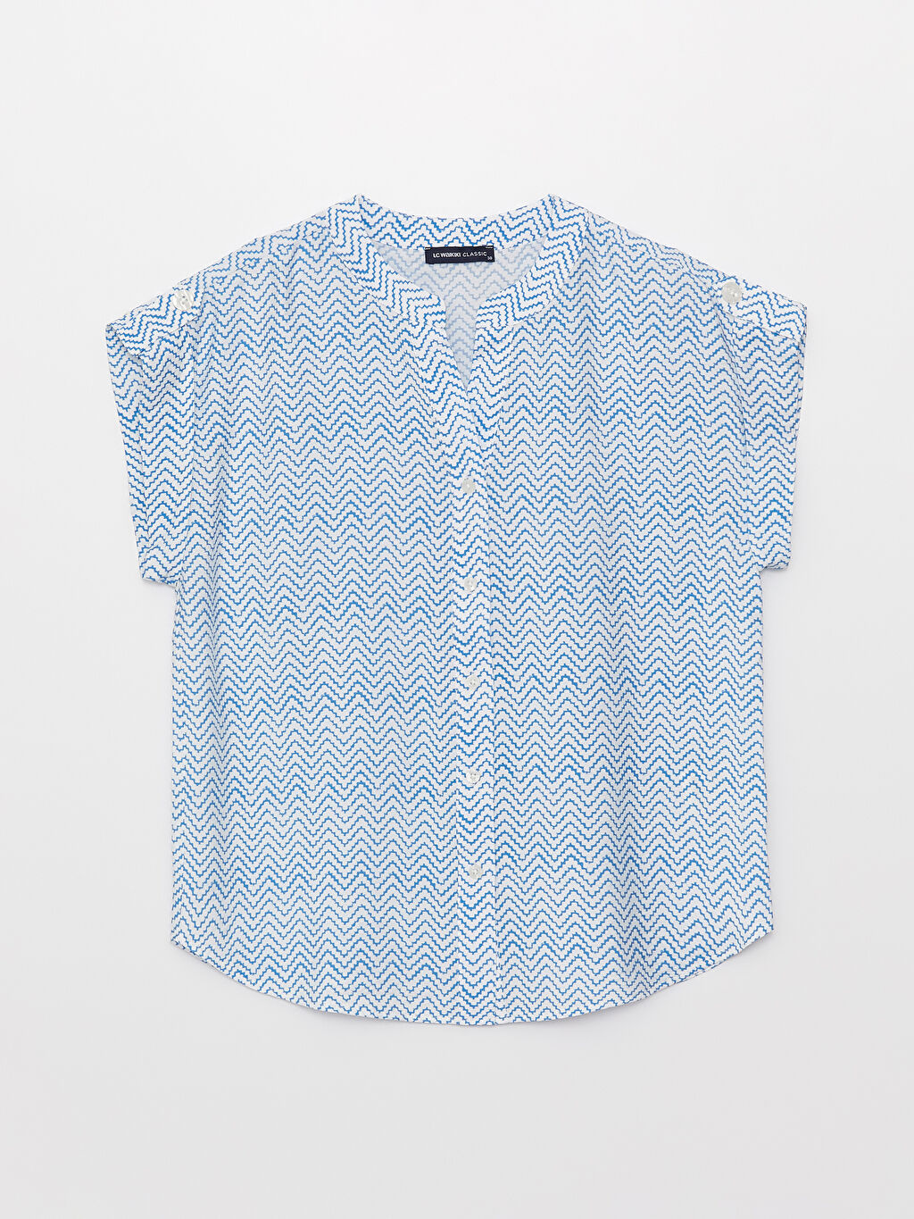 - نام : Kaçık Yaka Desenli Kısa Kollu Kadın Gömlek