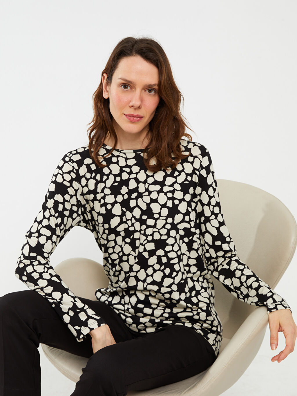 - نام : Bisiklet Yaka Desenli Uzun Kollu Kadın Tişört