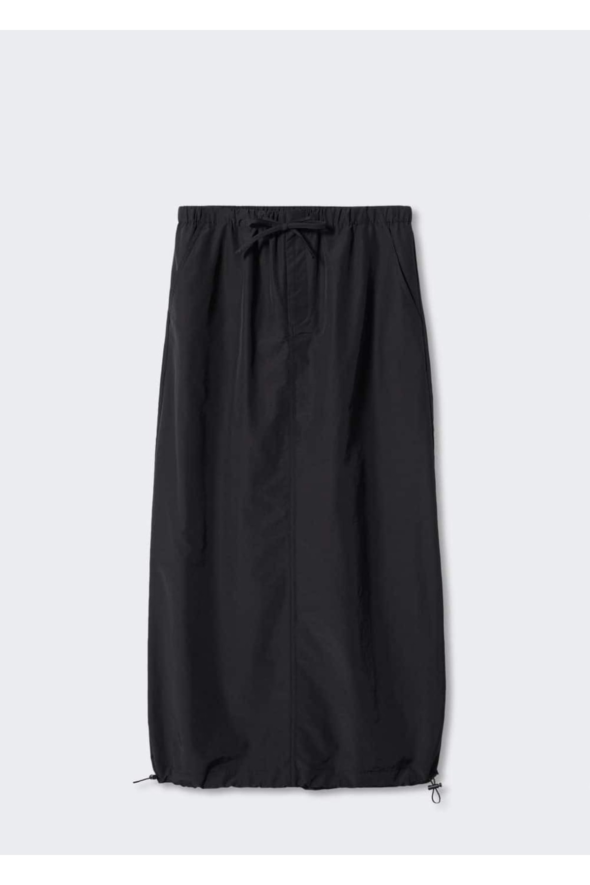 Etek .-- parachut. Naylon kumaş, Düz tasarım, Uzun model, Elastik bant, Bağcıklı, Fermuar kapamalı, Altı bağcıklı. 51% polyamid,49% pamuk, Astar: 80% polyester,20% pamuk. Yan dikiş uzunluğu 93.5 cm, Etek uzunluğu 94.0 cm. KISA SANTRFÜJLE MAKİNEDE MAKS. 30°C'DE YIKAYIN, ÇAMAŞIR SUYU KULLANMAYIN, MAKS. 110°C İLE ÜTÜLEYİN, PERKLOROETİLEN KURU TEMİZLEME UYGULAYIN, KURUTMA MAKİNESİNDE KURUTULAMAZ