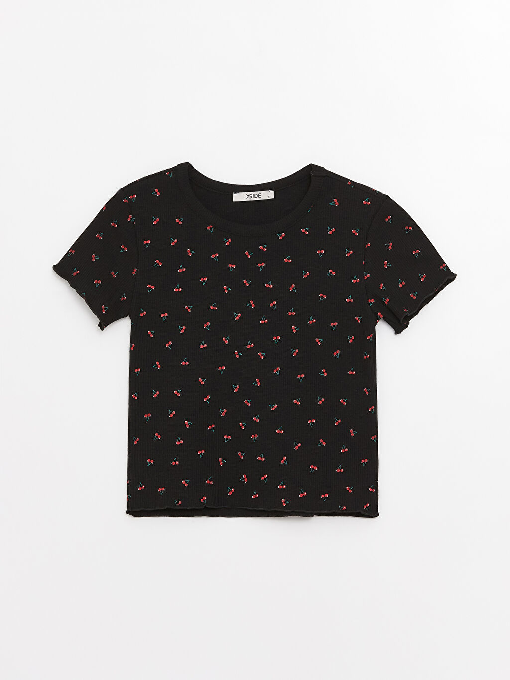- نام : Bisiklet Yaka Desenli Kısa Kollu Kadın Crop