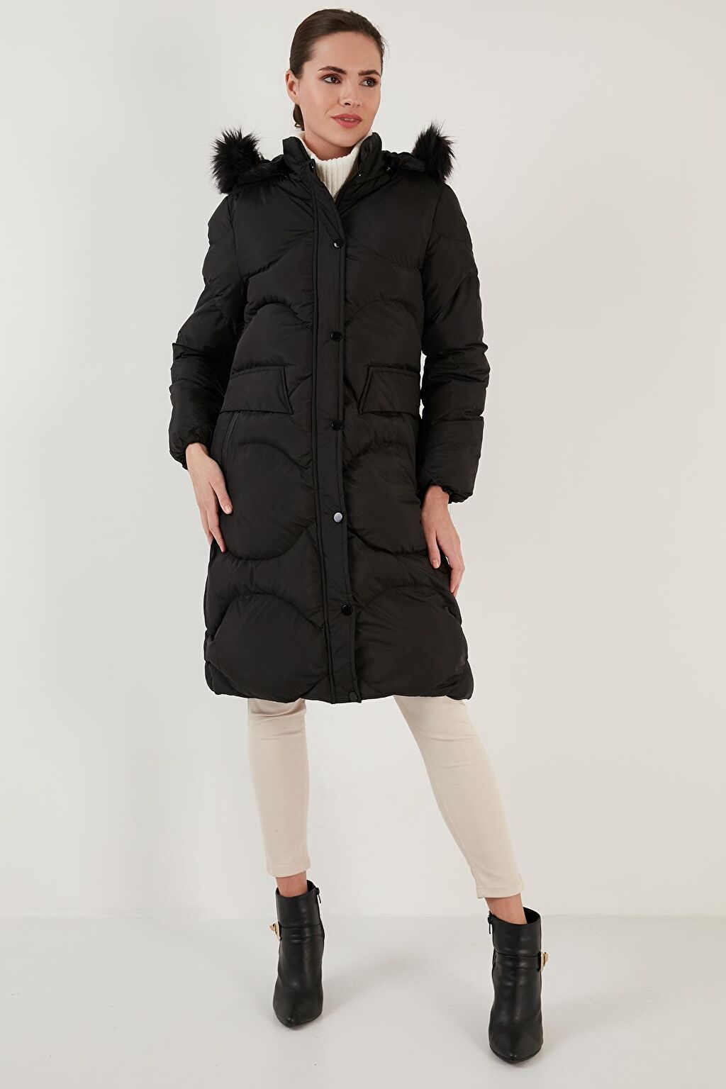- نام : Yakası Suni Kürklü Çıkarılabilir Kapüşonlu Kapitone Kışlık Uzun Tesettür Mont 6477401