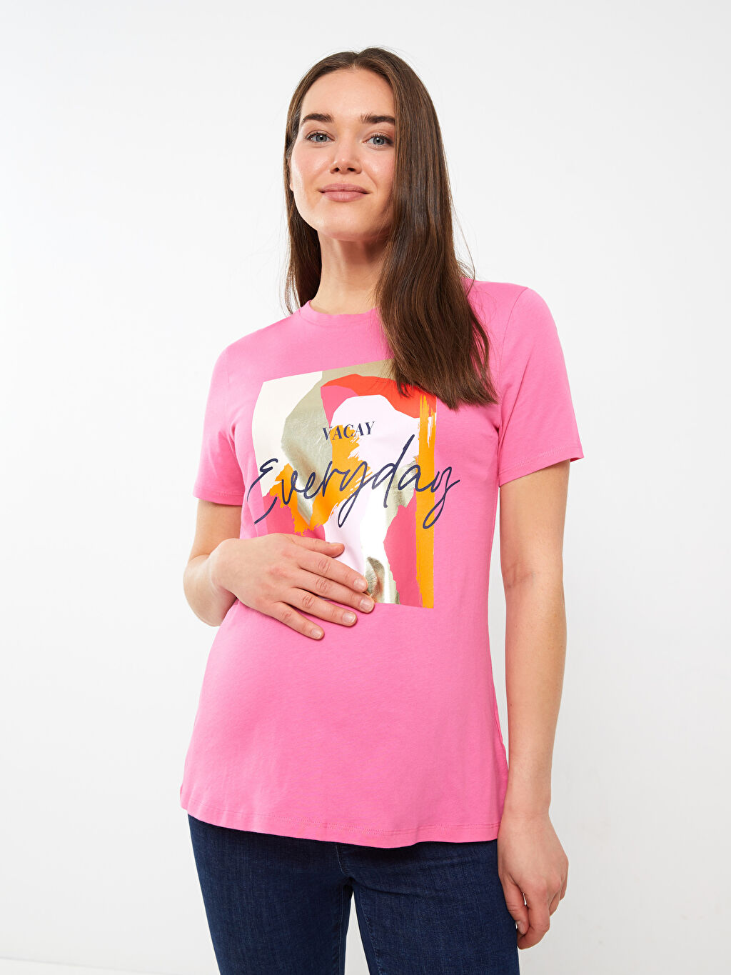 - نام : Bisiklet Yaka Baskılı Kısa Kollu Hamile Tişört