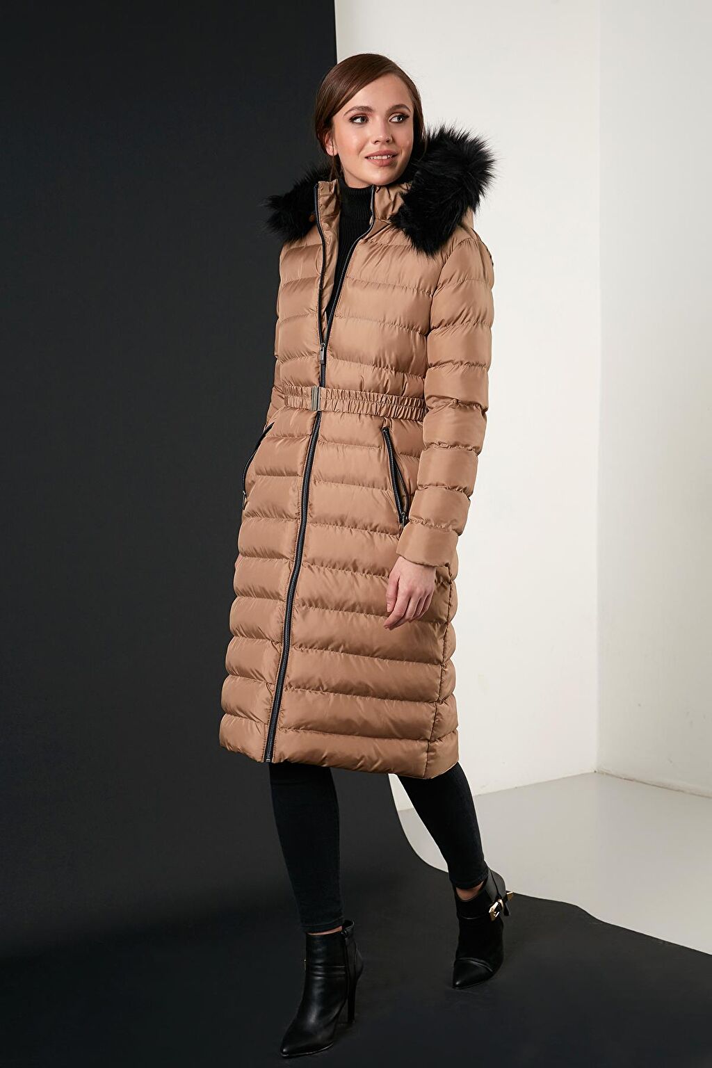 - نام : Çıkarılabilir Tüylü Kapüşonlu Cepli Uzun Kaban 497FIRUZE