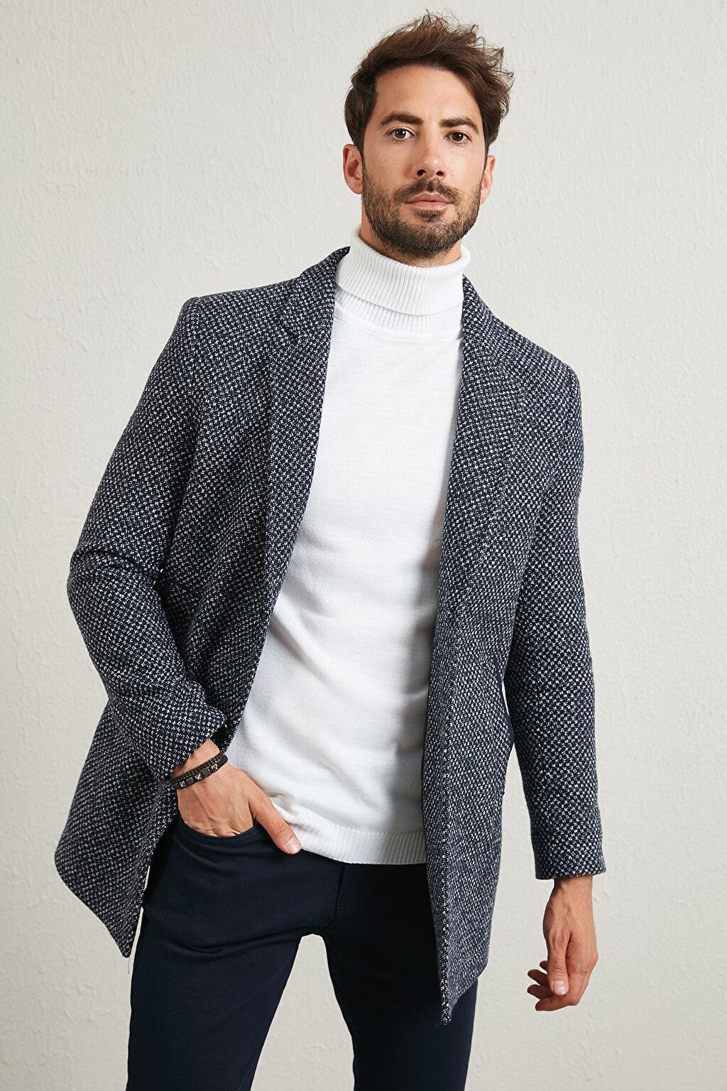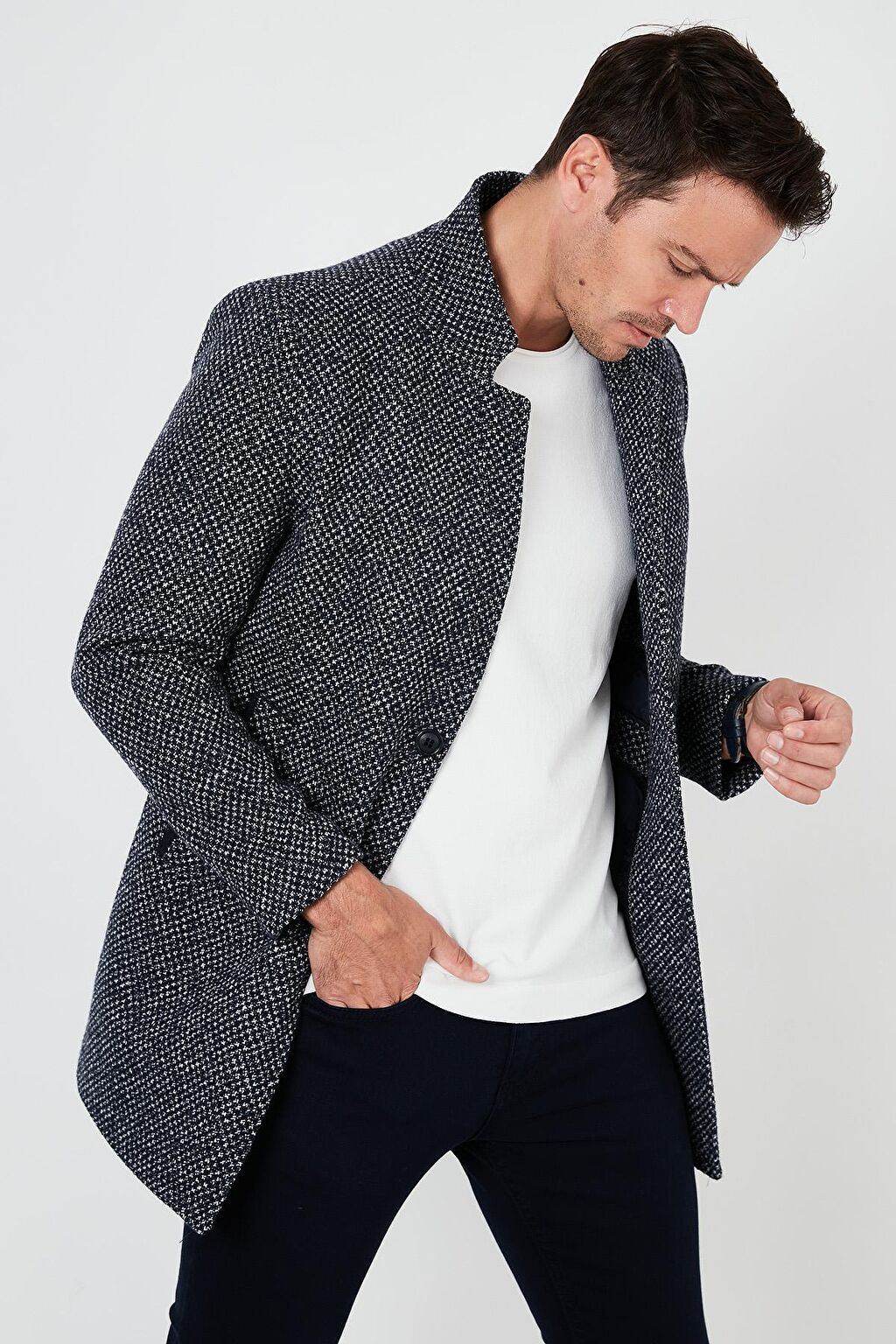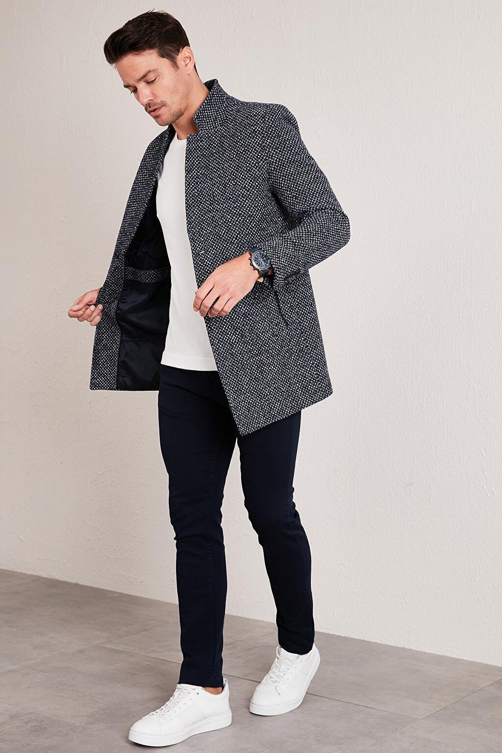 - نام : Slim Fit Tek Yırtmaçlı Düğmeli Dik Yaka Kaşe Kaban 5840110