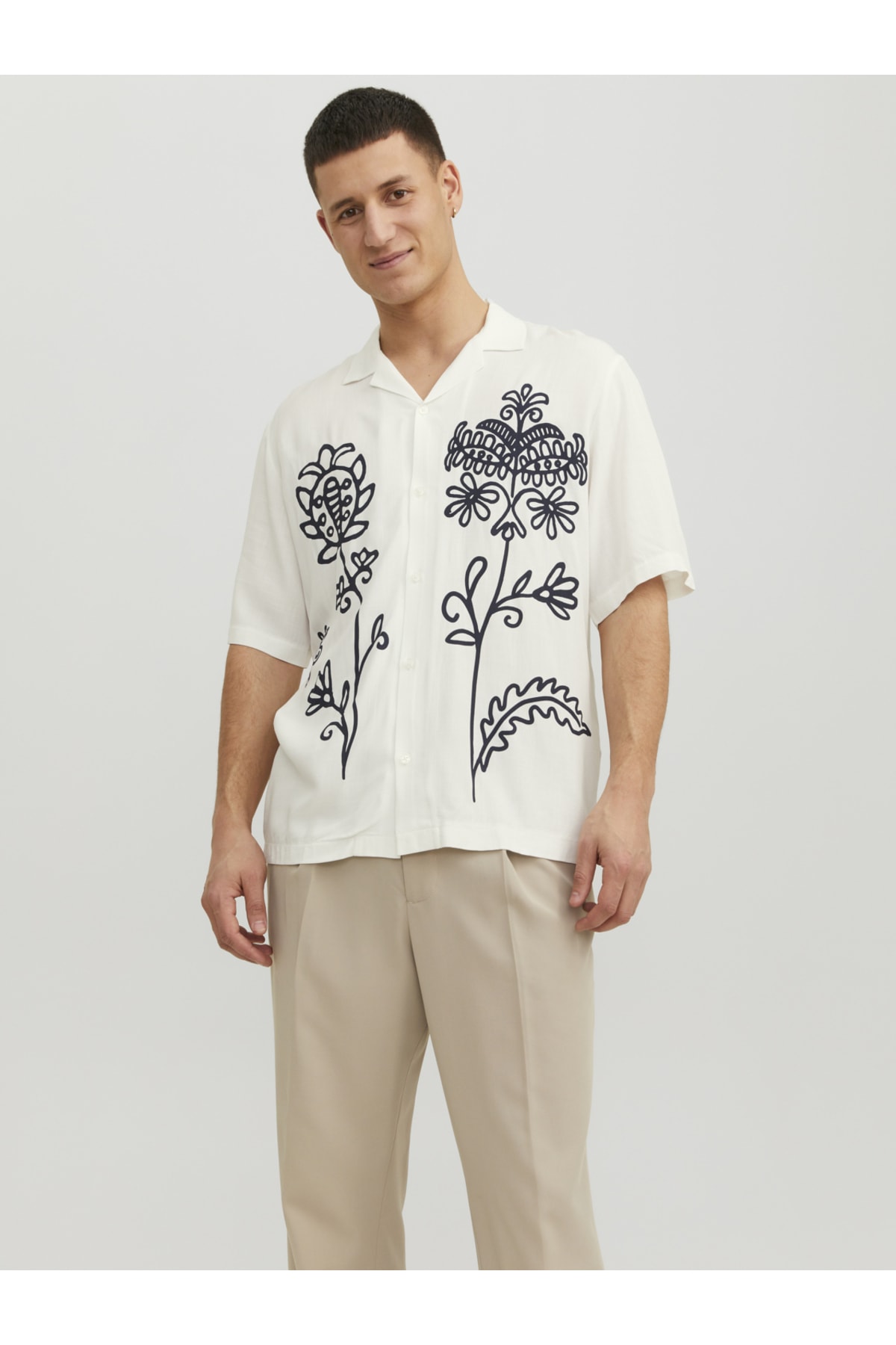 -Desenli, kisa kollu gömlek - Dügmeli kapatma -Klasik yaka -100% Viskon - Genis kesim -Yan yirtmaç detayi - Çin'de üretilmistir JACK & JONES PREMIUM