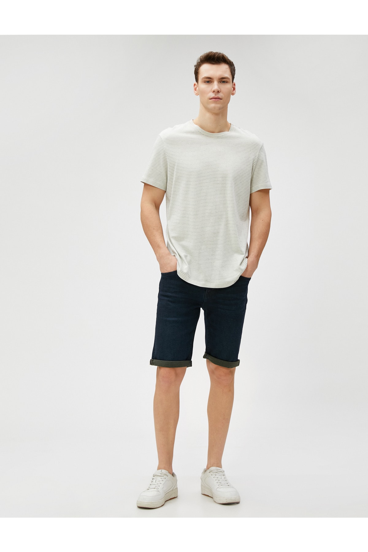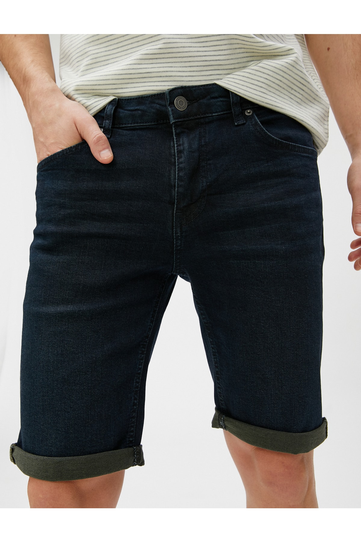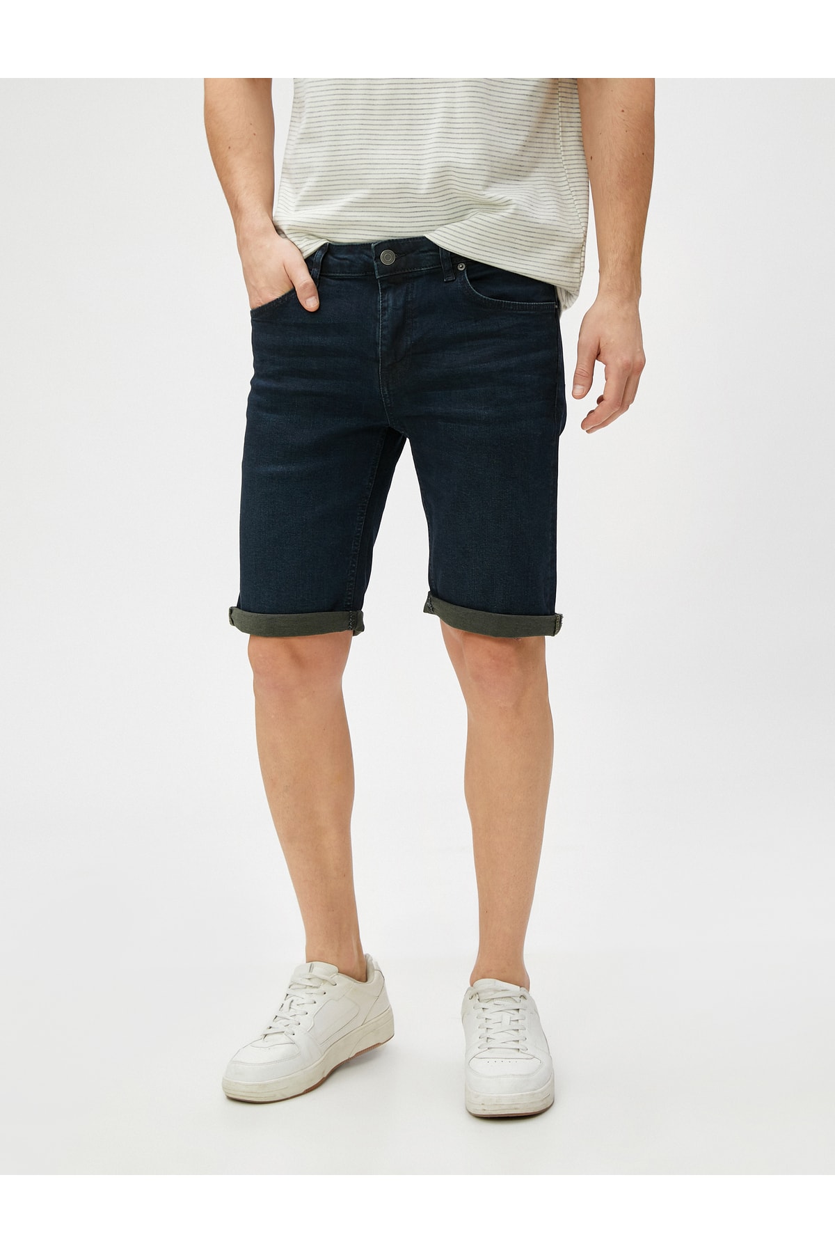 - نام : Bermuda Kot Şort Katlı Paça Detaylı Cepli Düğmeli