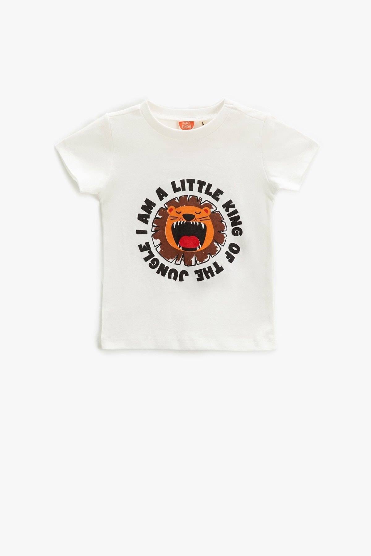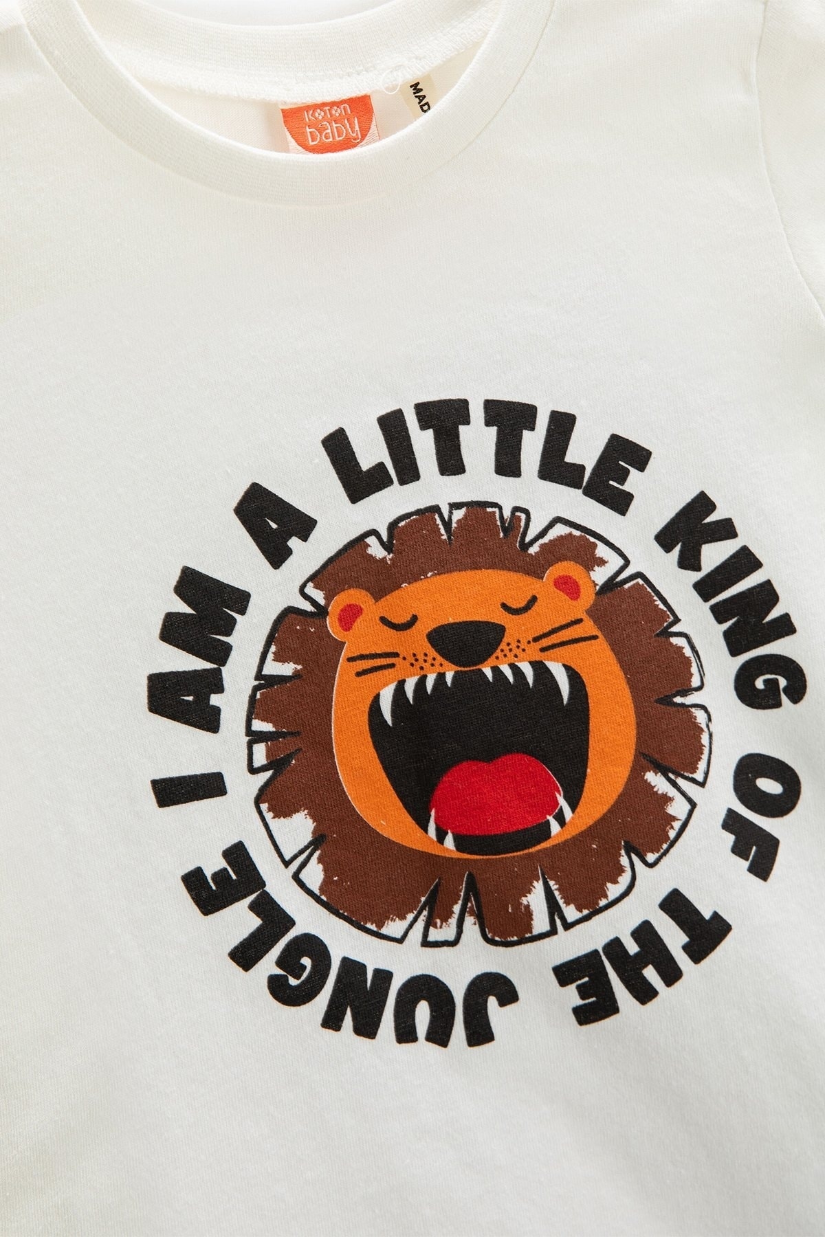 - نام : Erkek Bebek Kısa Kollu Aslan Grafik Baskılı Bisiklet Yaka Tişört 3smb10224tk