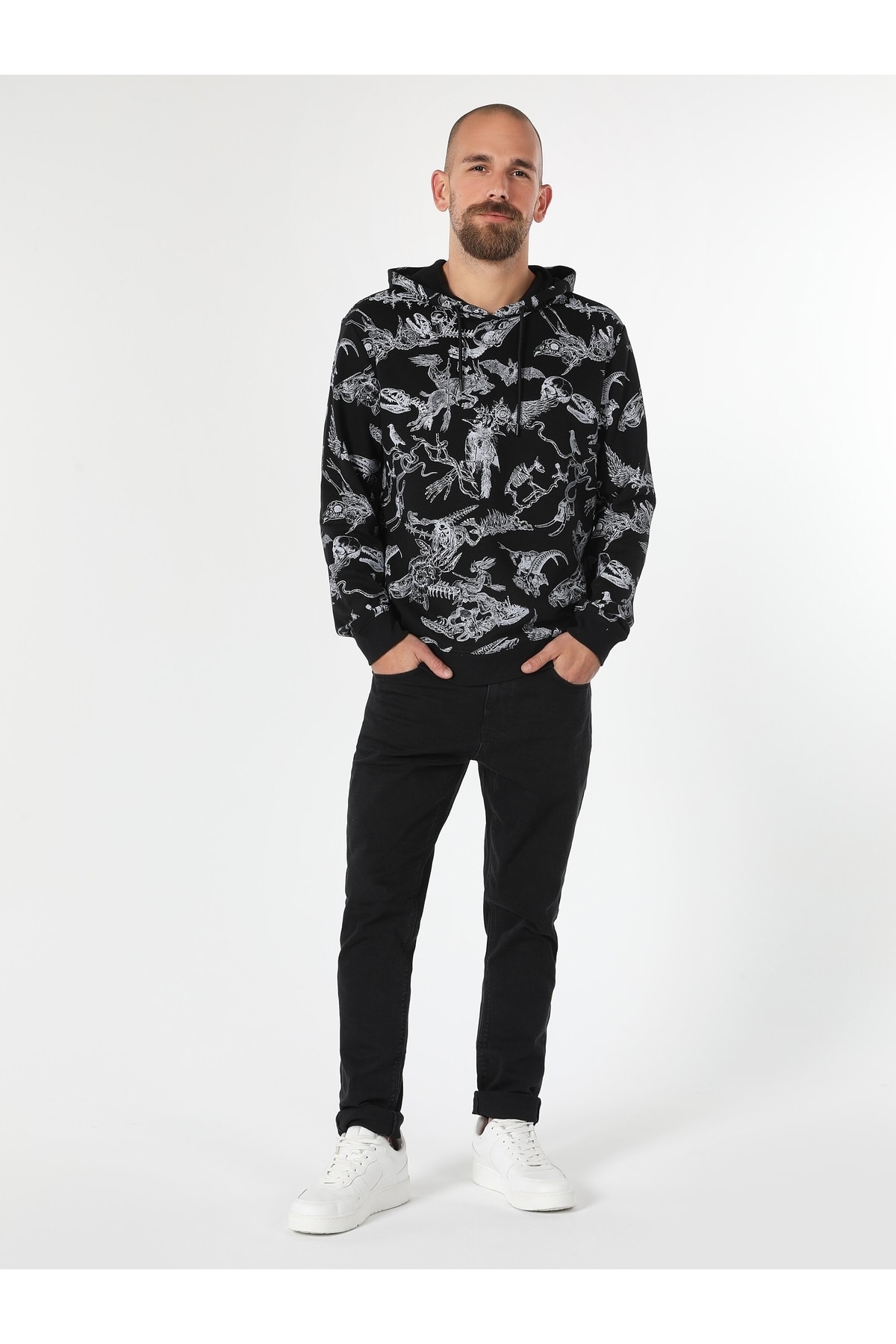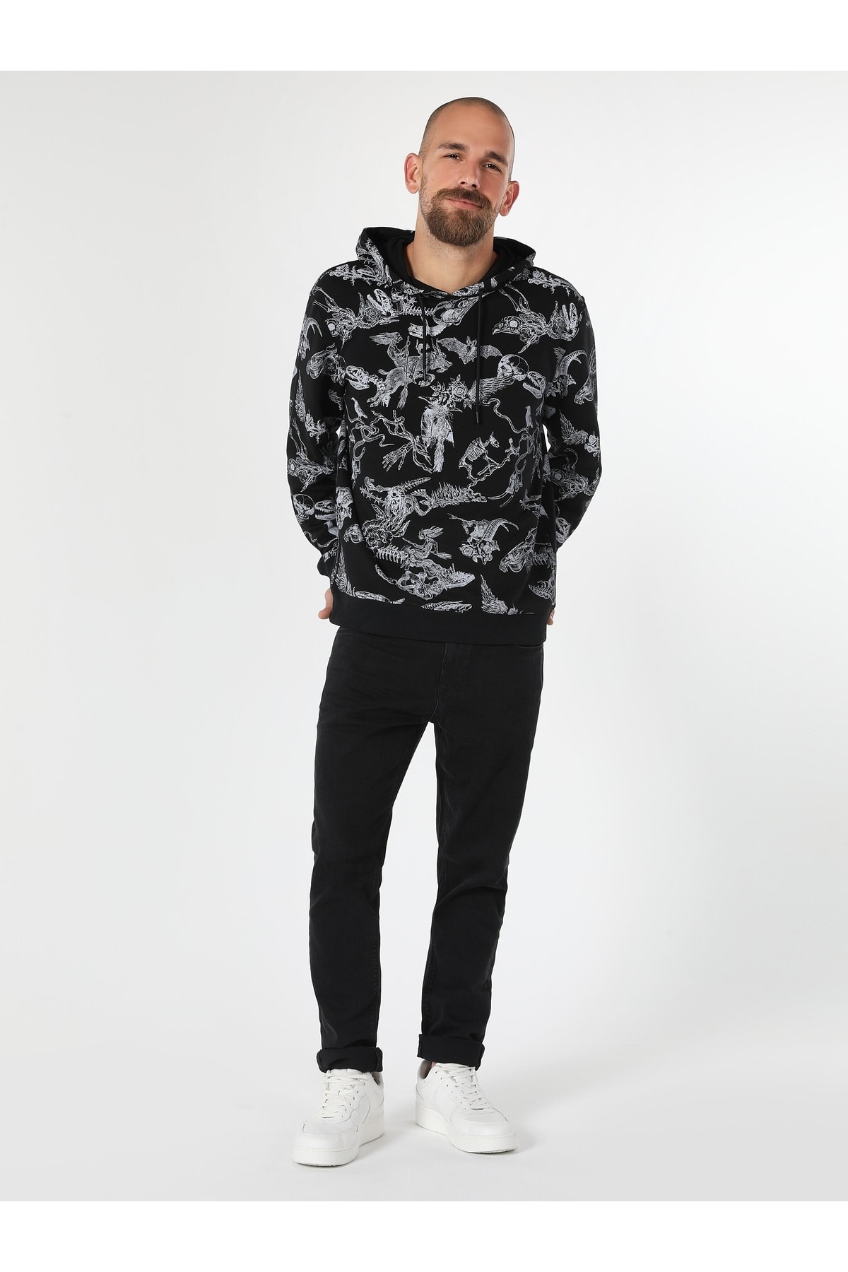 - نام : Regular Fit Baskılı Kapüşonlu Siyah Erkek Sweatshirt