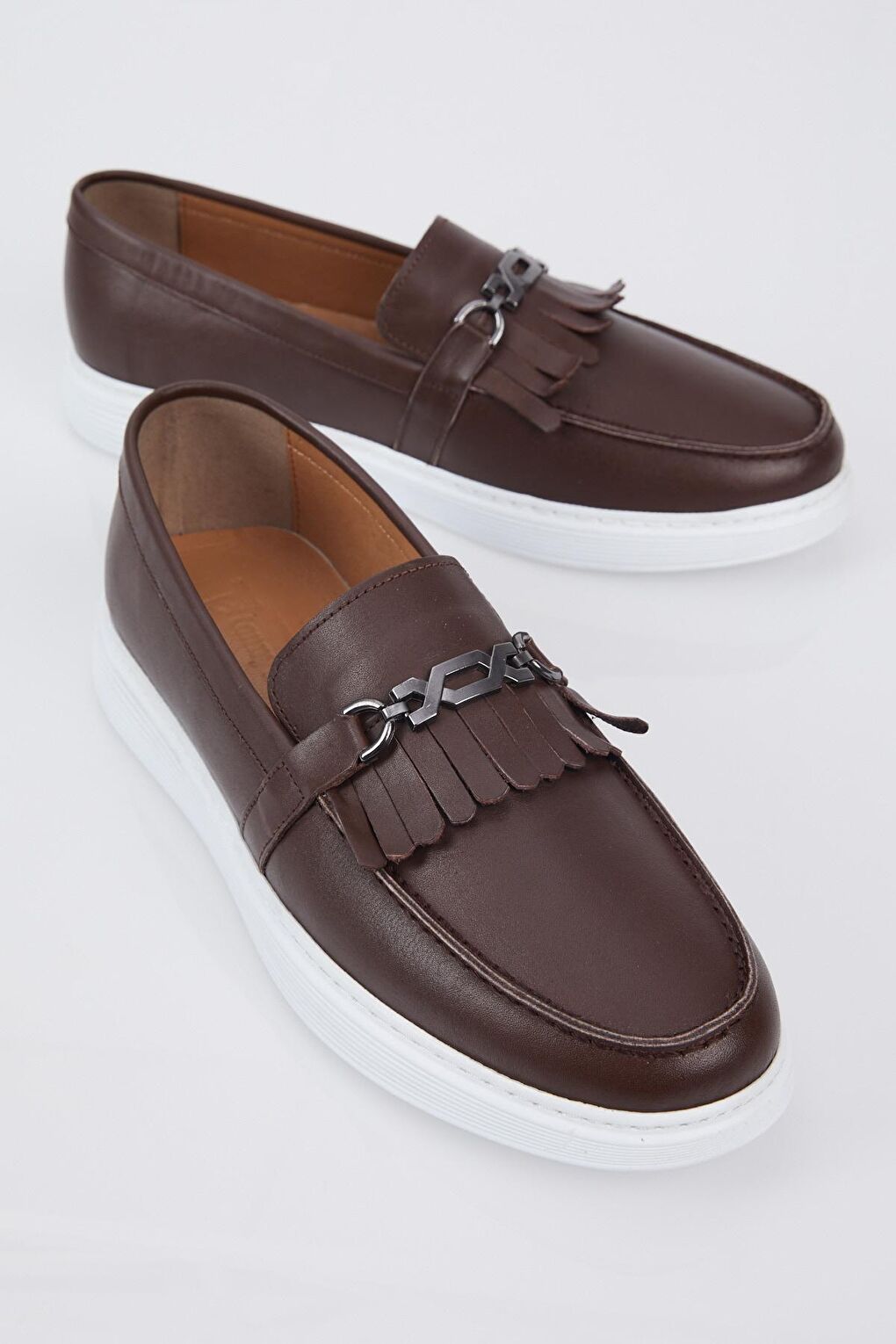 - نام : Erkek Kahve Önü Zincir Tokalı Rahat Kalıp Hakiki Deri Loafer