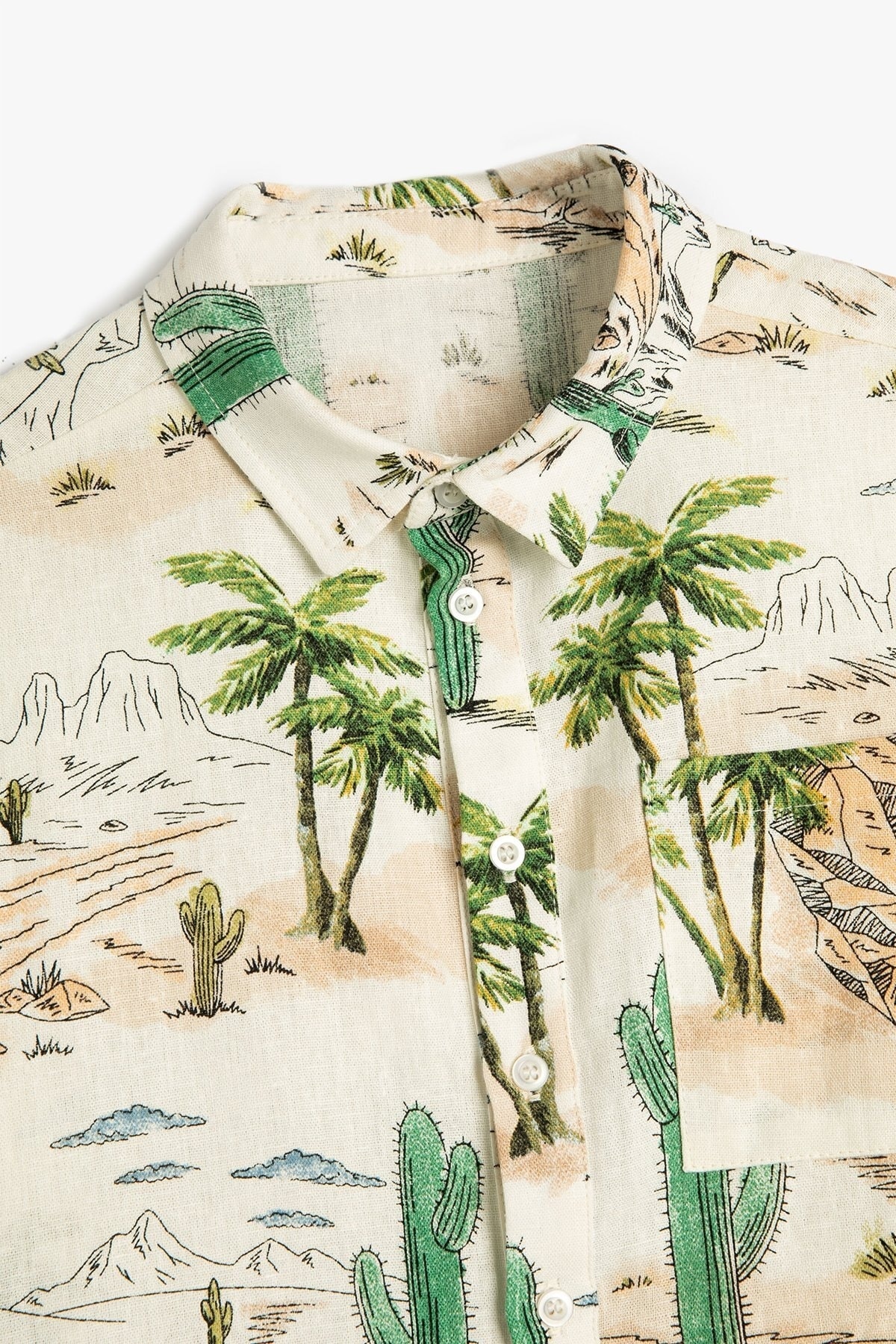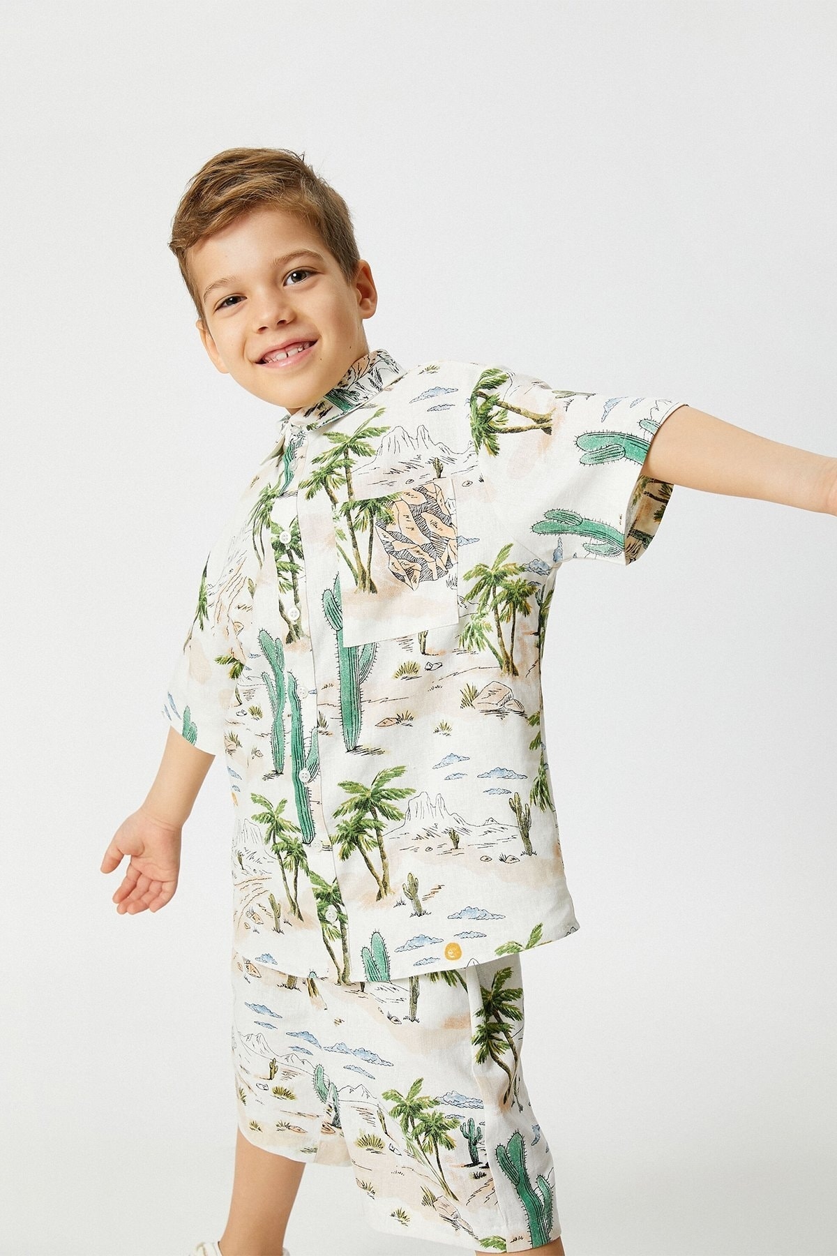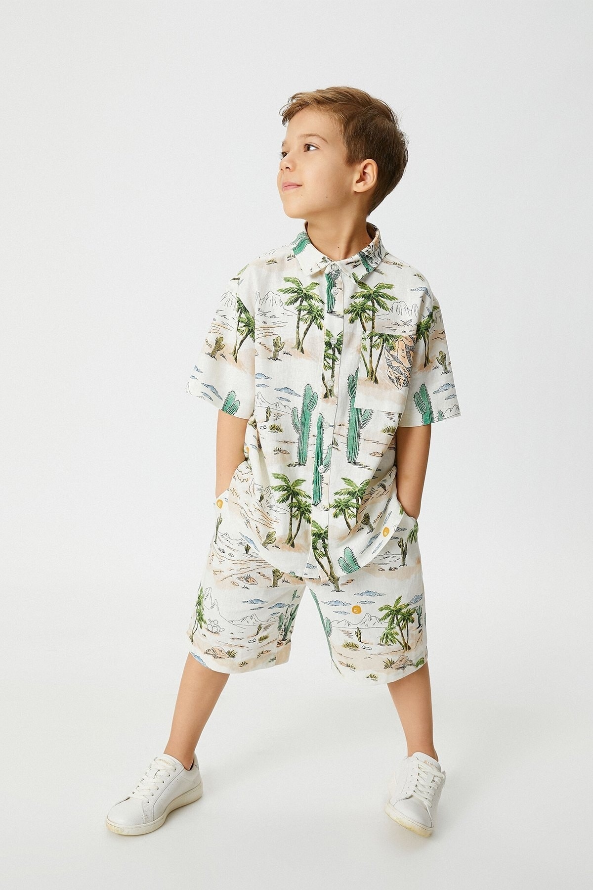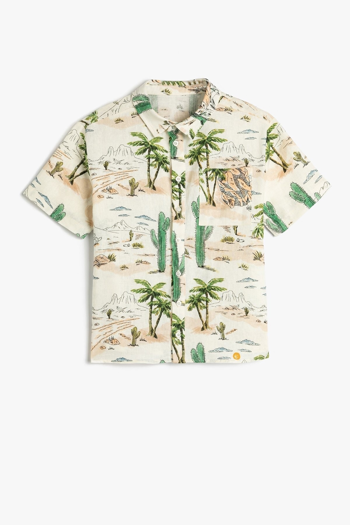 - نام : Erkek Çocuk Kısa Kollu Kaktüs Desenli Tek Cepli Keten Gömlek 3skb60088tw
