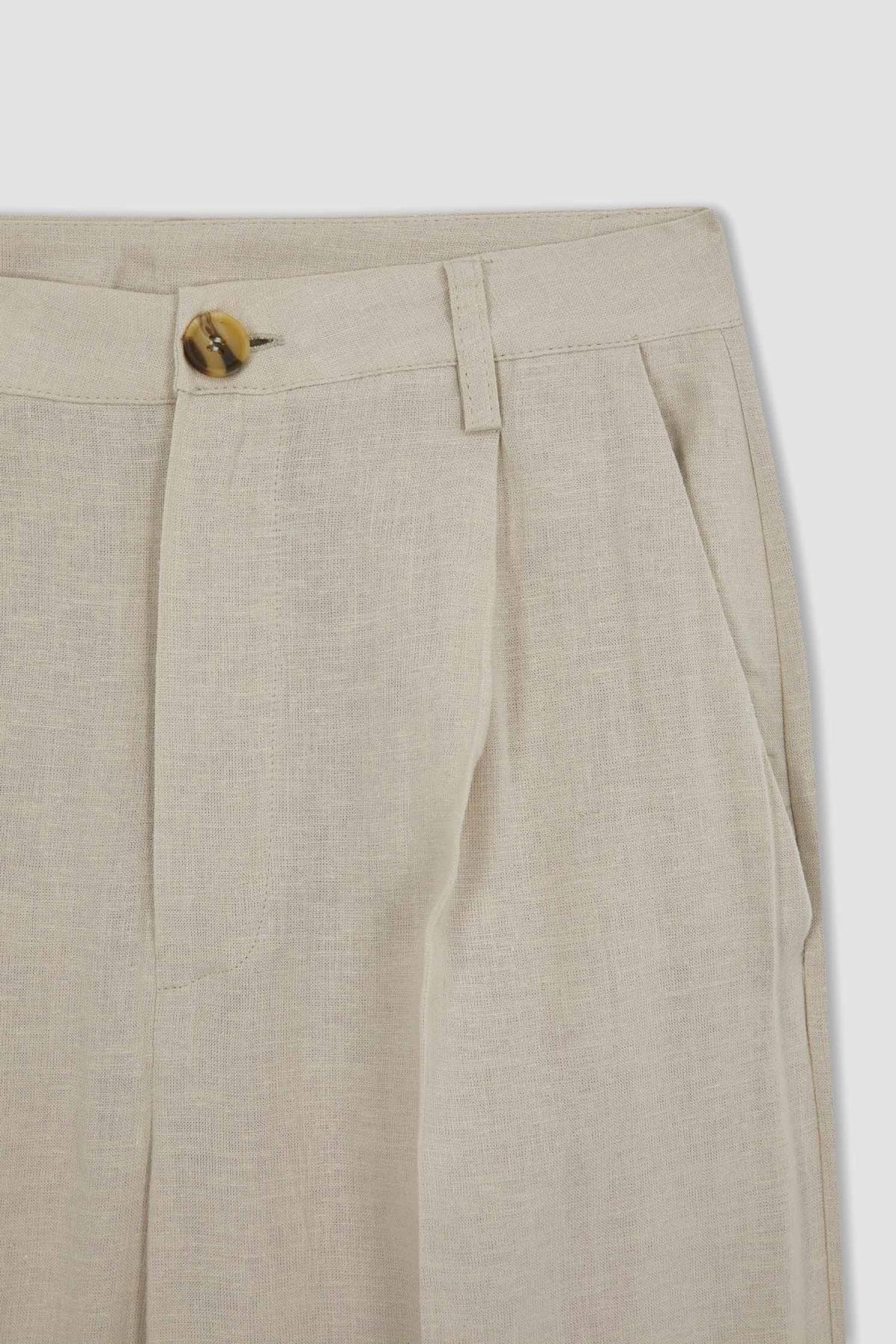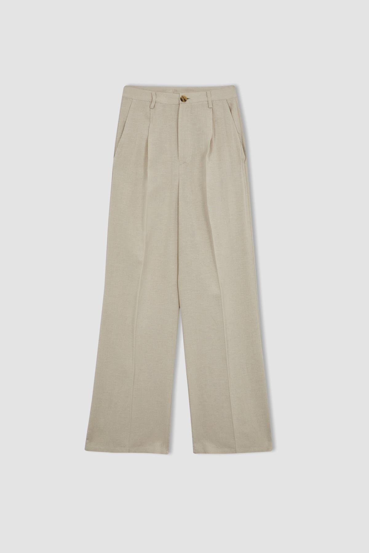 Ofiste tarz görünmek isteyen kadınlar için tasarlanmış, şık tasarımı hafif keten karışımlı kumaşı, rahat kalıbı, geniş paça detayı ile günlük yaşantınızda crop top, bağcılı bluz, balon kollu gömlek, tunik ve crop sweatshirtlerinizle kombinleyebileceğiniz yaz ve bahar ayları modasında tarz stil duruşu ile tercih edeceğiniz, defacto kadın geniş paça keten karışımlı pantolon.