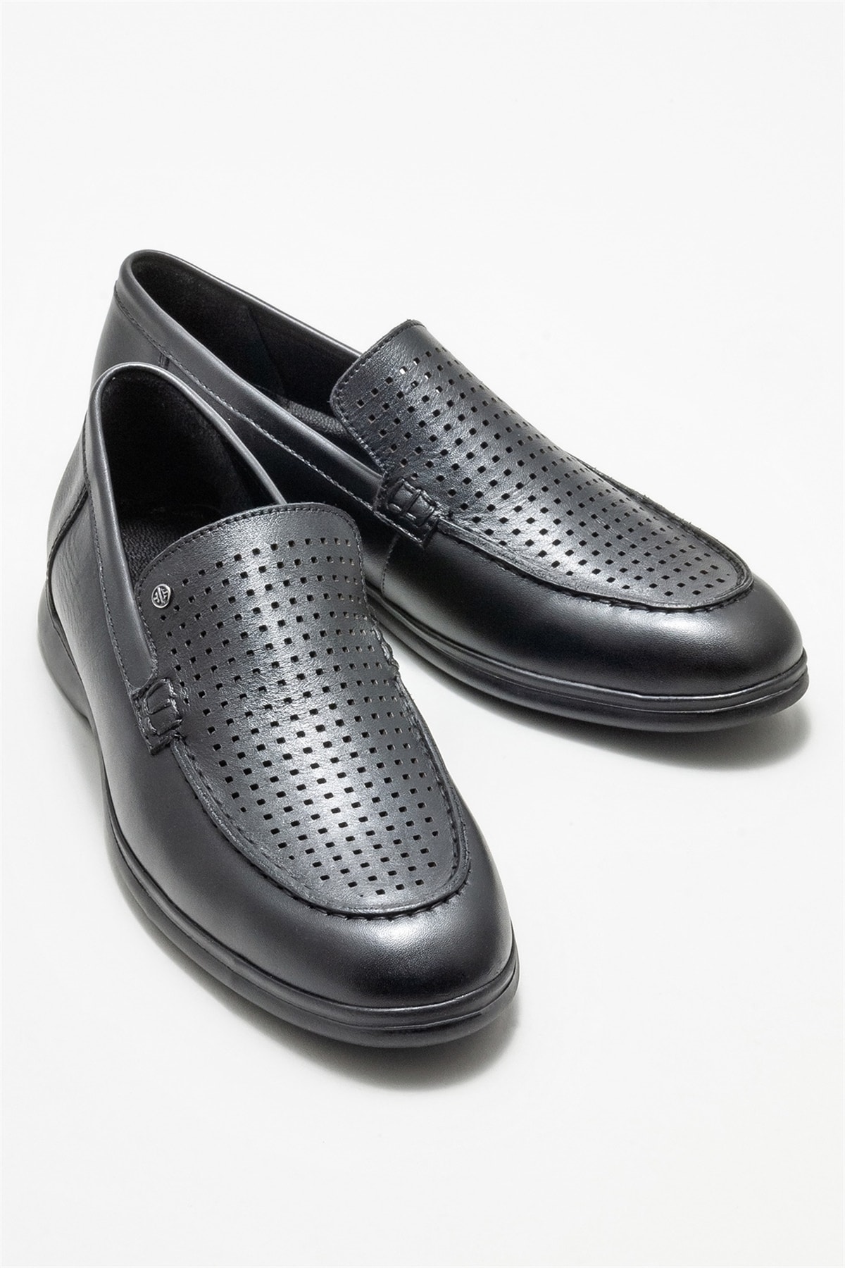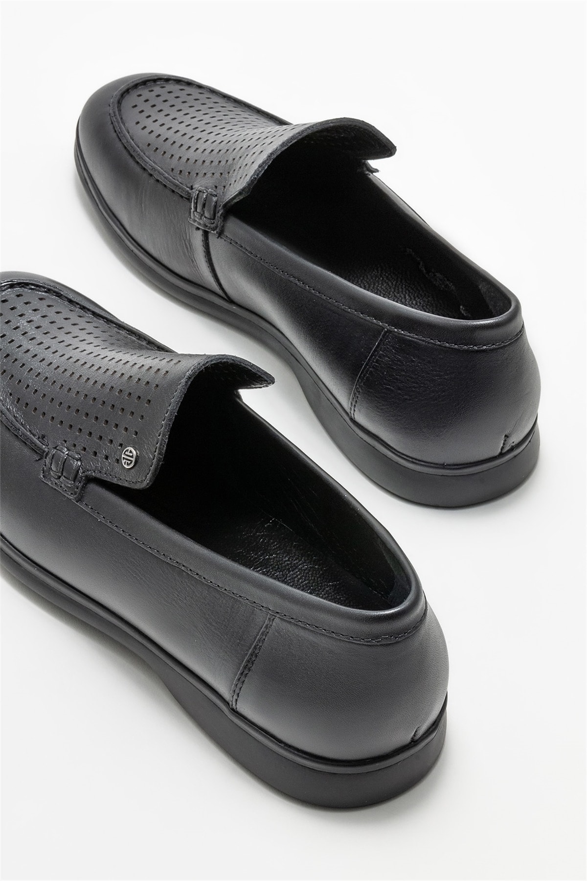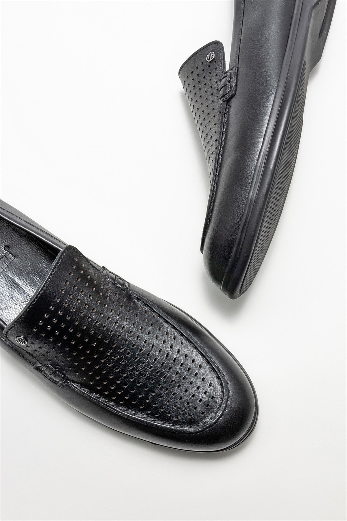 Renk Siyah Taban Malzemesi EVA Ürün Malzemesi Deri Taban Yüksekliği 2.5 cm Astar Malzemesi Deri Materyal:Deri Cinsiyet:ERKEK Yaş Grubu:ERKEK Kalıp:Normal