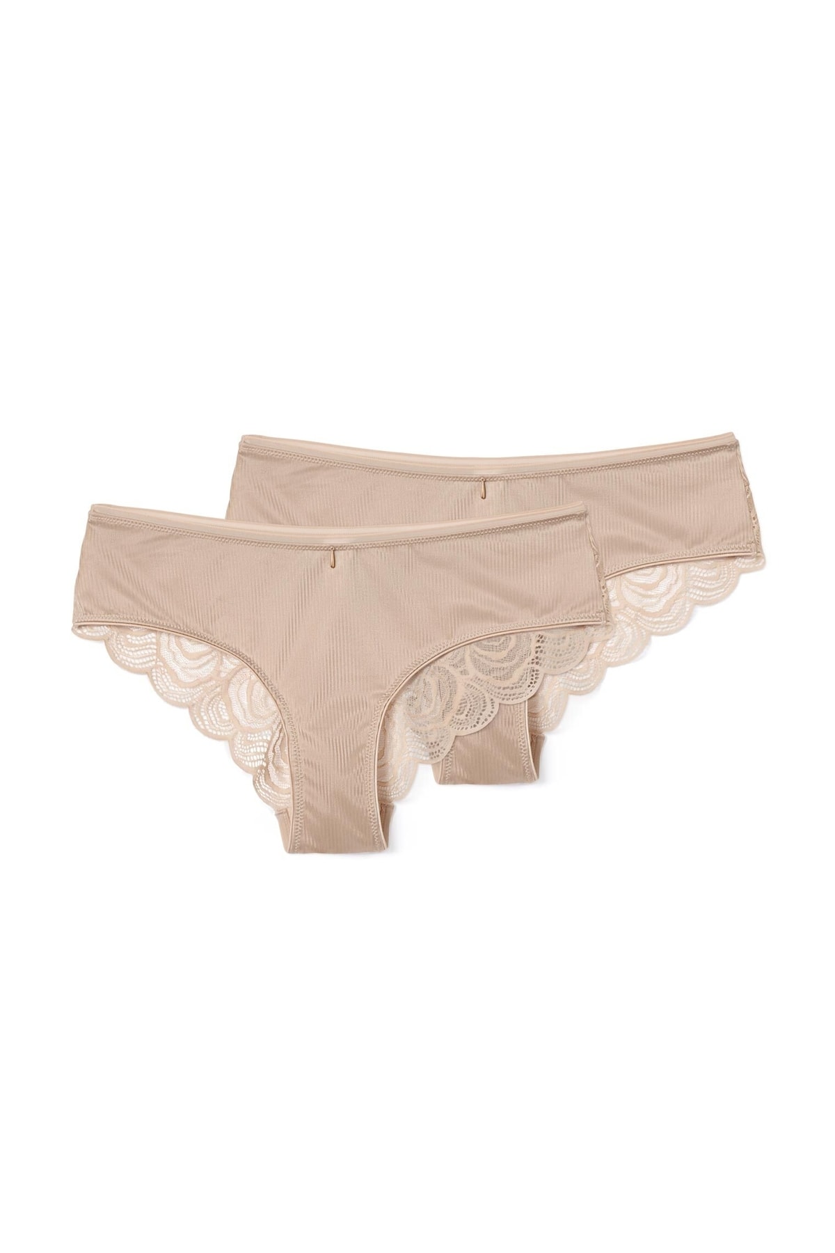2 Adet Brezilya Modeli Slip Külot, Bej Rengi Renk: Bej rengi Malzeme: %84 poliamit, %16 elastanDantel %40 poliamit (geri dönüştürülmüş), %40 poliamit, %20 elastan Yumuşak Microtouch kumaş|Çizgi desenli|Yumuşak dantelli arka kısım|Geri dönüştürülmüş malzemeli dantel – doğal kaynaklar korunur|Uzun ömürlülük ve yıkamaya dirençlilik için kaliteli marka elastanlı|Ağ kısmı pamuklu slip külotlar