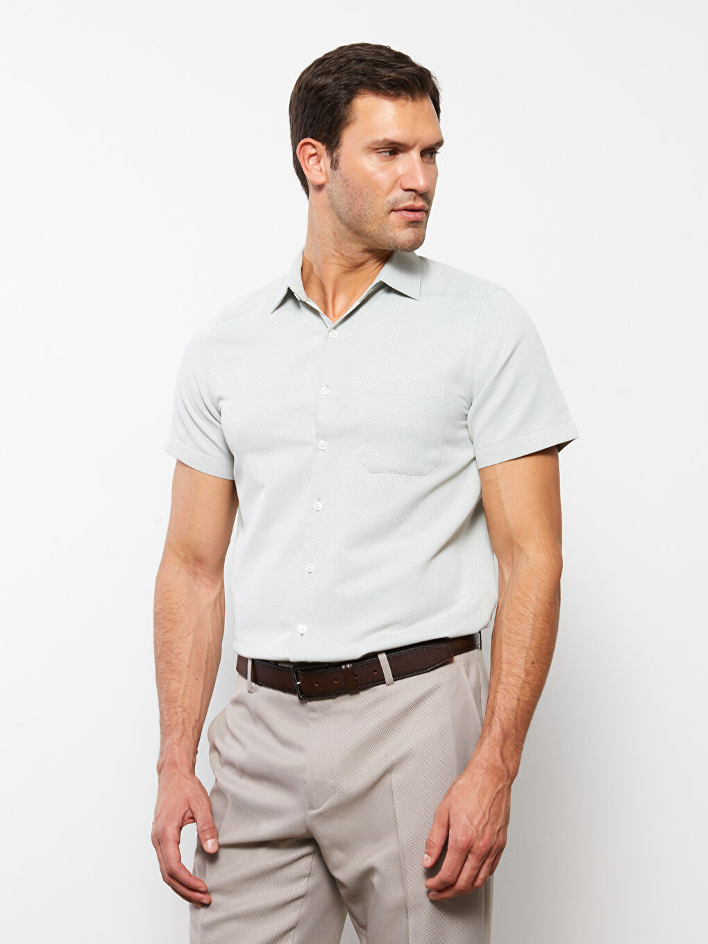 - نام : Slim Fit Kısa Kollu Armürlü Erkek Gömlek