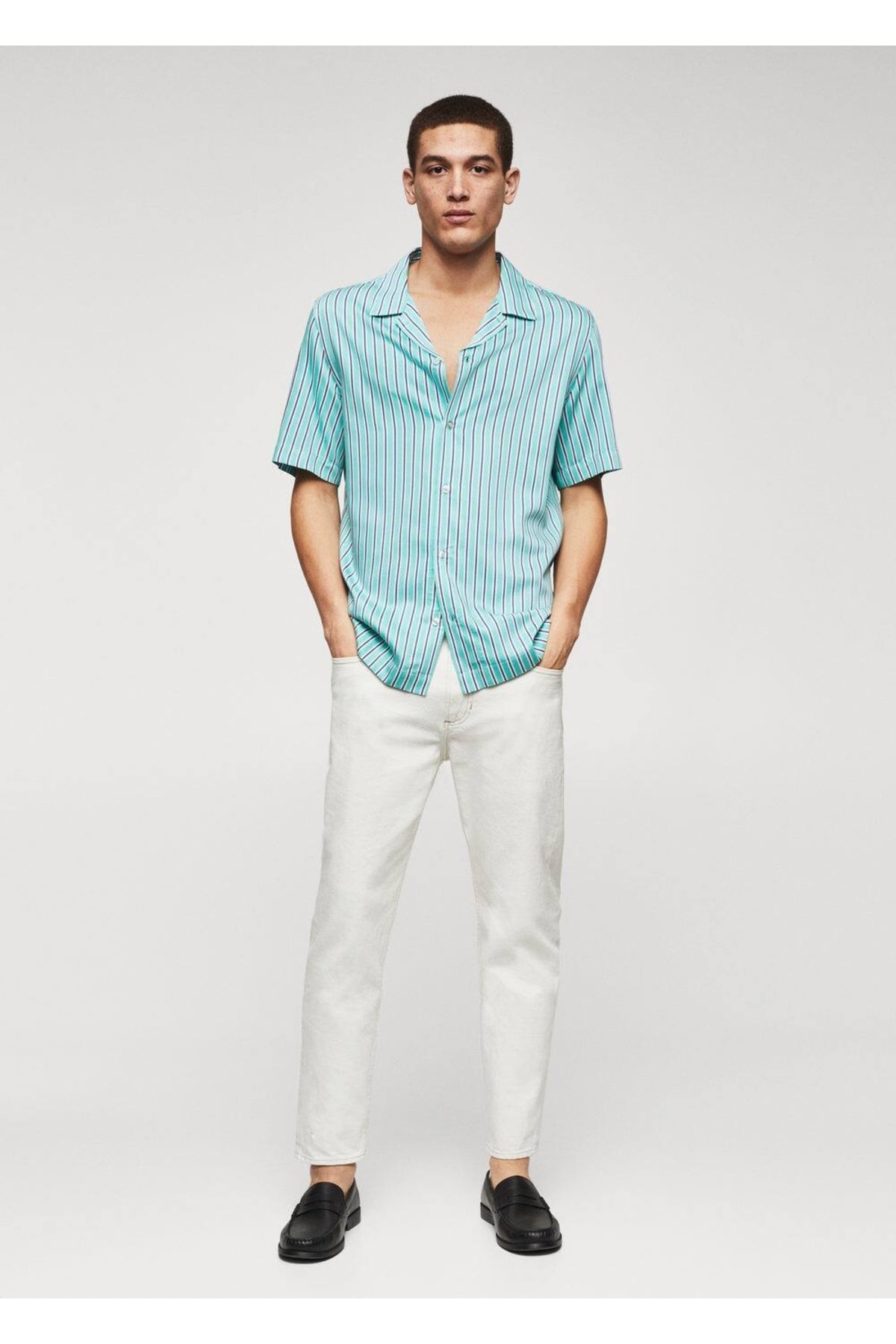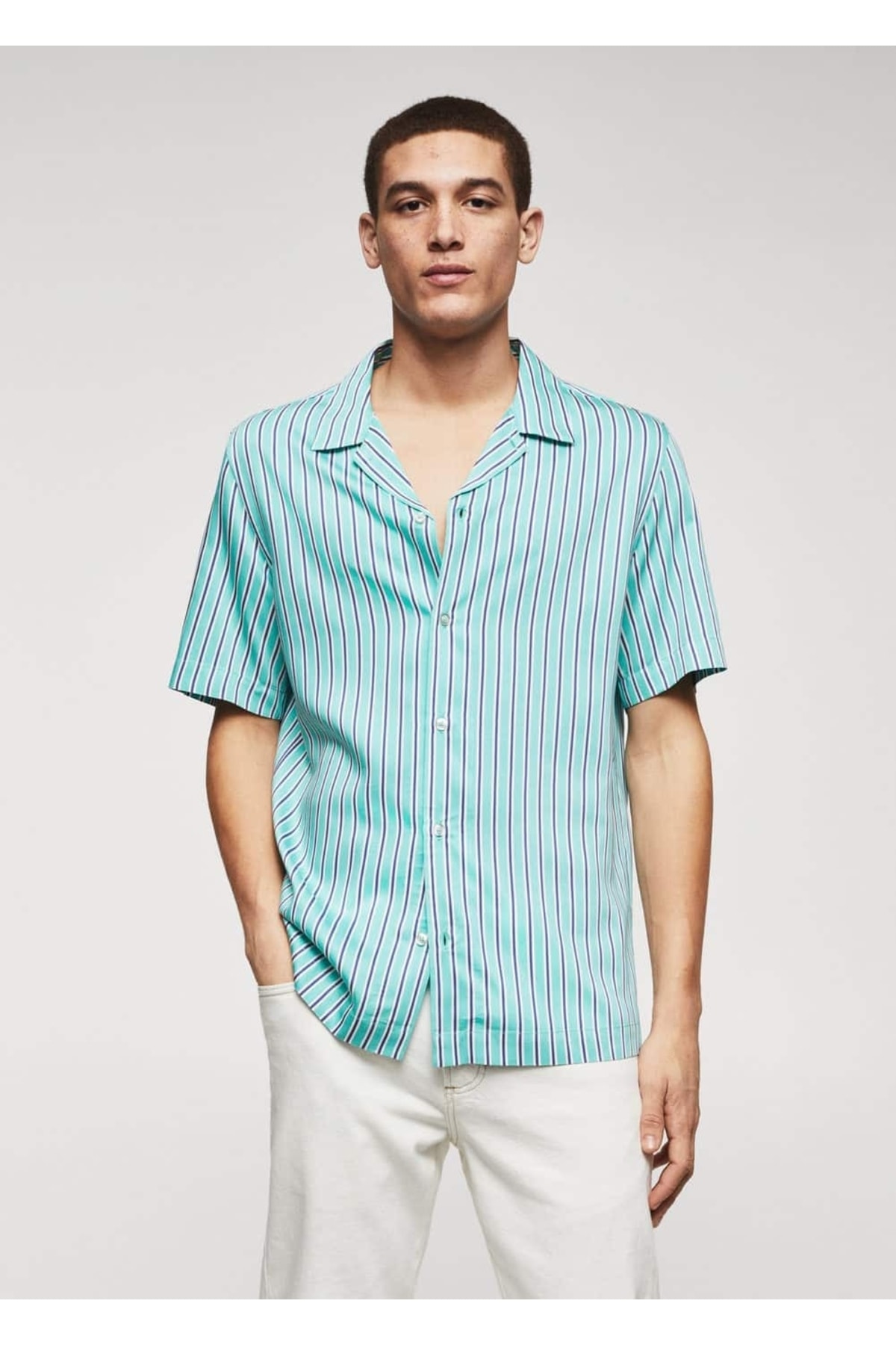 خرید اینترنتی پیراهن آستین کوتاه مردانه فیروزهای مانگو 47055911