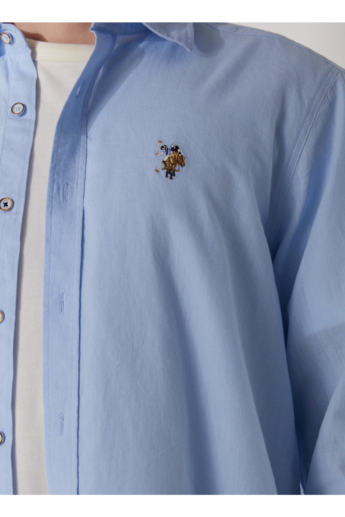 خرید اینترنتی پیراهن آستین بلند مردانه آبی برند u s polo assn 5002998010