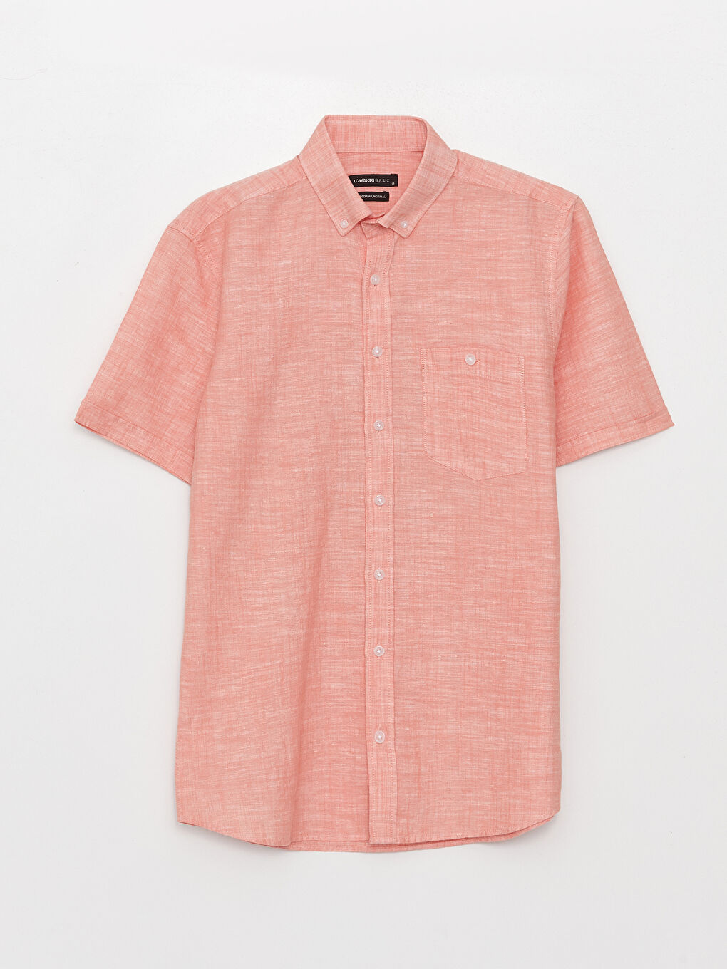 - نام : Regular Fit Kısa Kollu Keten Karışımlı Erkek Gömlek