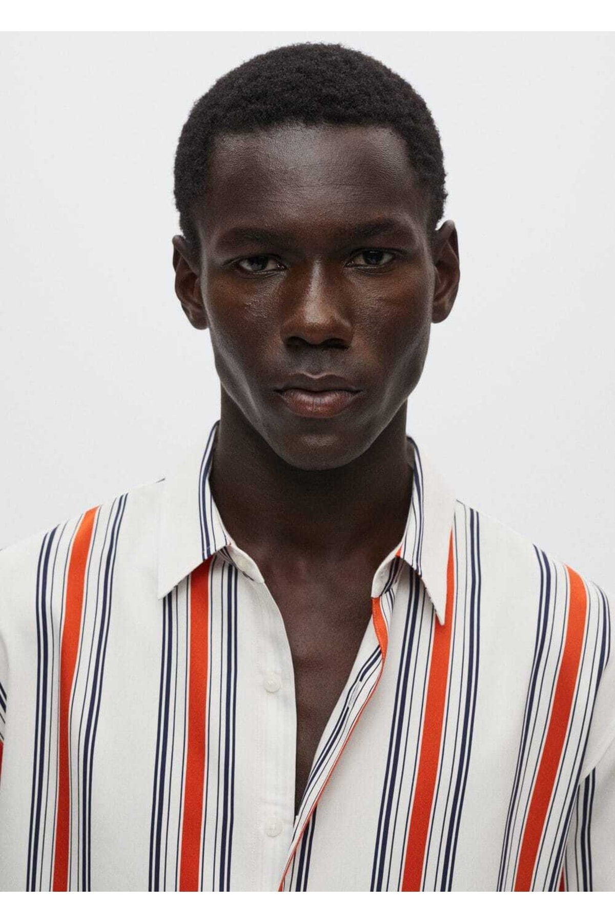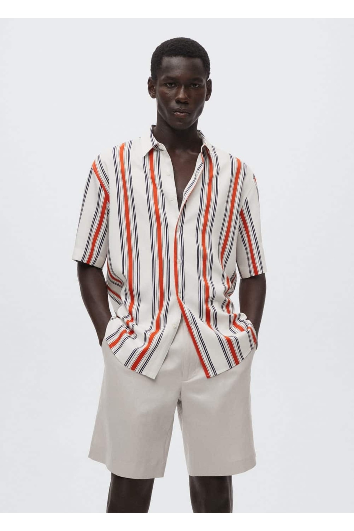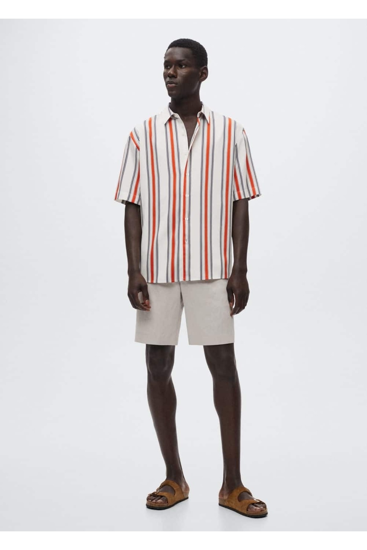 خرید اینترنتی پیراهن آستین کوتاه مردانه نارنجی مانگو 37010800