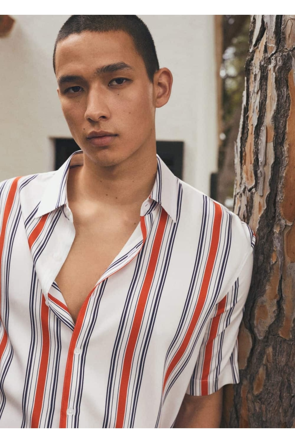 Gömlek .-- getares. Dökümlü kumaş, Çizgili tasarım, Klasik yakalı, Kısa kollu, Düğmeli, Modelin boyu 187 cm'dir ve M beden giymektedir, Committed etiketli giysiler, çevresel etkilerinin azaltılarak, sürdürülebilir lifler veya süreçler kullanılarak üretilen ürünlerdir. Mango'nun hedefi, doğaya daha fazla adanmış olan uygulamaları desteklemek ve koleksiyondaki sürdürülebilir giysi sayısını arttırmaktır. 84% viskoz,16% polyamid. KISA SANTRFÜJLE MAKİNEDE MAKS. 30°C'DE YIKAYIN, ÇAMAŞIR SUYU KULLANMAYIN, MAKS. 110°C İLE ÜTÜLEYİN, KURU TEMİZLEME YAPILMAZ, KURUTMA MAKİNESİNDE KURUTULAMAZ