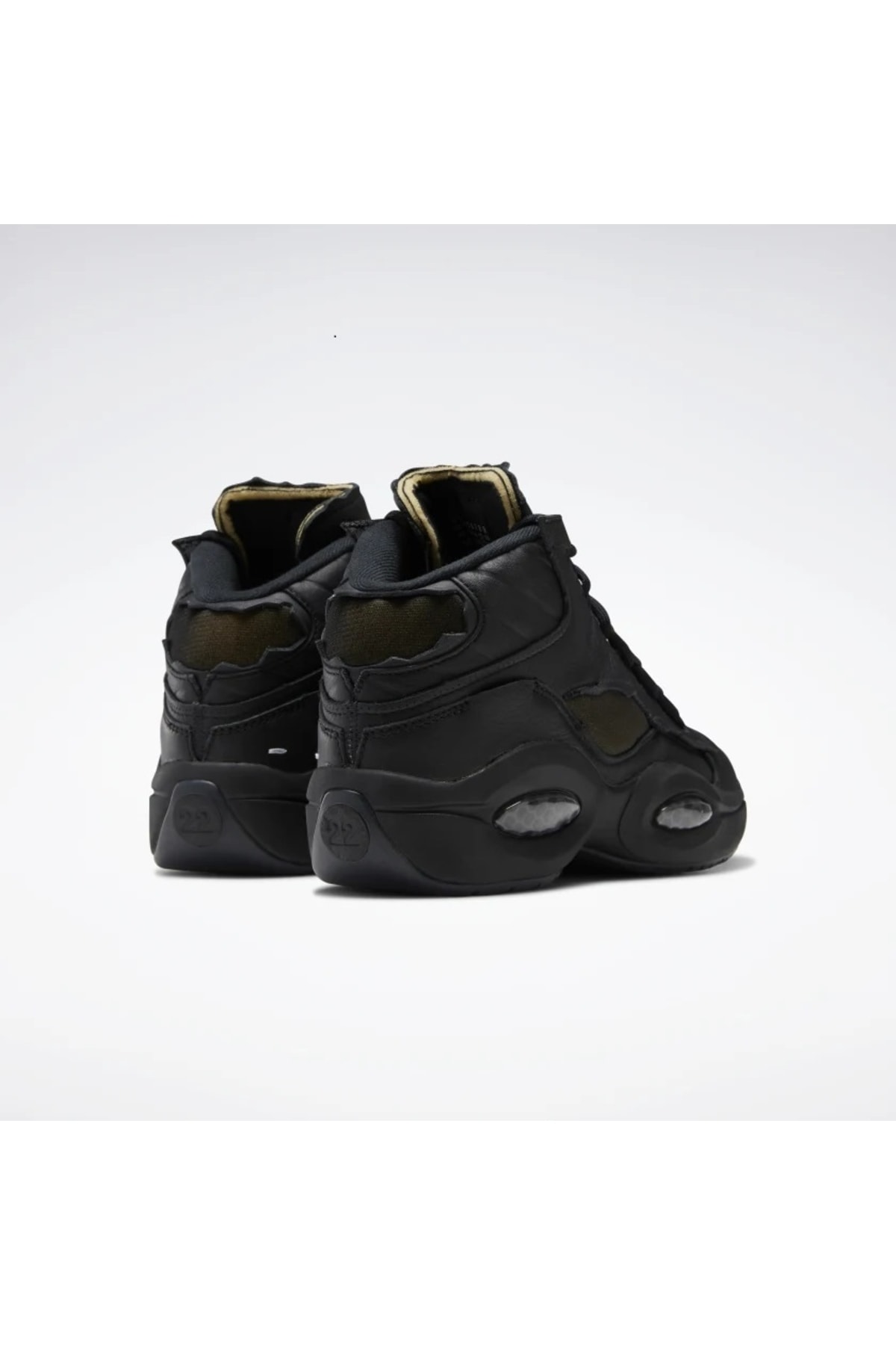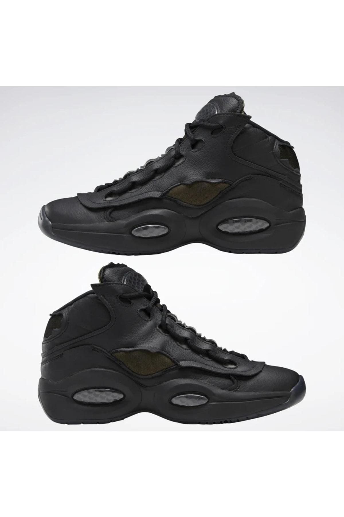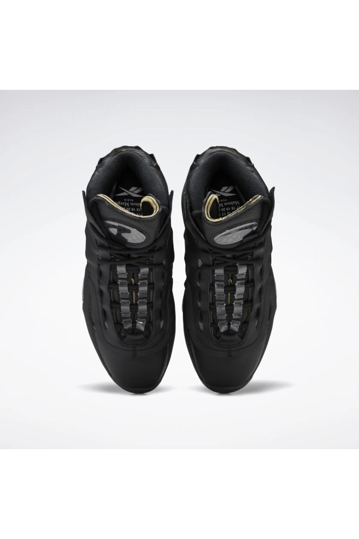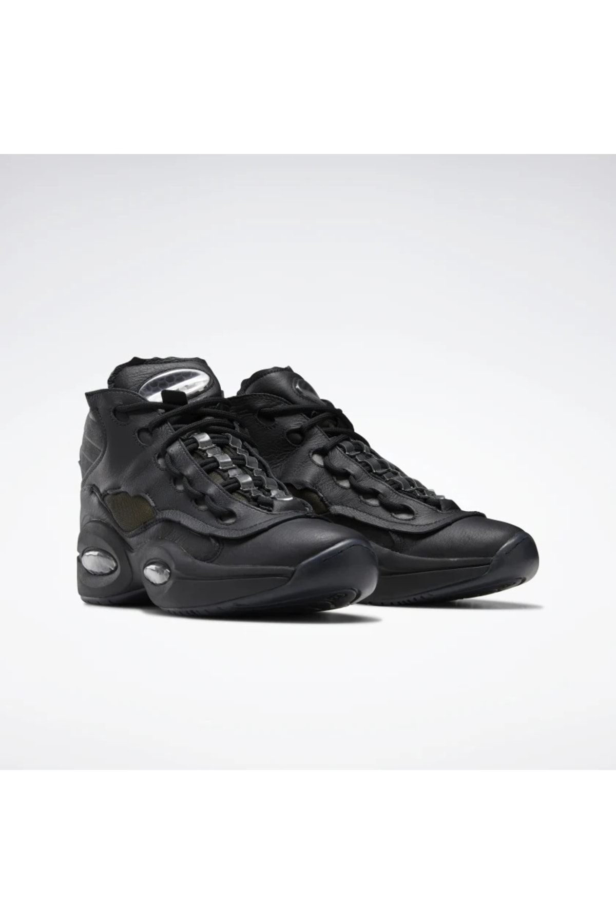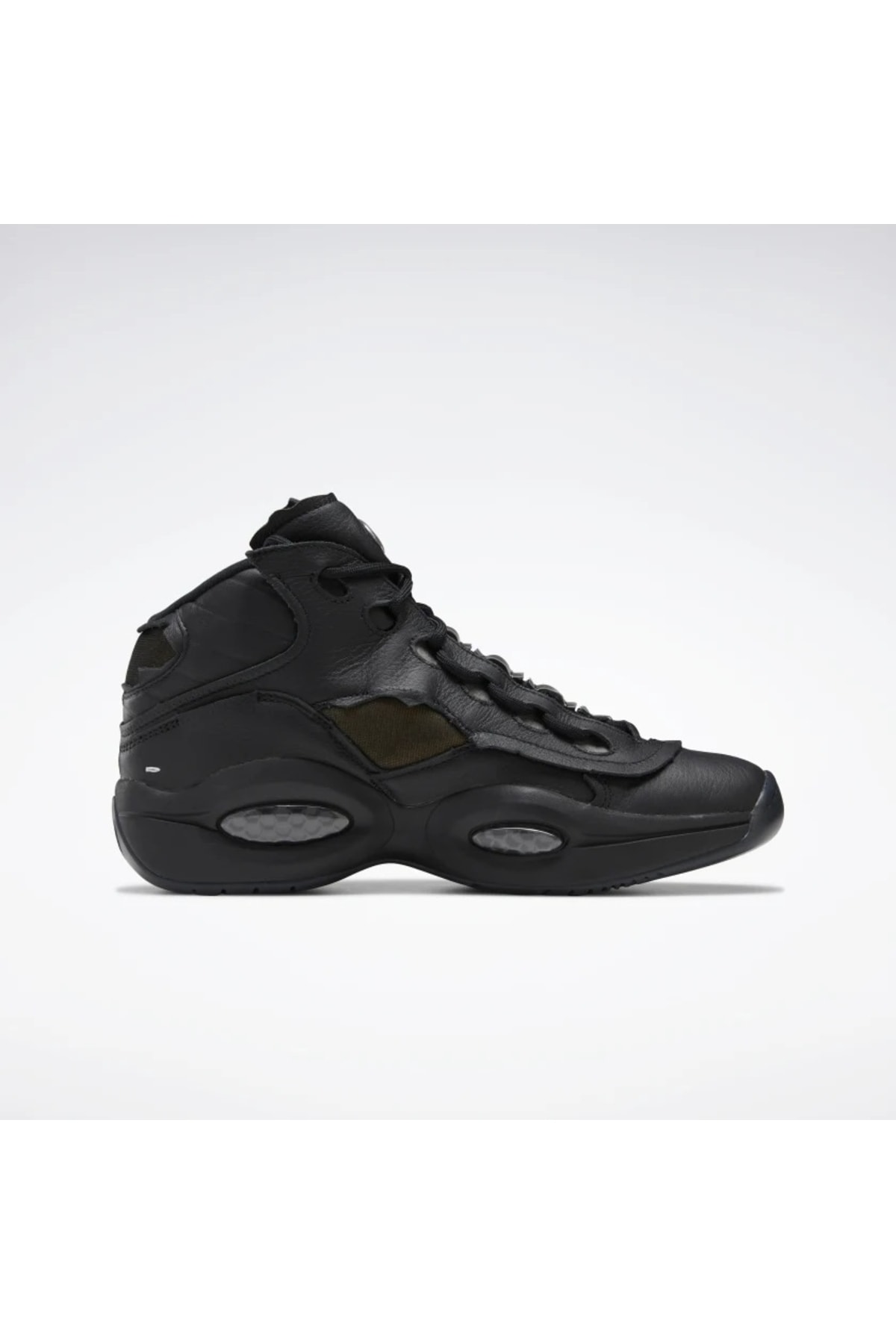 BASKETBALL-INSPIRED QUESTION SHOES DESIGNED WITH MAISON MARGIELA These Reebok shoes were designed with Maison Margiela, the Paris-based fashion house which creates uniquely unconventional principles and follows the philosophy that deconstruction and heritage go hand in hand. These shoes are inspired by the concept of "Memory Of" which is a process evoking the memory of something that used to be there, but no longer exists. The result is a reworked, deconstructed, and essentialized version of a Reebok icon with only the memory of the original left. Full grain leather upper