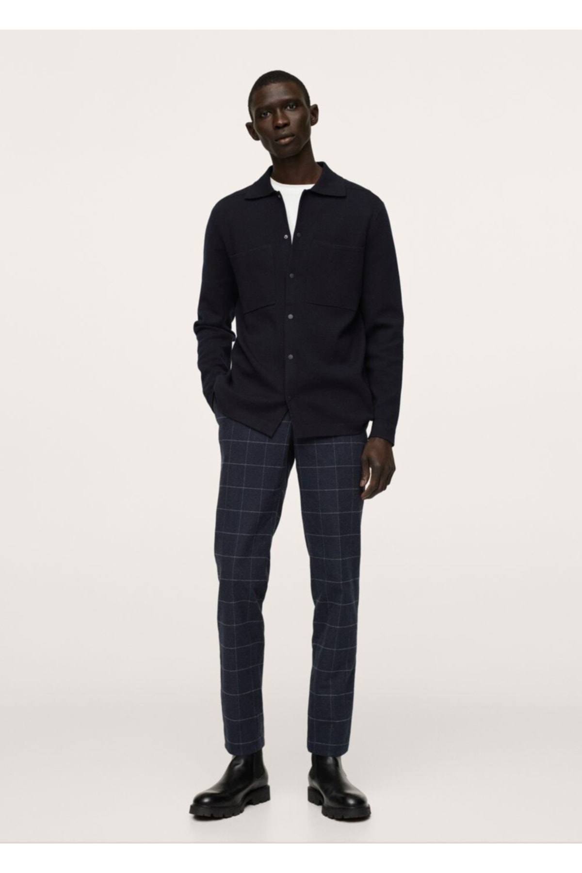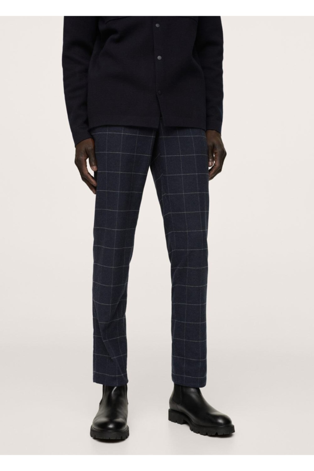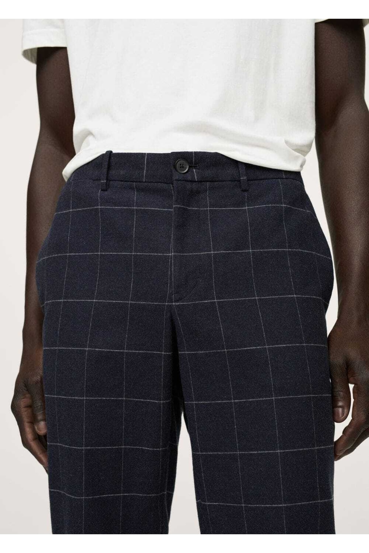 - نام : Erkek Lacivert Dar Kesim Kareli Pamuklu Pantolon