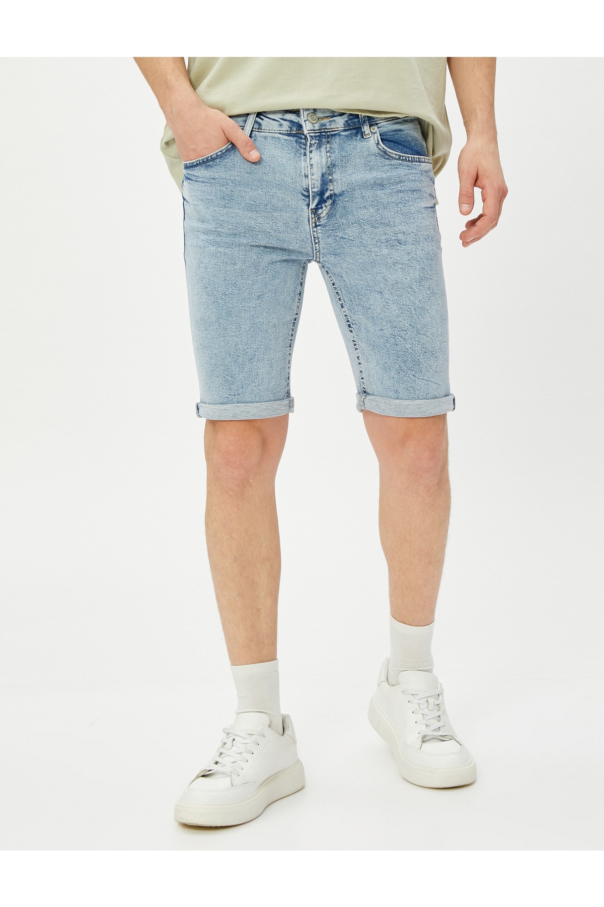 - نام : Bermuda Kot Şort Katlama Detaylı Cepli Pamuklu