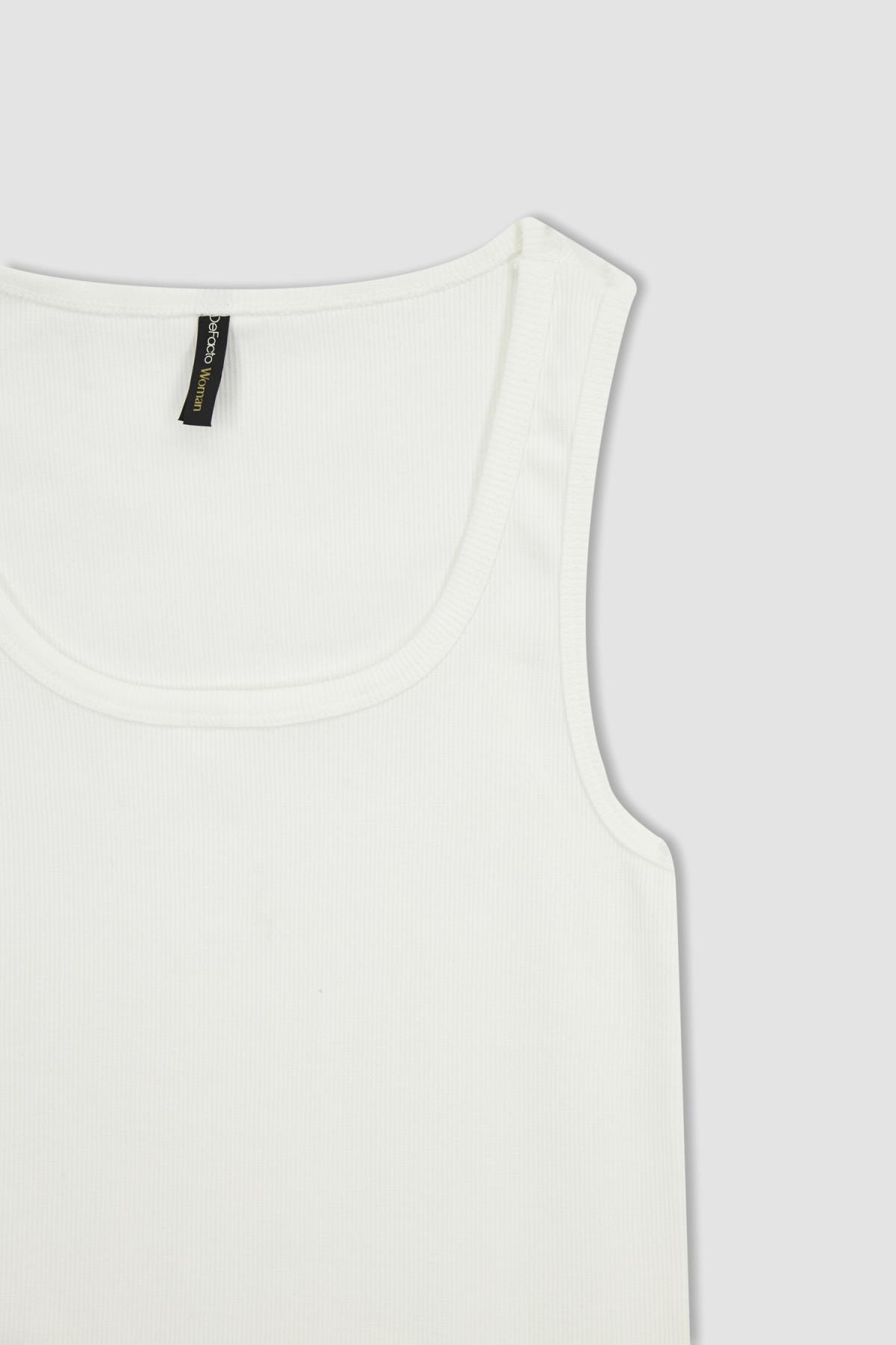 Pamuklu fitilli kaşkorse kumaşı, yuvarlak yaka, kolsuz slim fit modeli ile gün boyu konforlu kullanım sunan jean pantolon, şort ve eteklerinizle aynı zamanda blazer ceketlerinizle harika kombinler oluşturacağınız Defacto Kadın Slim Fit Bisiklet Yaka Fitilli Kaşkorse Atlet