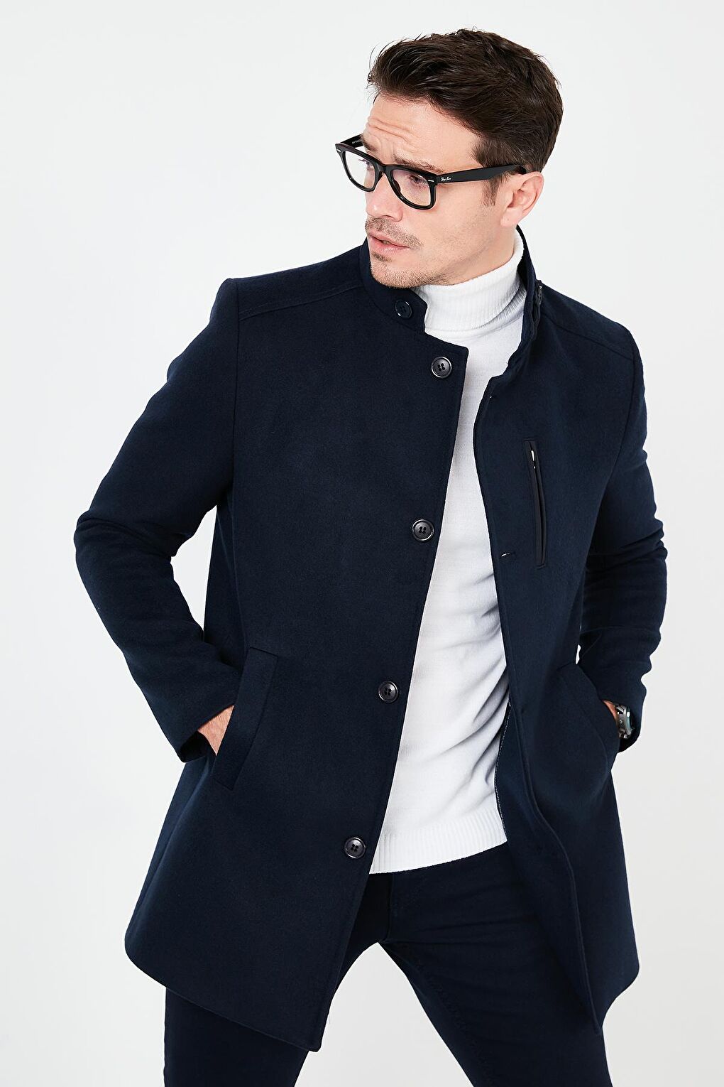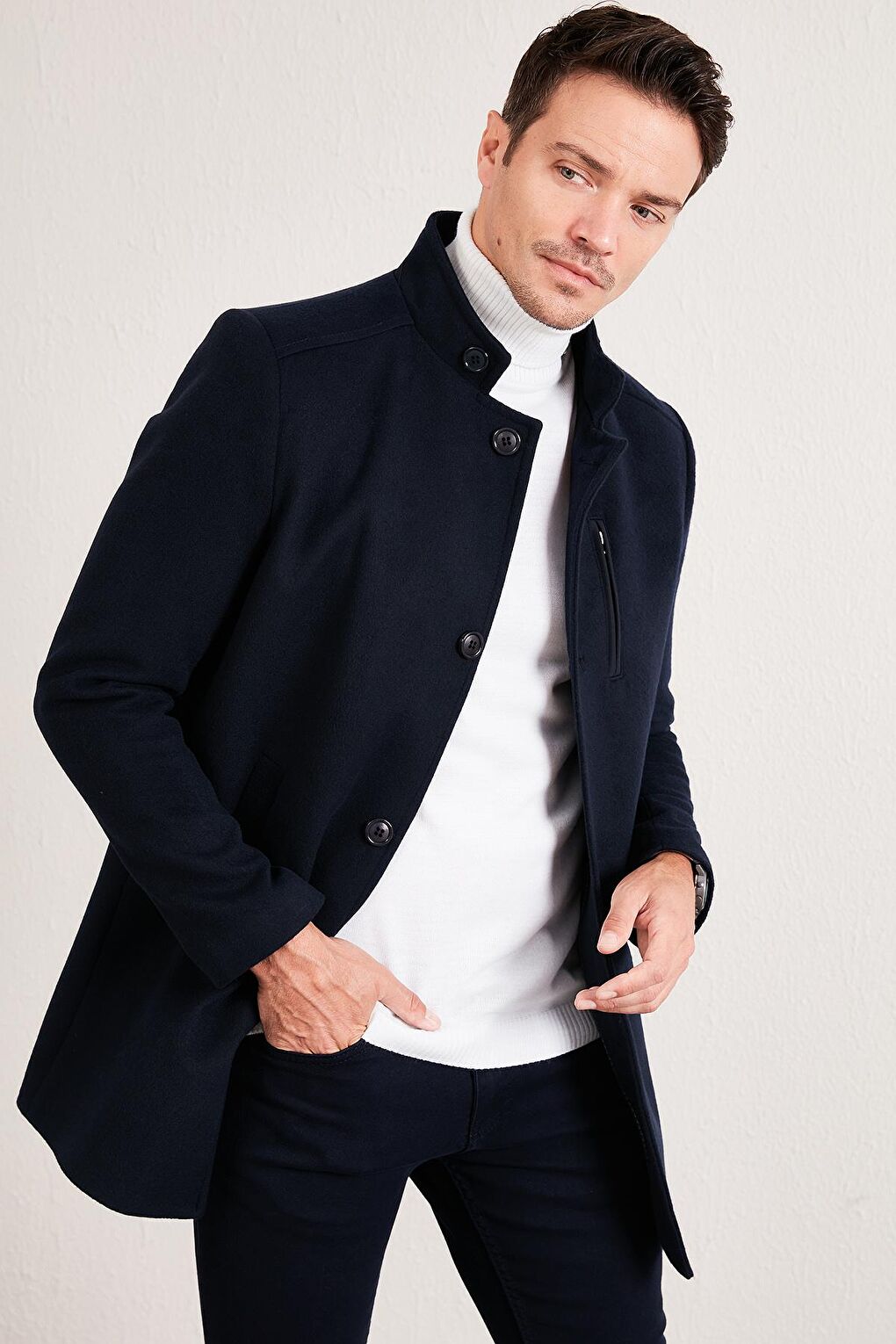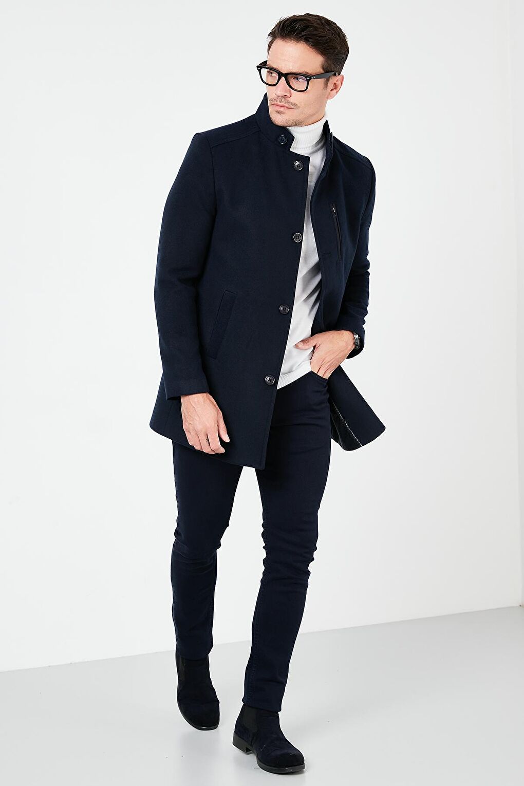 - نام : Slim Fit Düğmeli Dik Yaka Kaşe Kaban 5840099