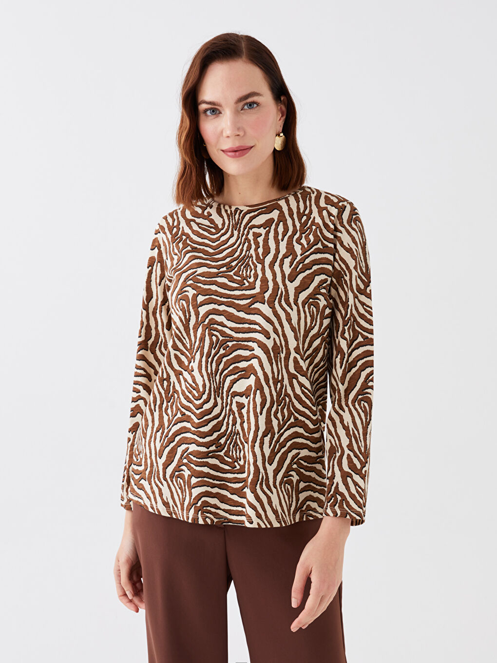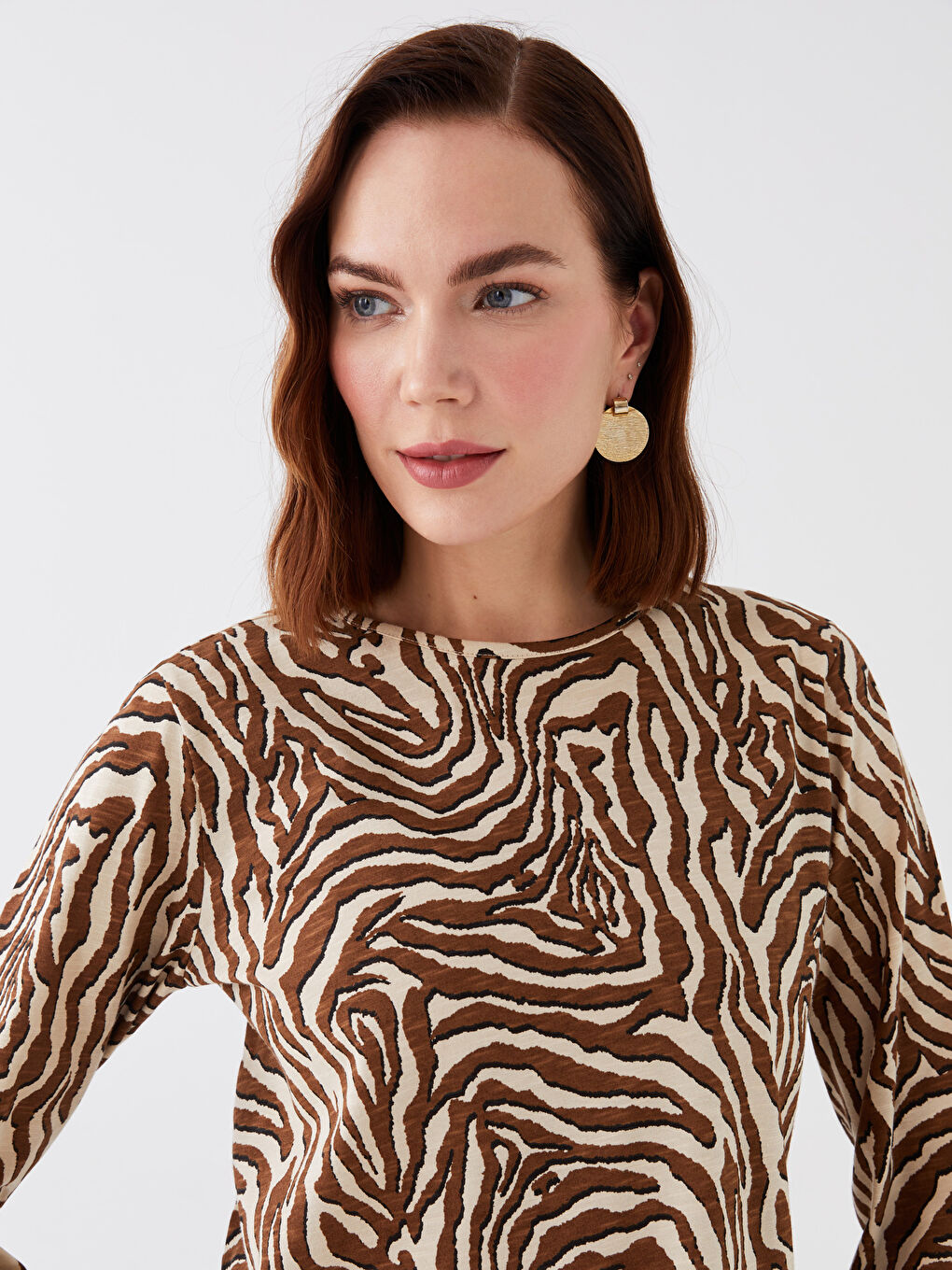 - نام : Bisiklet Yaka Desenli Uzun Kollu Kadın Tişört