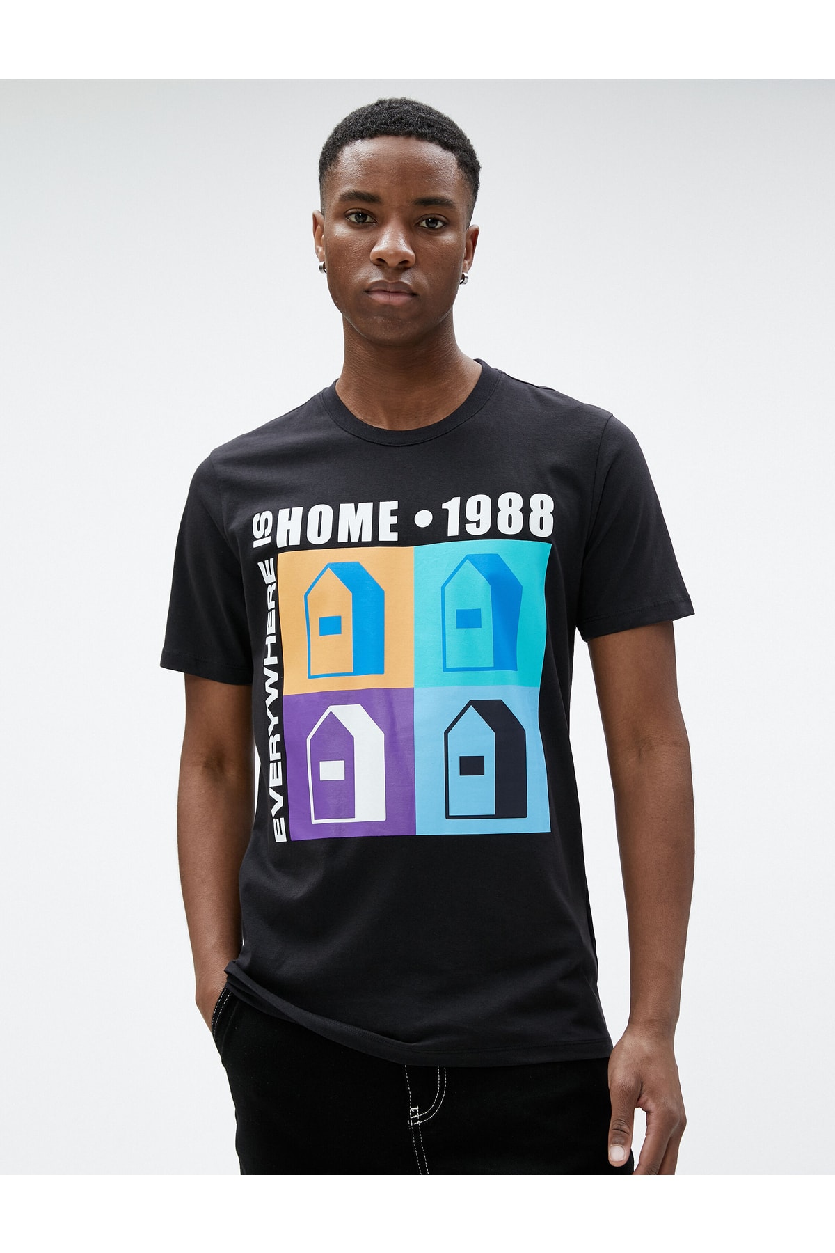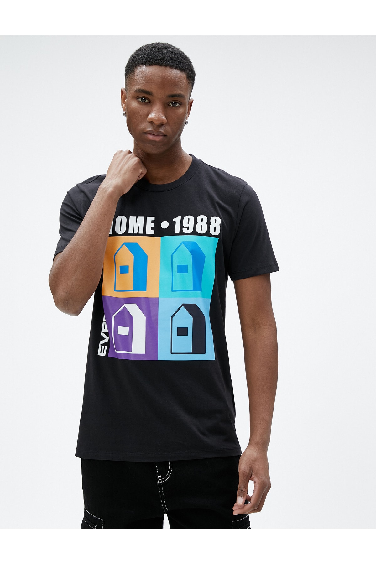 - نام : Slogan Baskılı Tişört Bisiklet Yaka Dar Kesim Pamuklu
