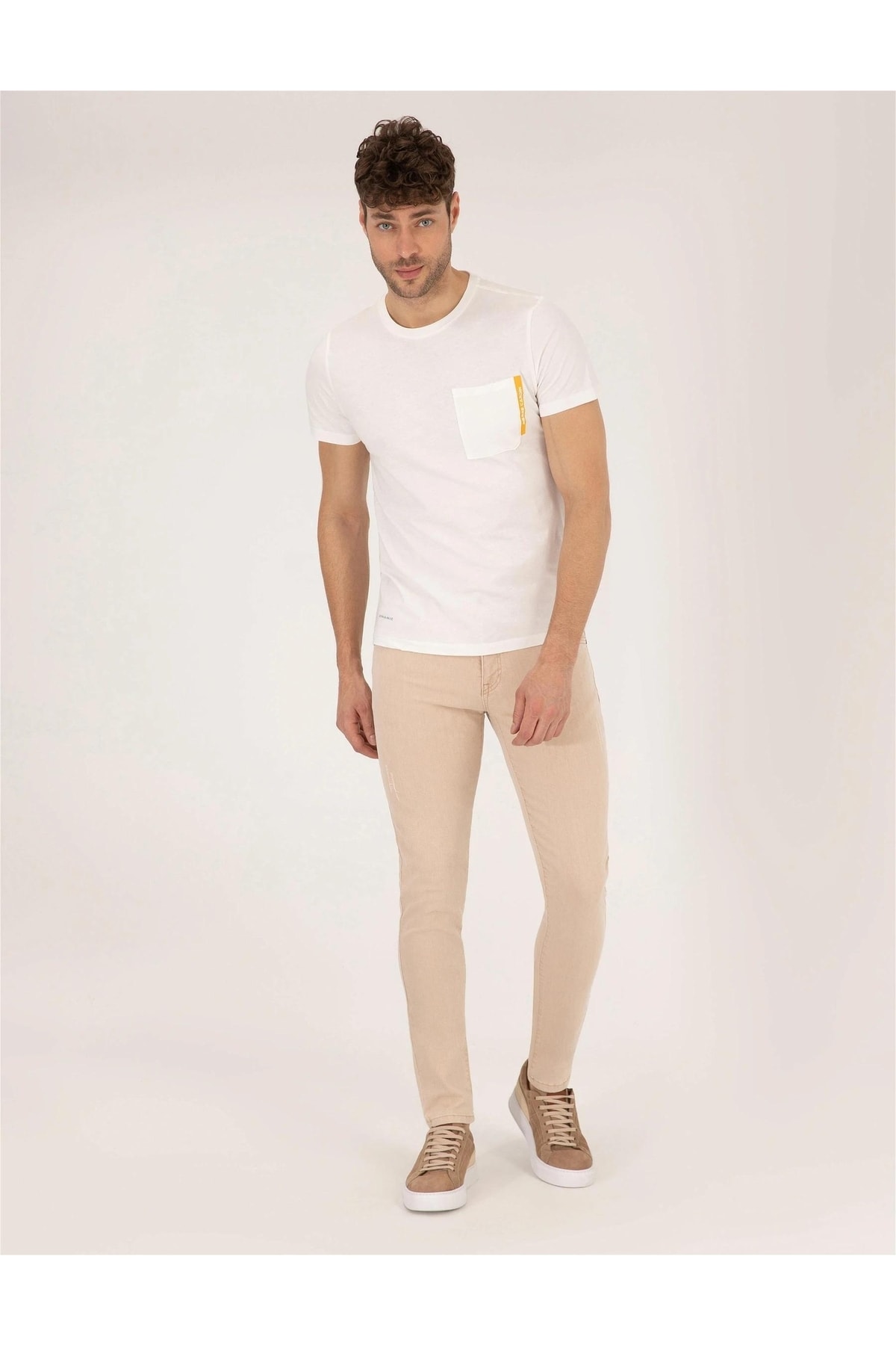 - نام : Ekru Slim Fit Bisiklet Yaka Tişört