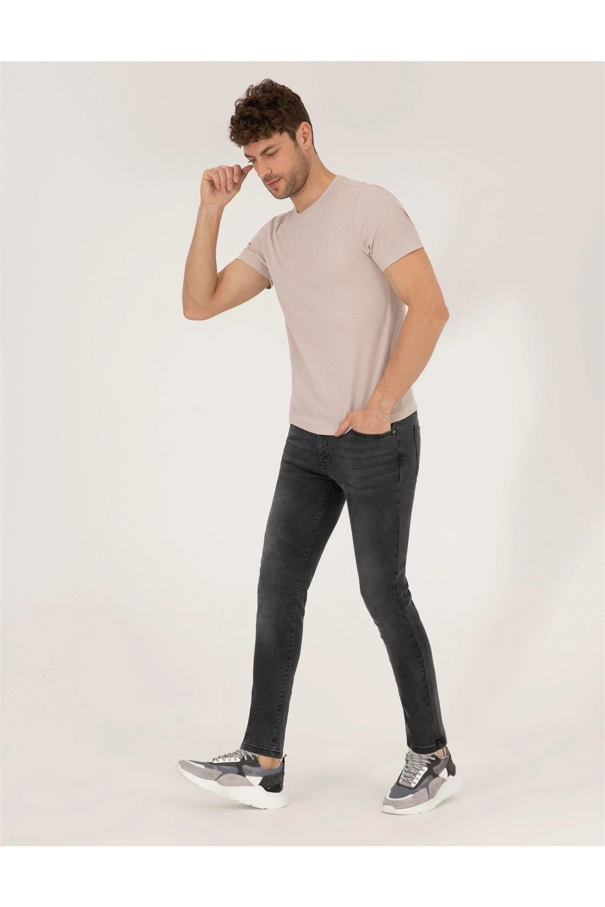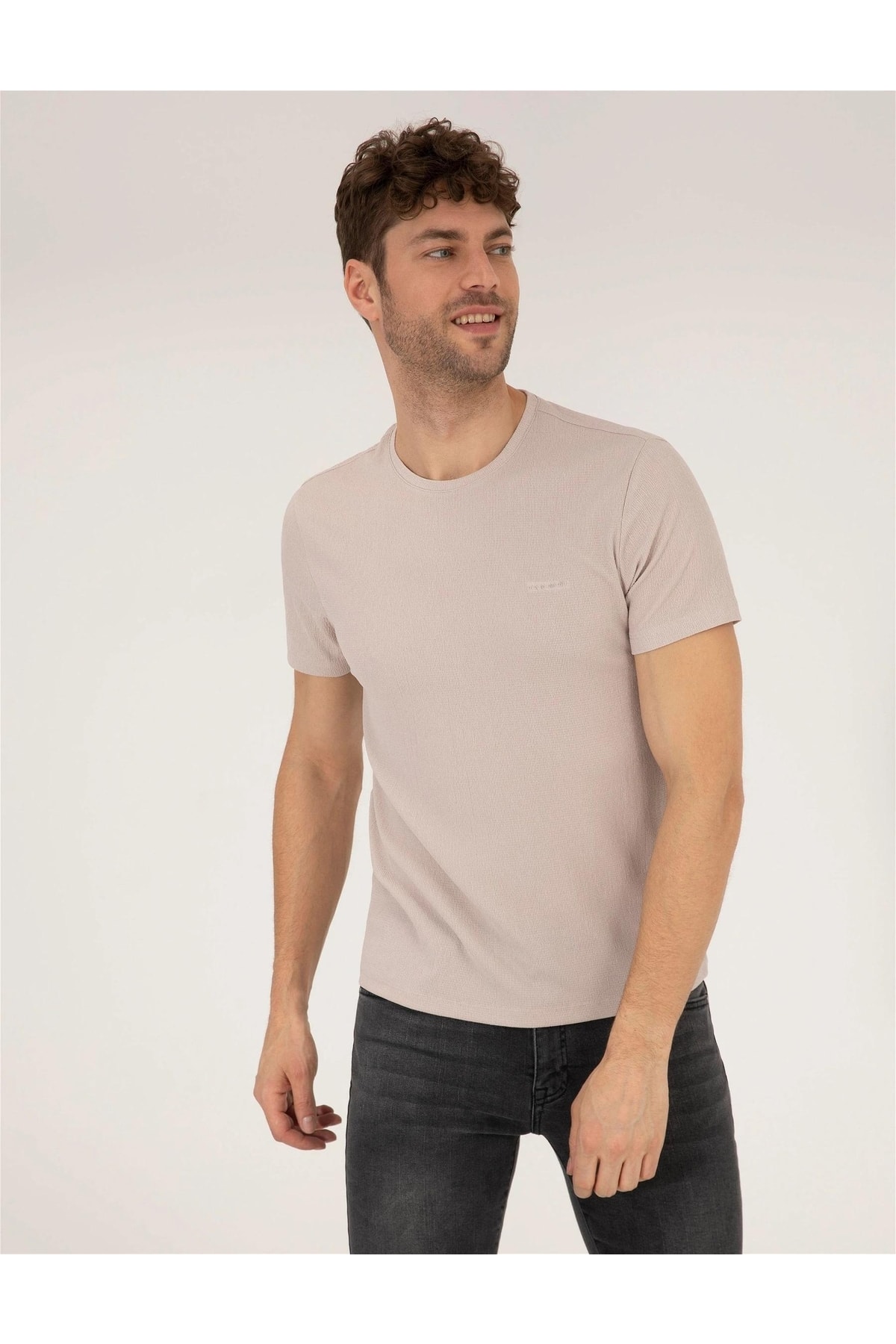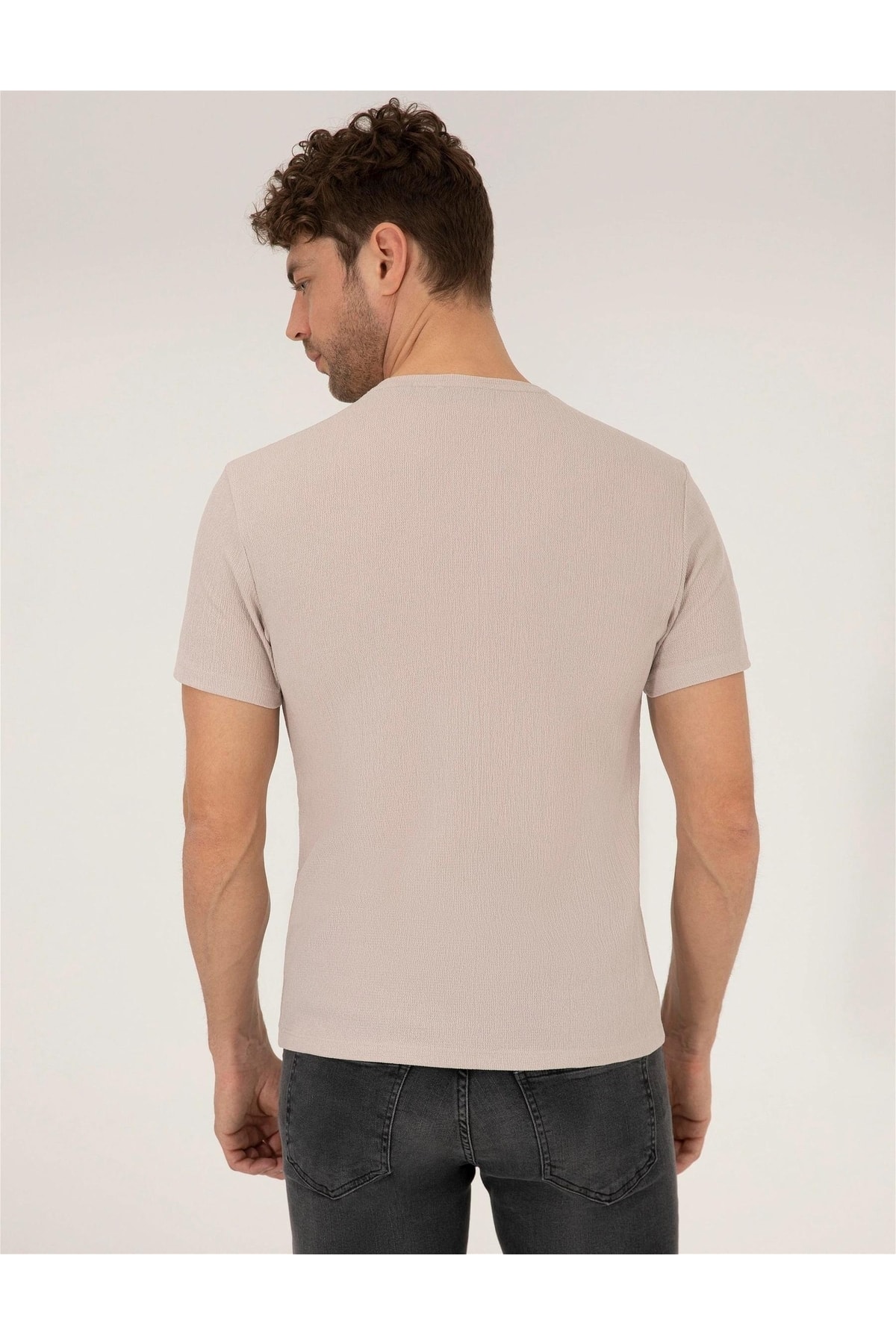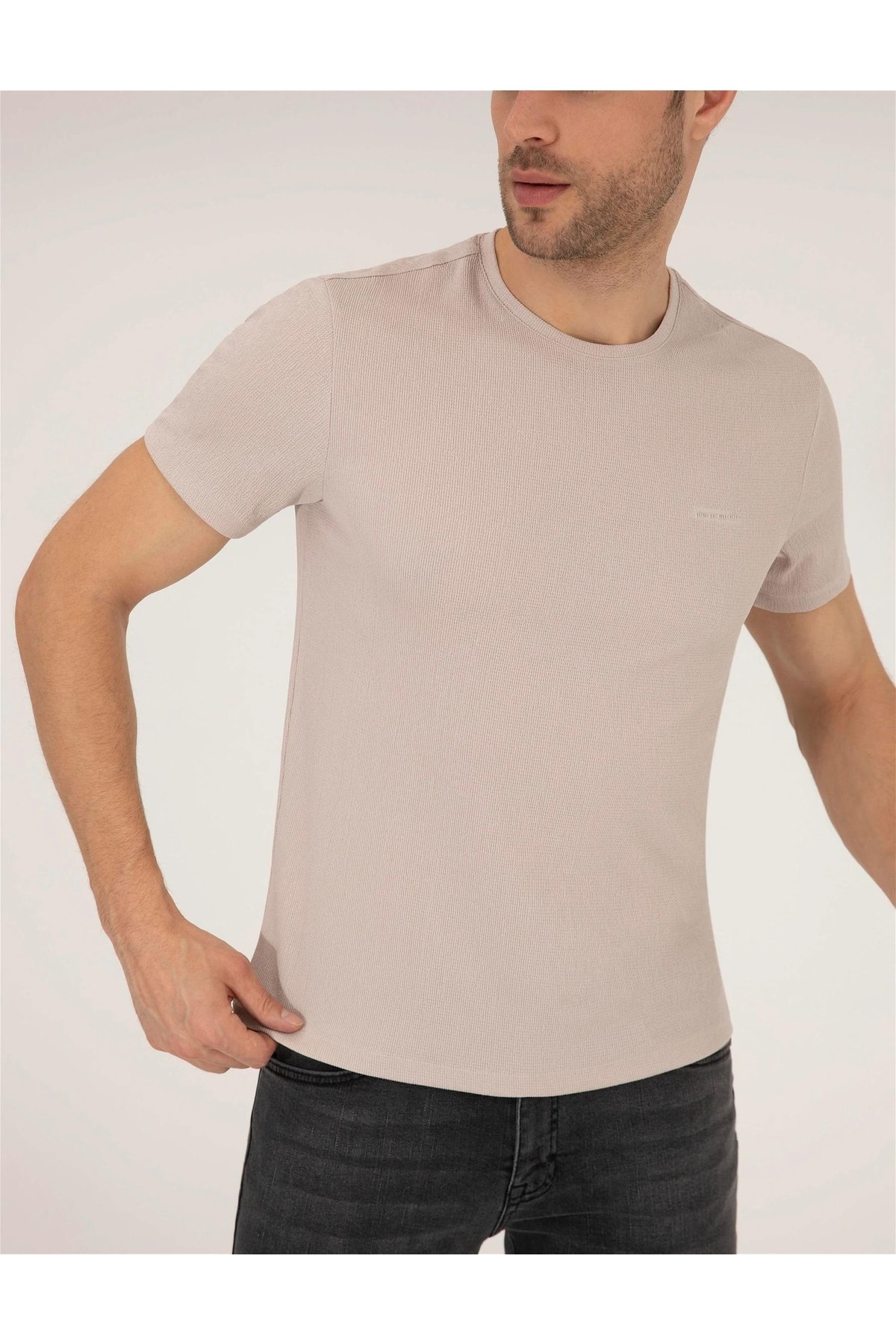 - نام : Bej Slim Fit Bisiklet Yaka Tişört