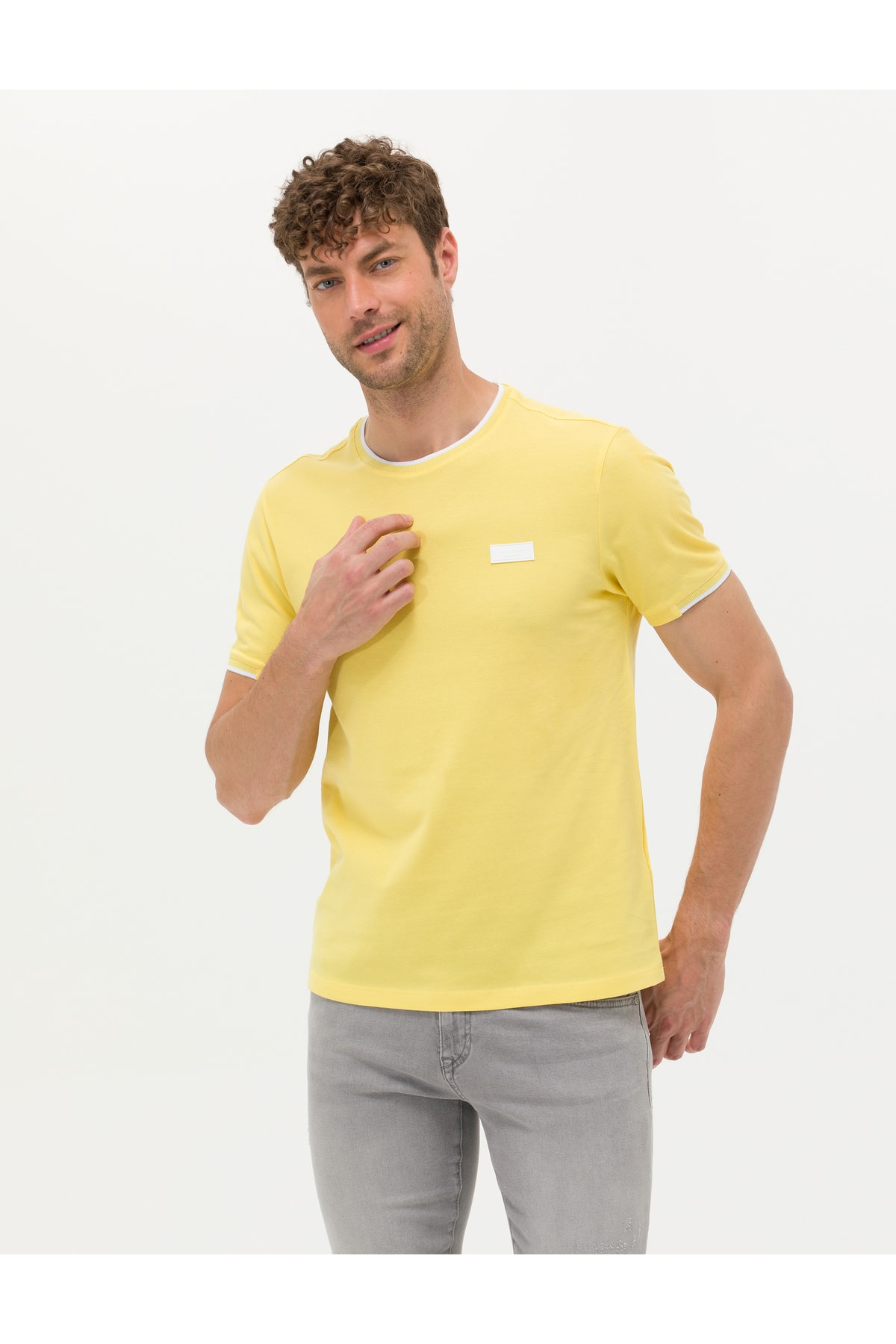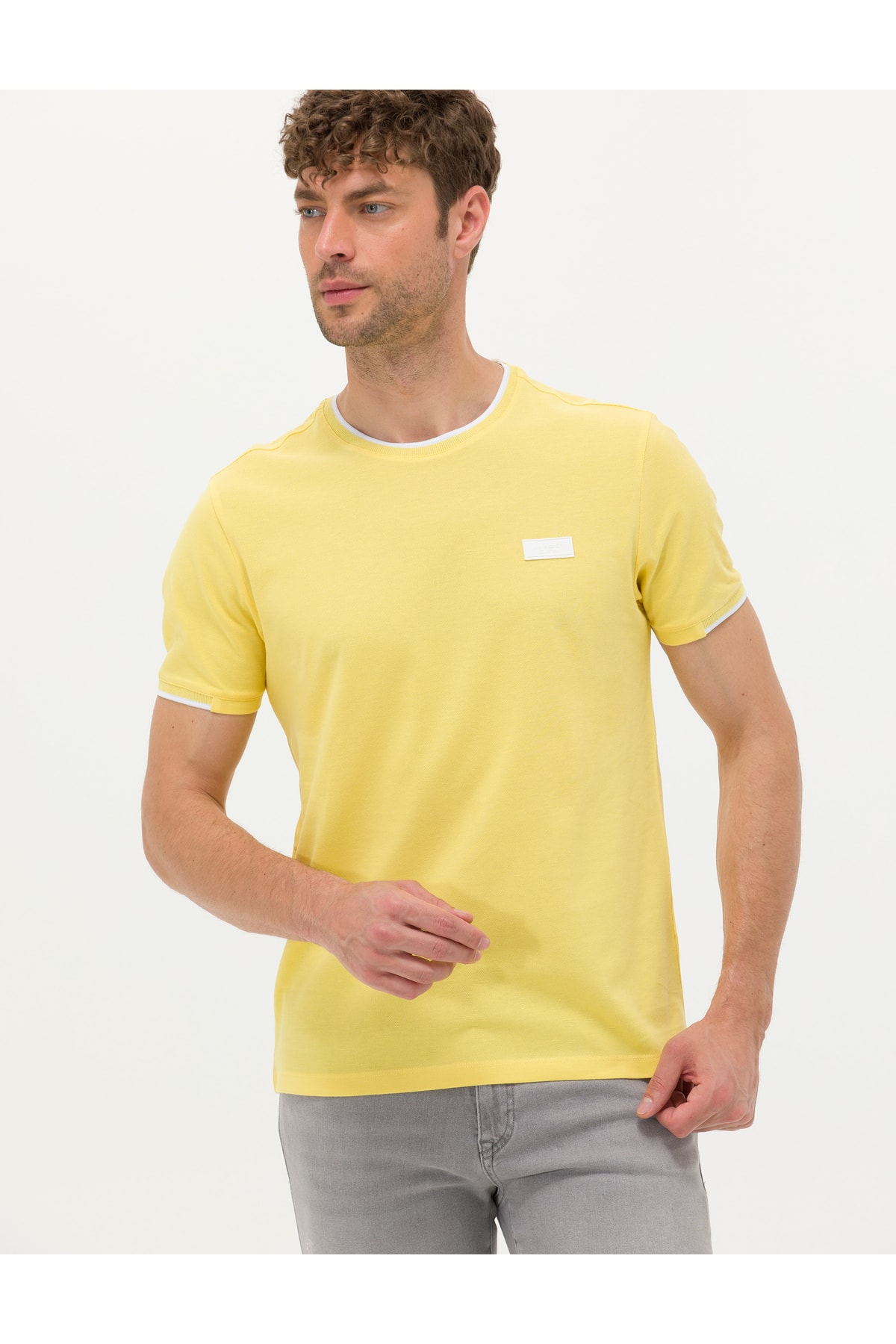 خرید اینترنتی تیشرت آستین کوتاه مردانه زرد پیر کاردین 1567151