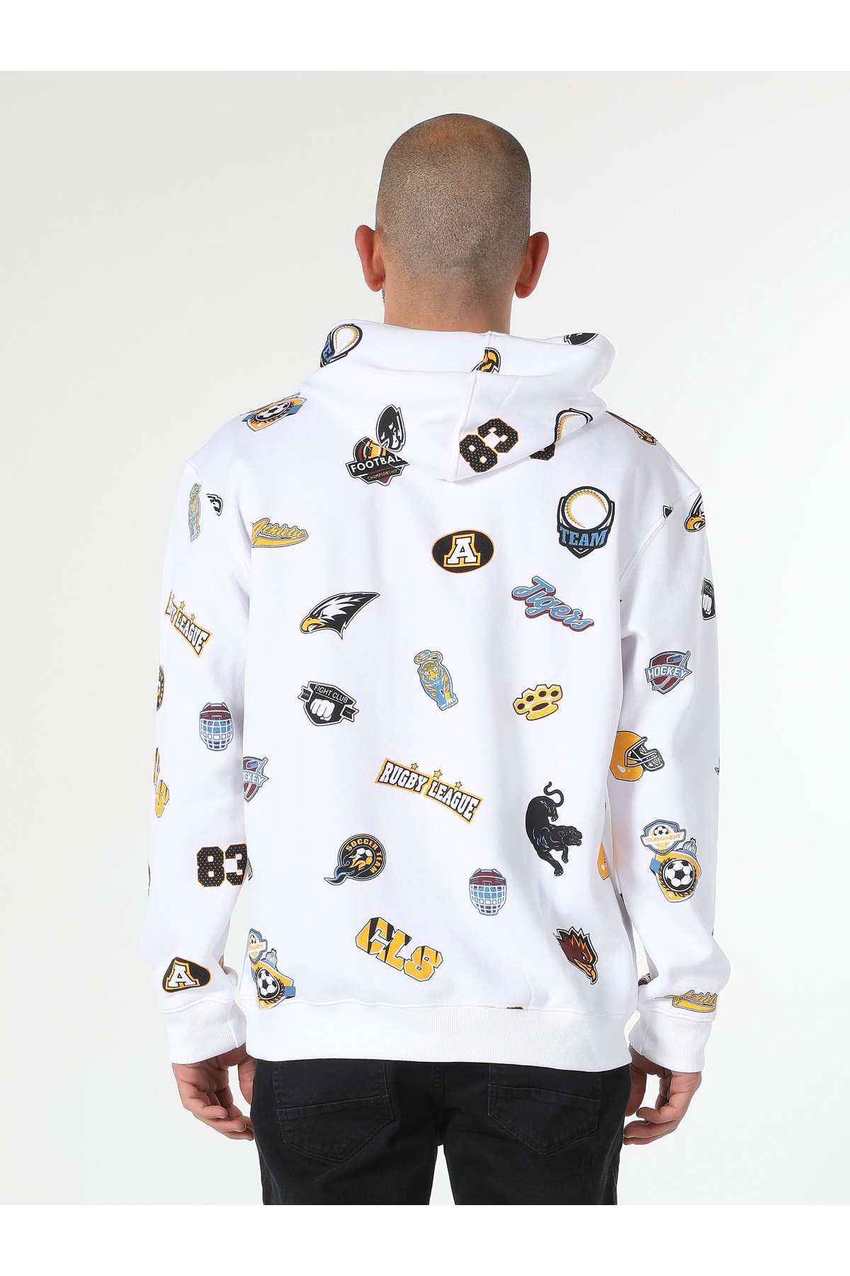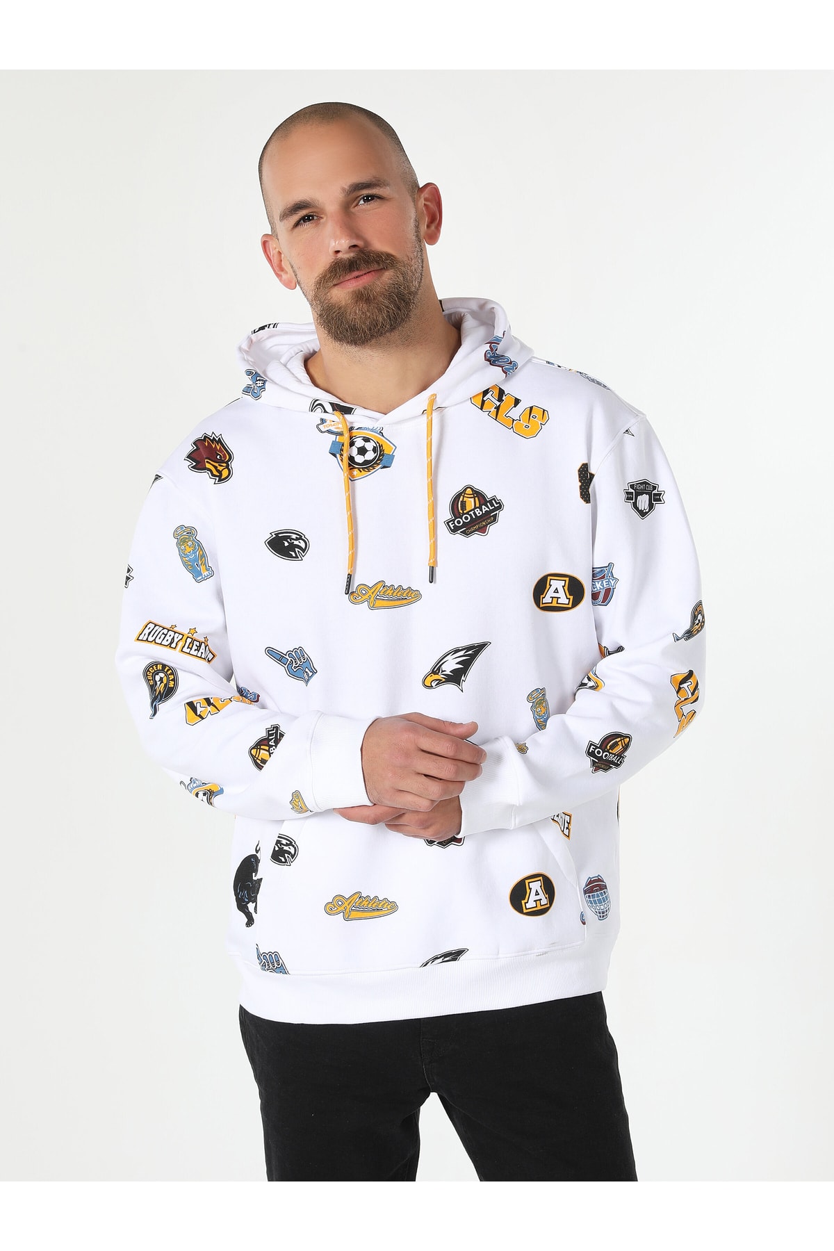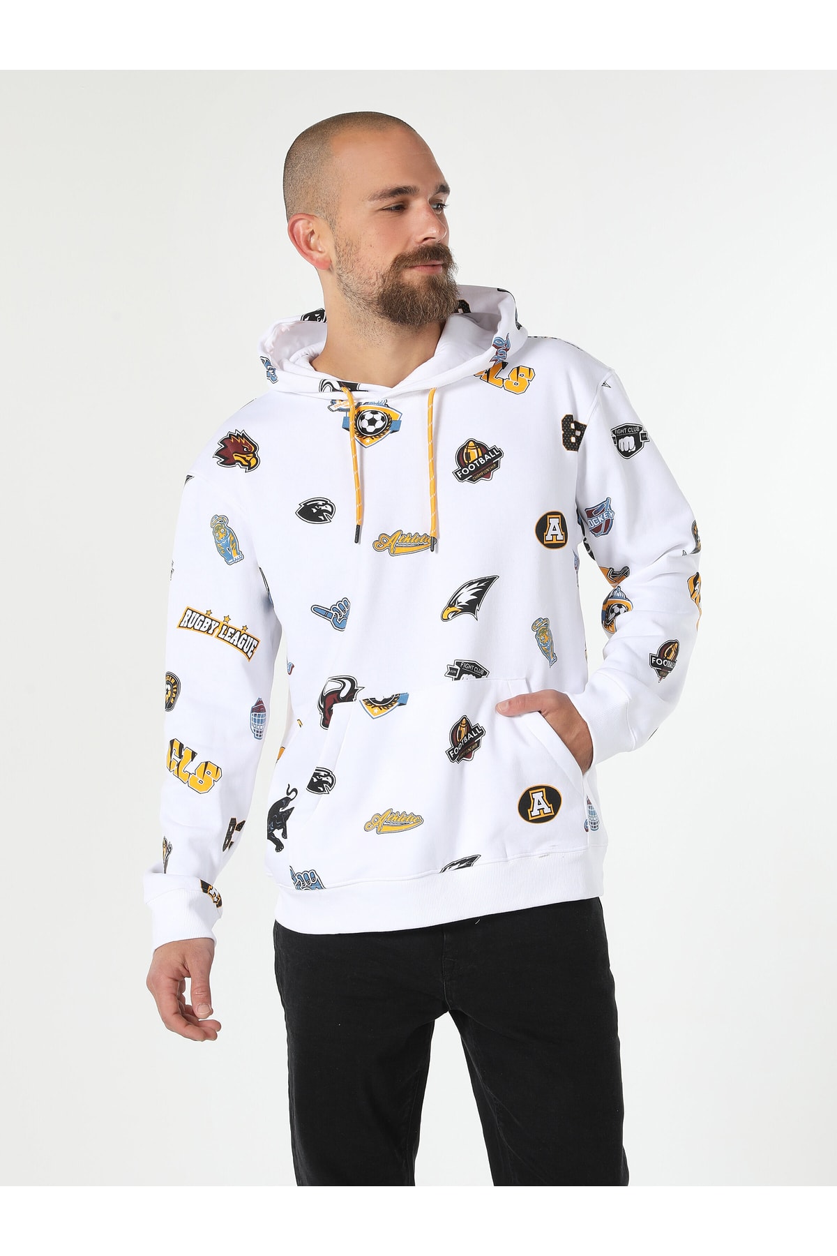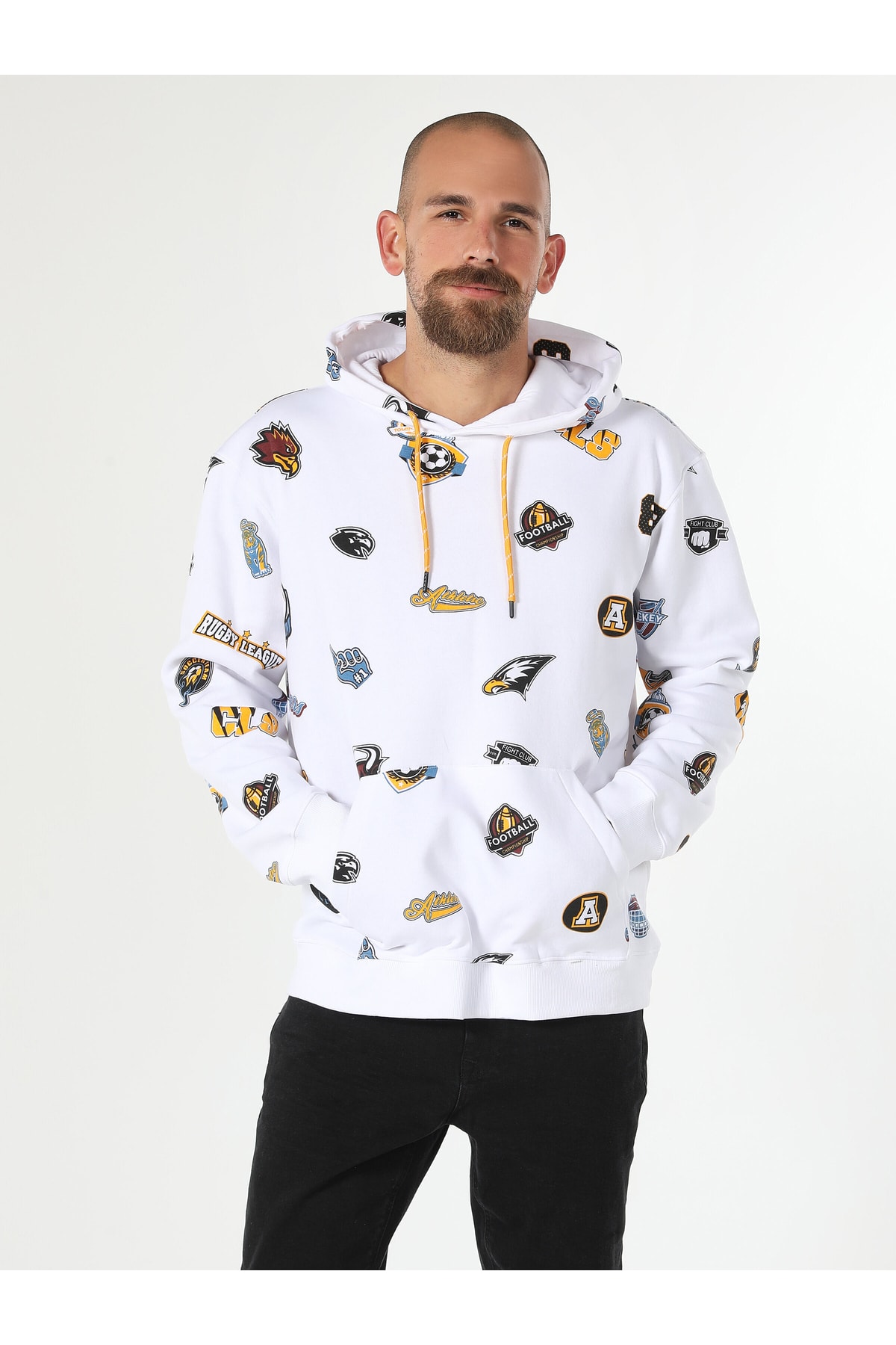- نام : Regular Fit Baskılı Kapüşonlu Beyaz Erkek Sweatshirt
