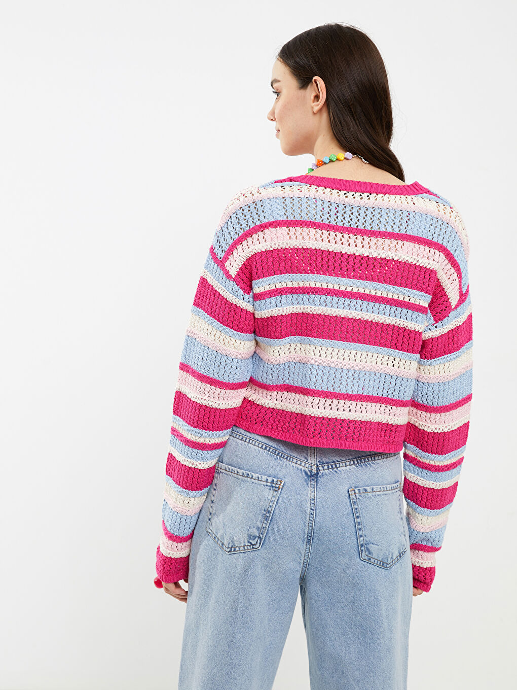 - نام : Bisiklet Yaka Çizgili Uzun Kollu Kadın Triko Hırka