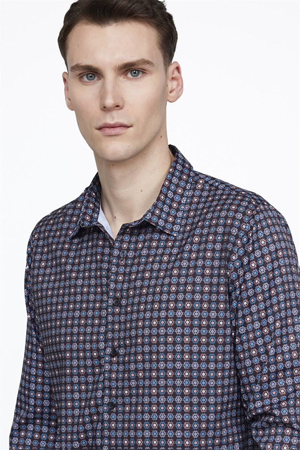 - نام : Tudors Slim Fit Dar Kesim Uzun Kol Likralı Baskılı Erkek Çok Renkli Gömlek