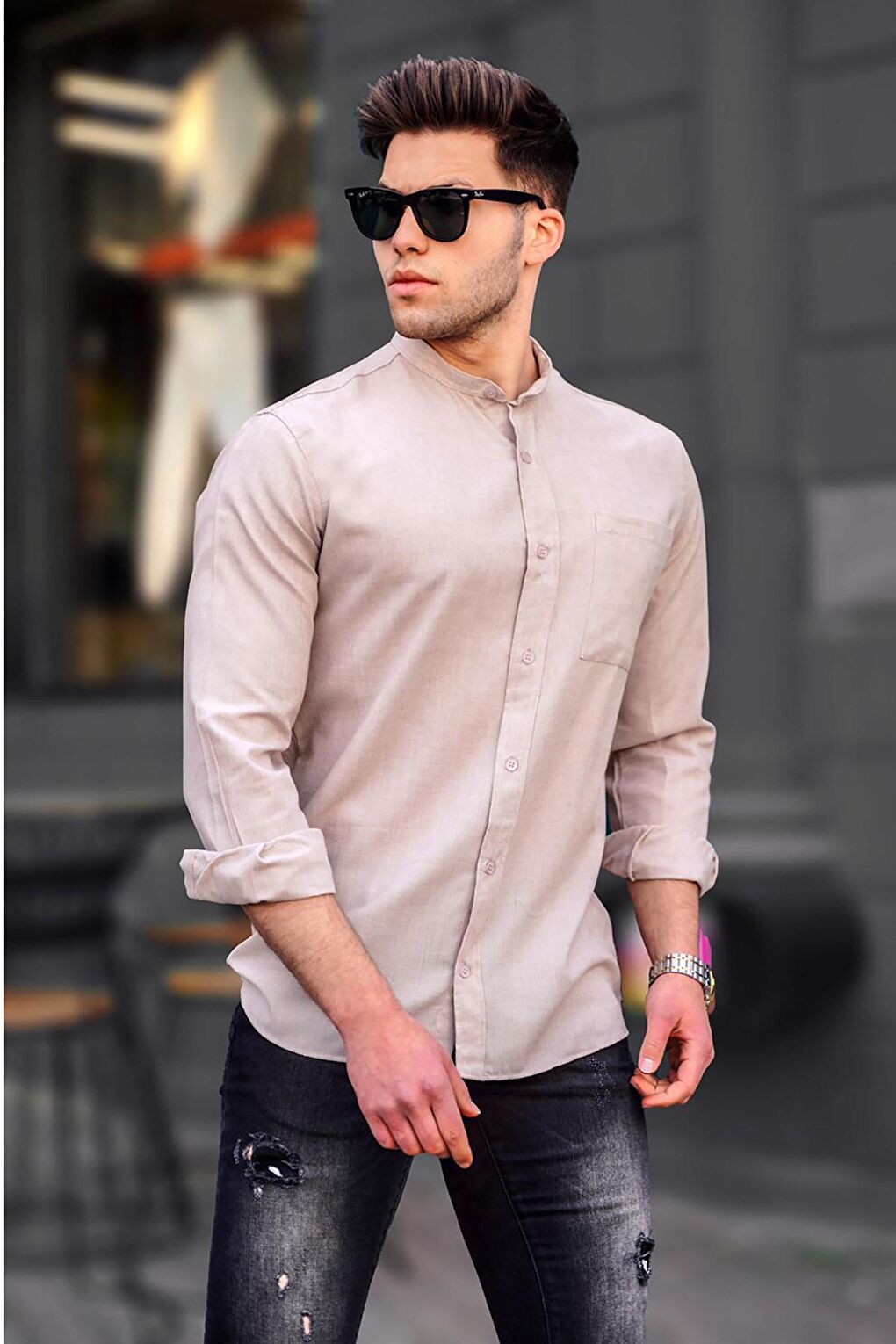 خرید اینترنتی پیراهن آستین بلند مردانه بژ برند Madmext 5548