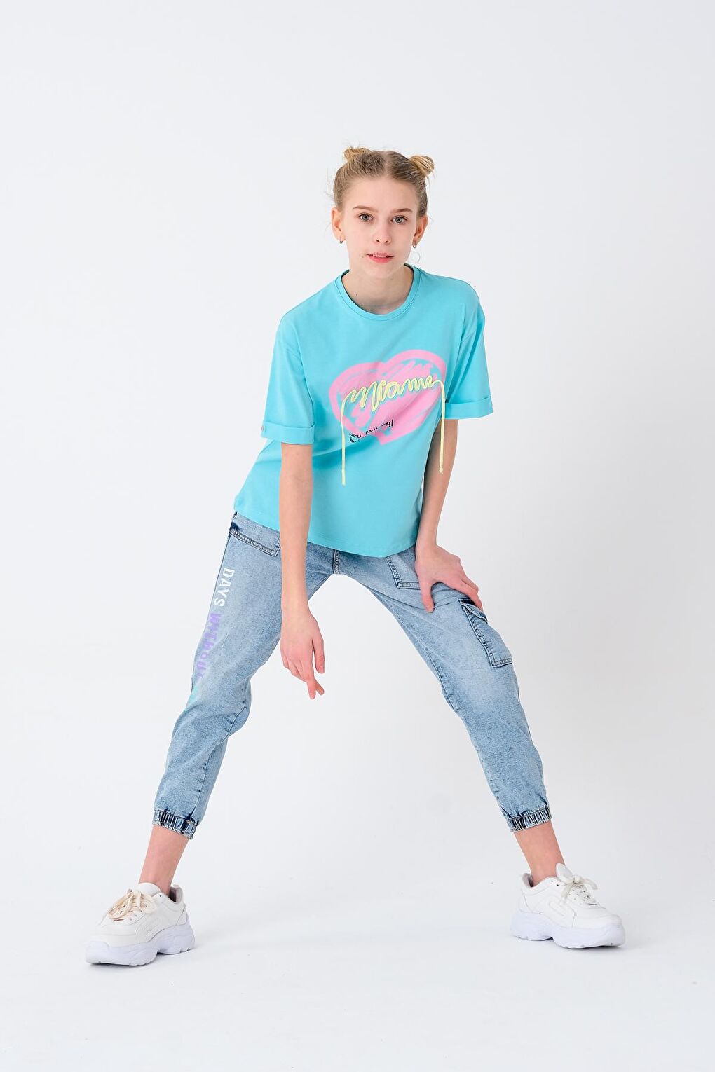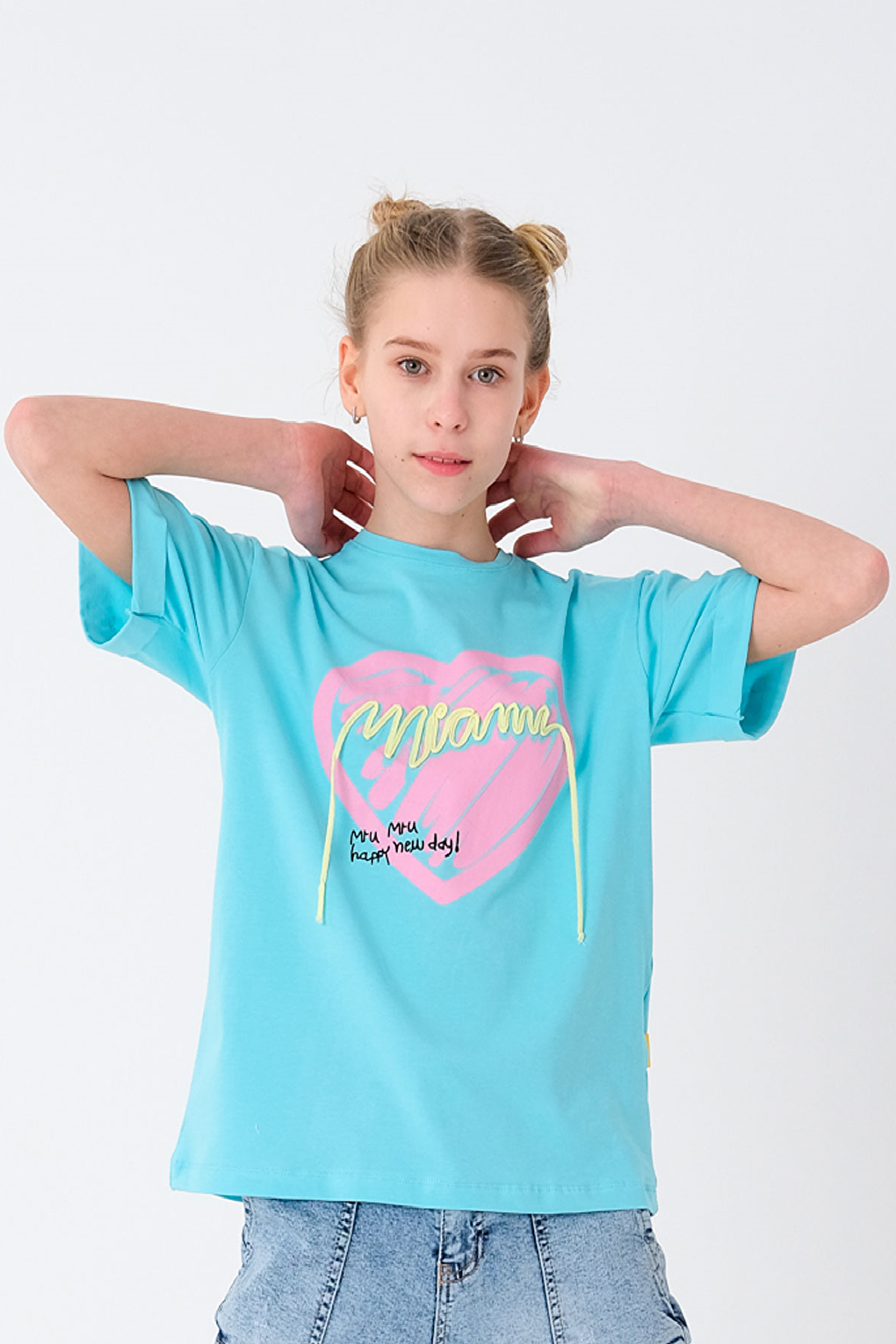 خرید اینترنتی تی شرت آستین کوتاه بچه گانه دخترانه فیروزهای برند angelos KTP00010775