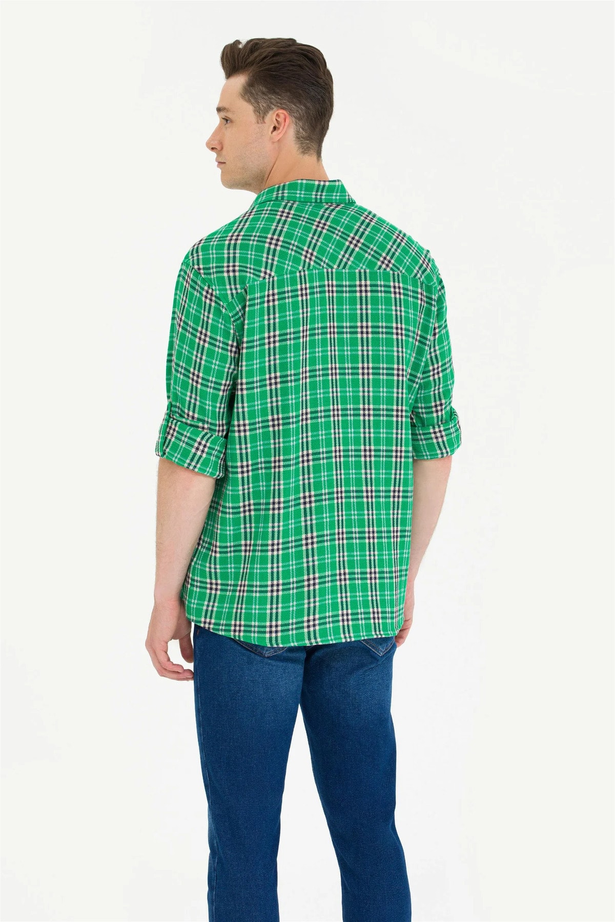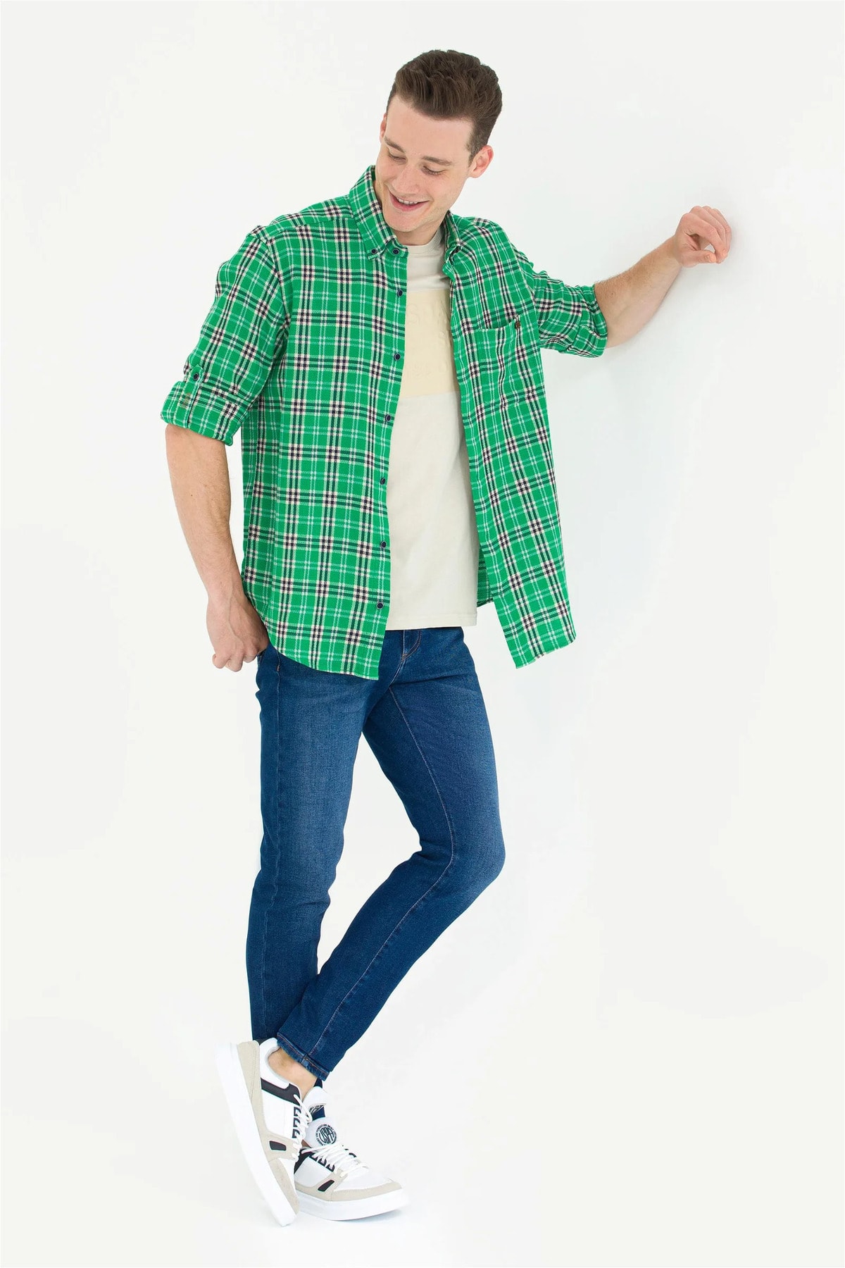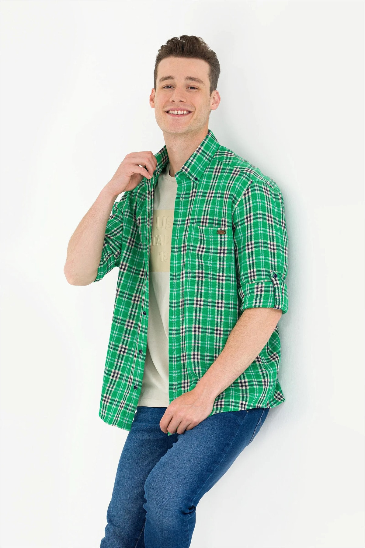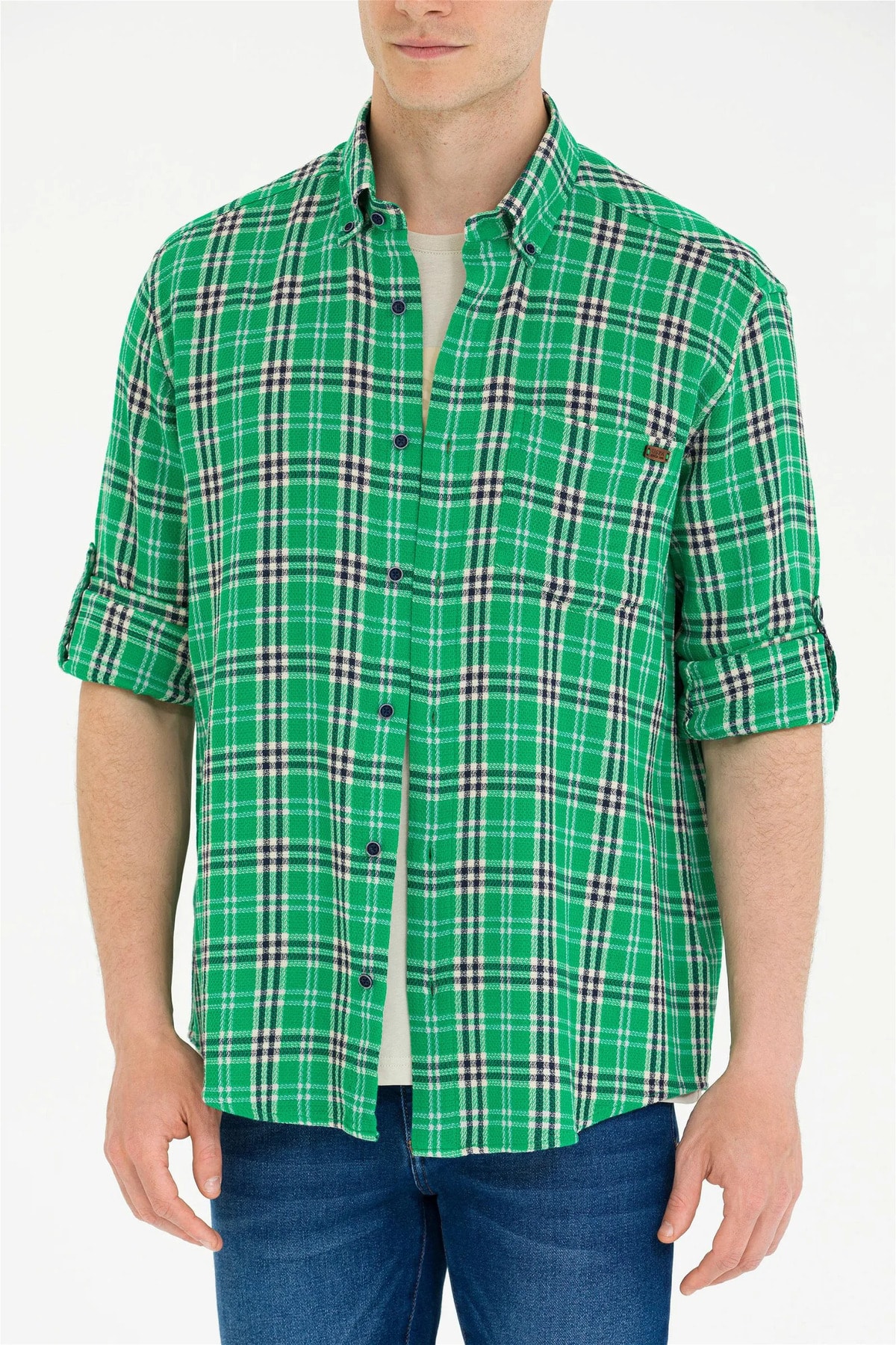 OROMO Ekose Desenli Katlanabilir Kol Yakası Düğmeli Comfort Fit Cepli Erkek Gömlek G081SZ004.000.1583155 %100 Pamuk