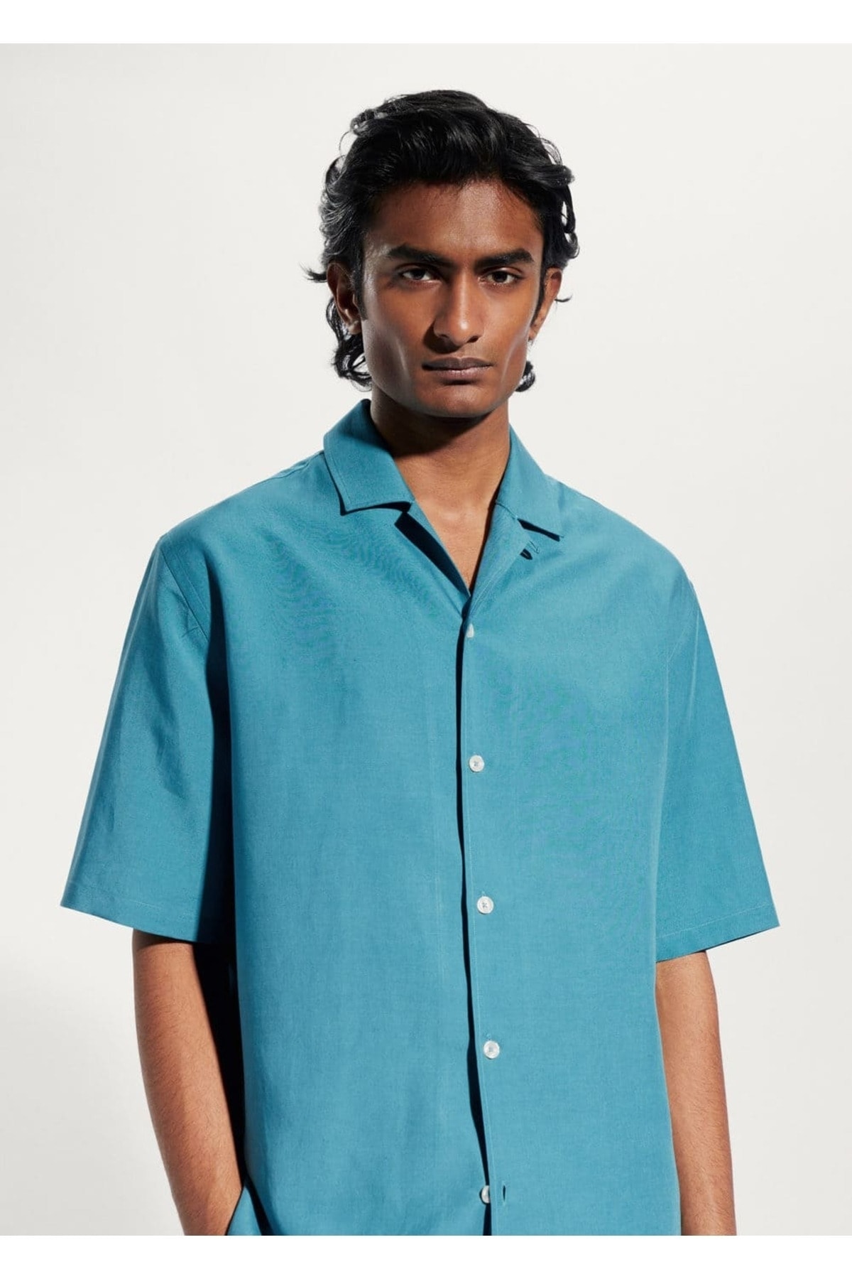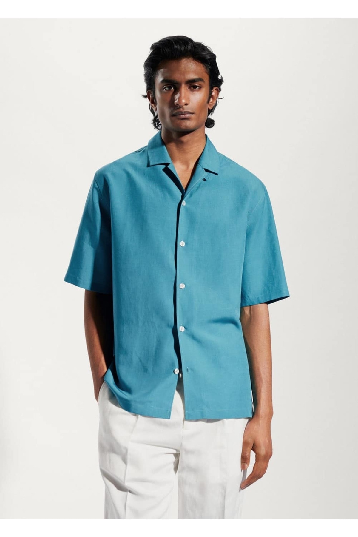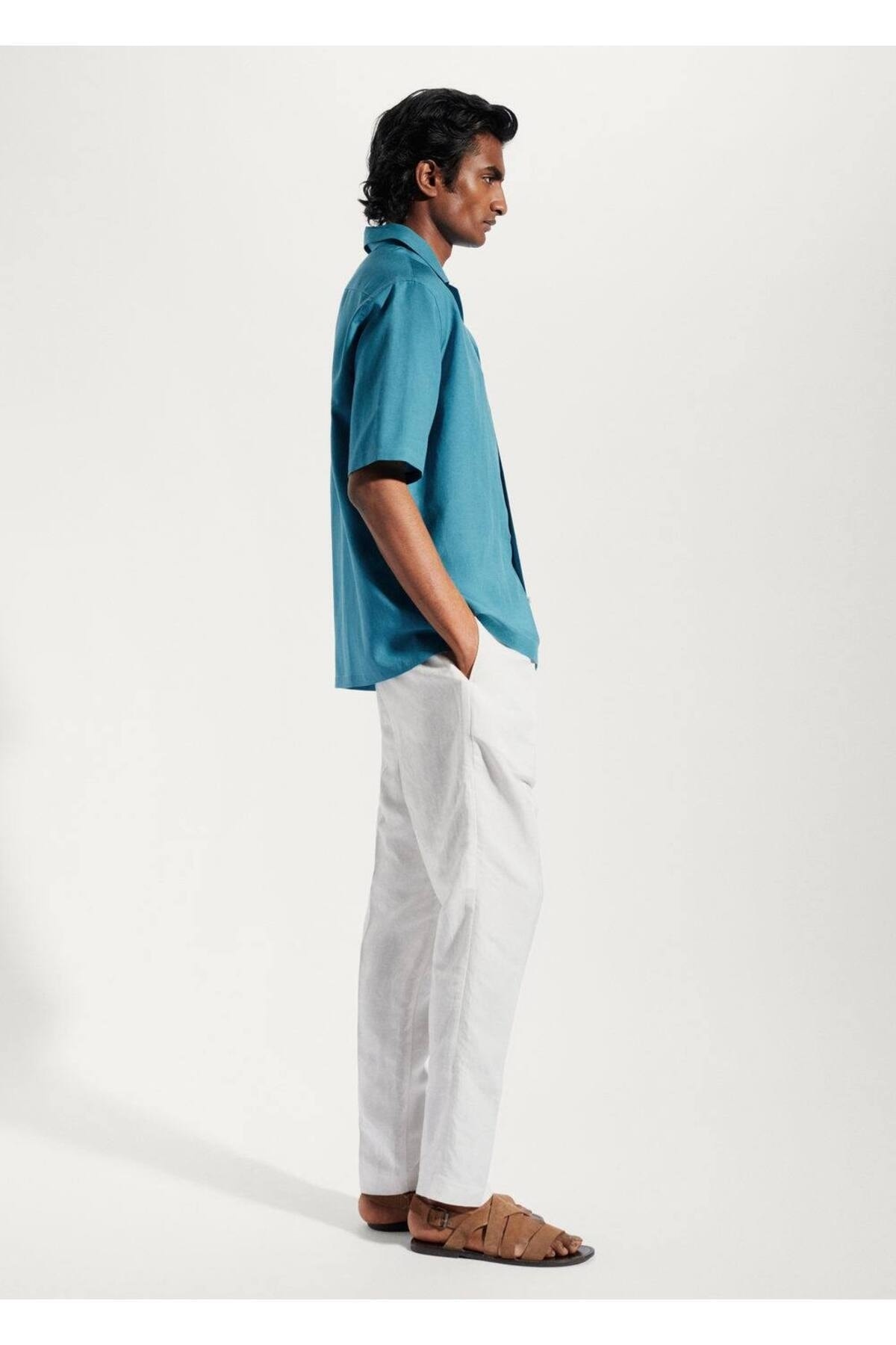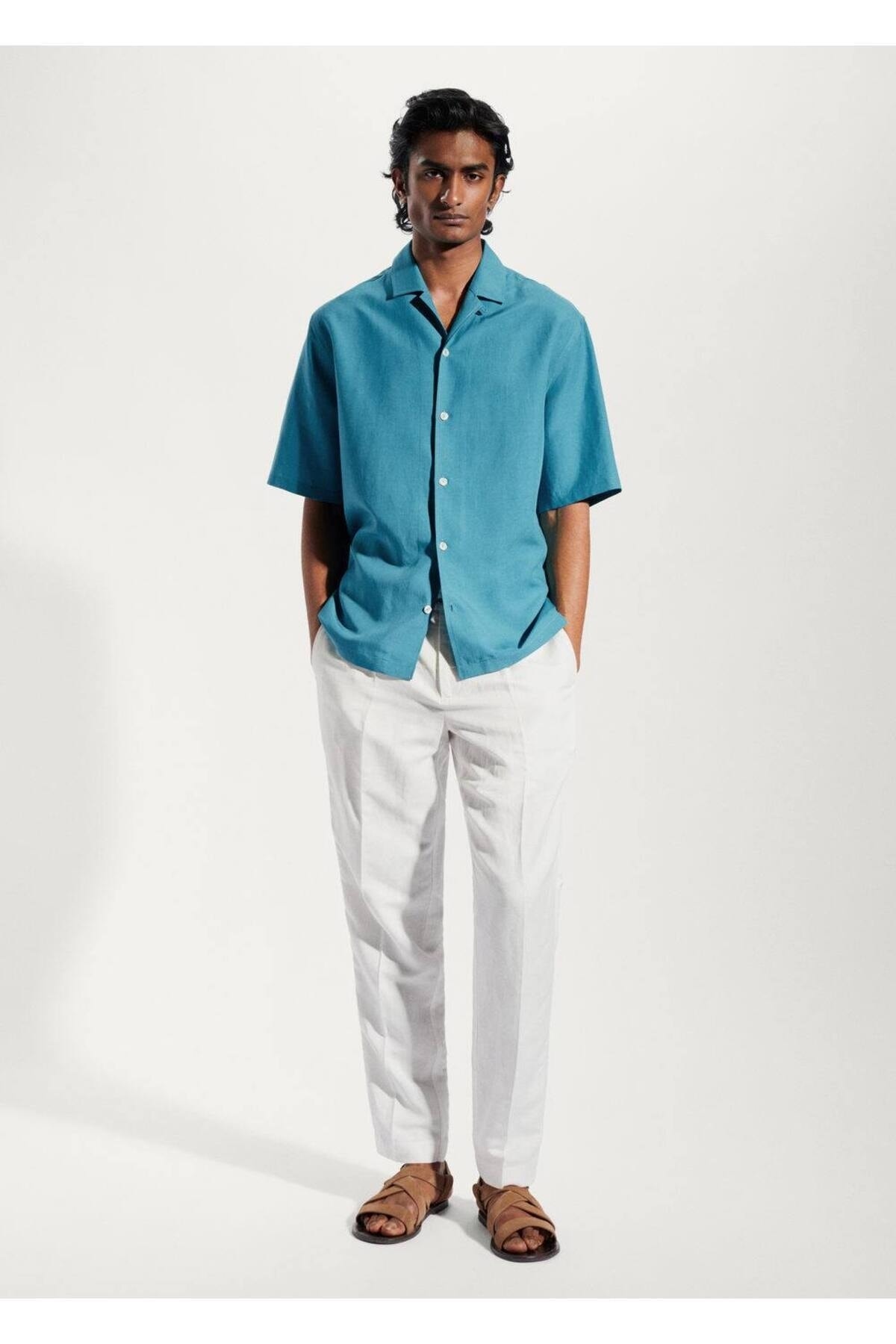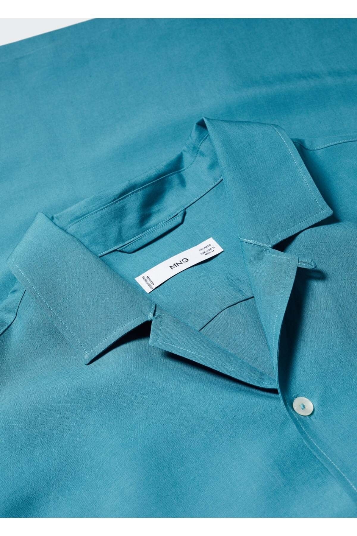 خرید اینترنتی پیراهن آستین کوتاه مردانه فیروزهای مانگو 47087818
