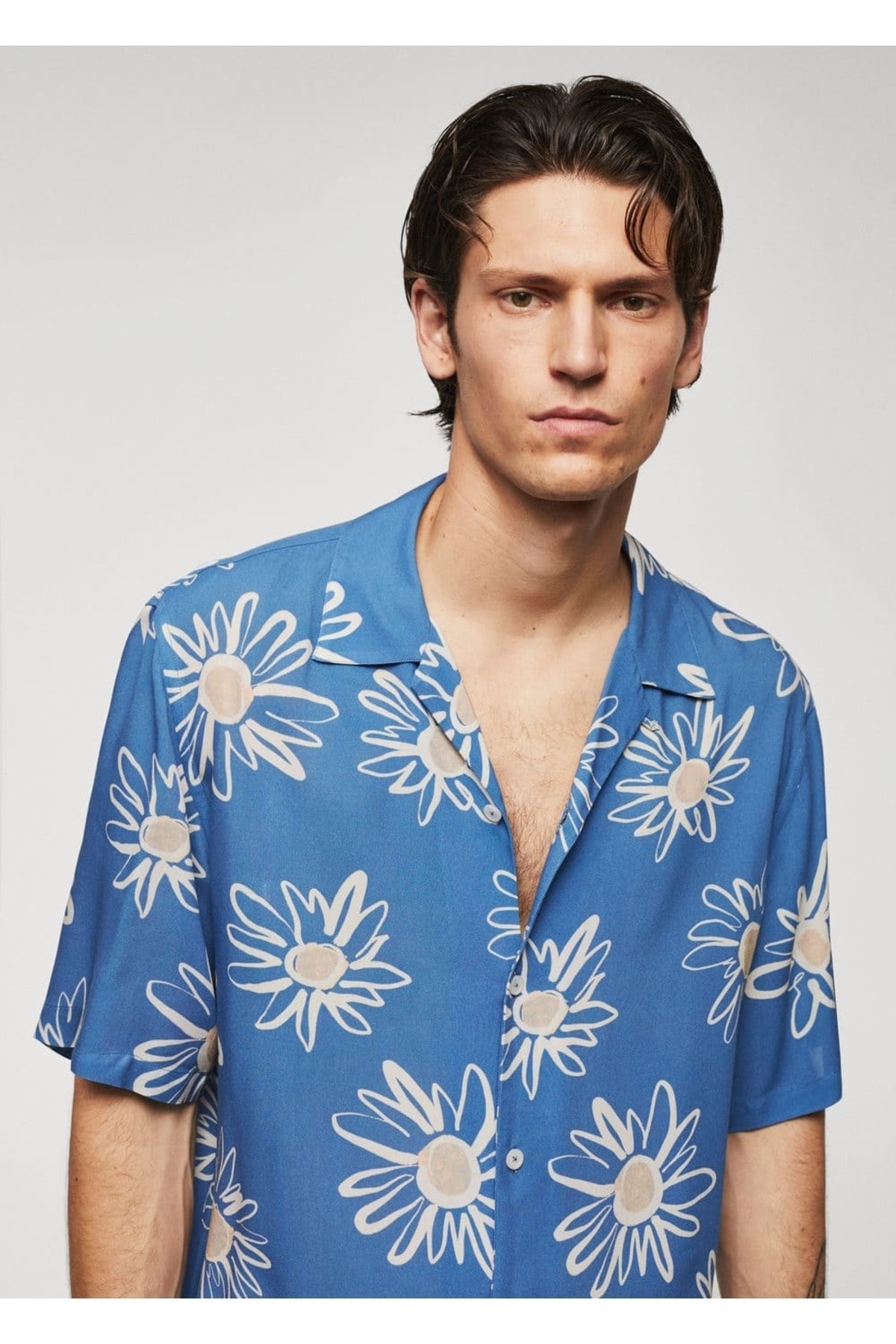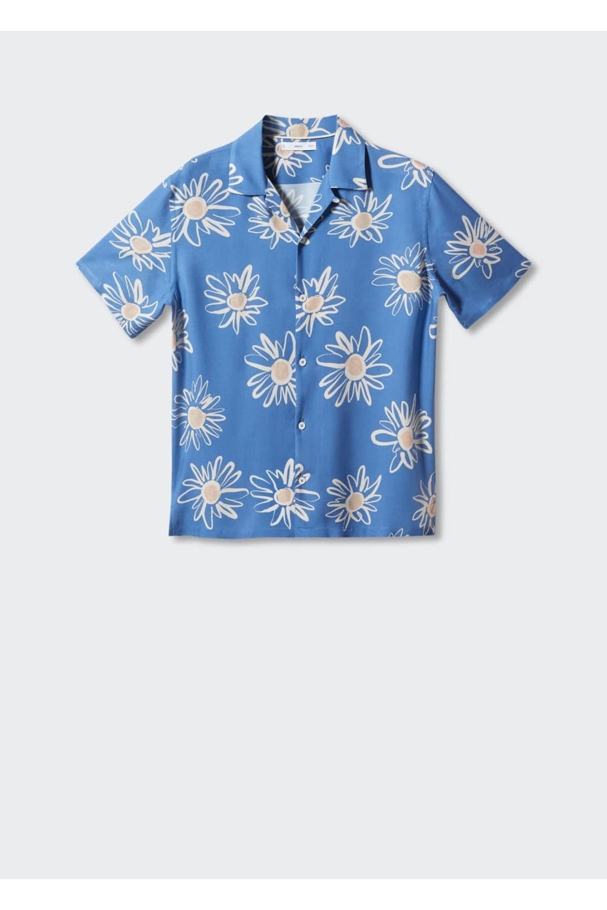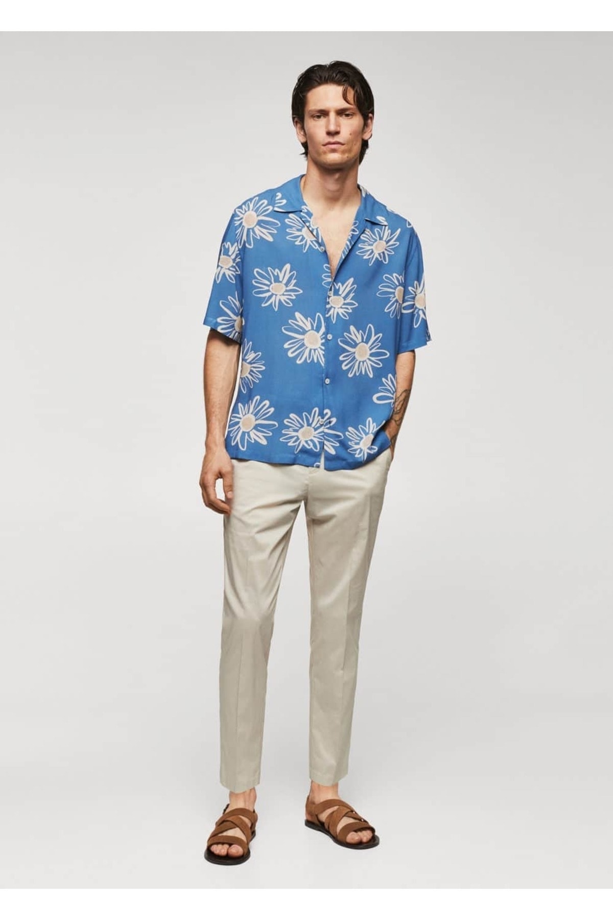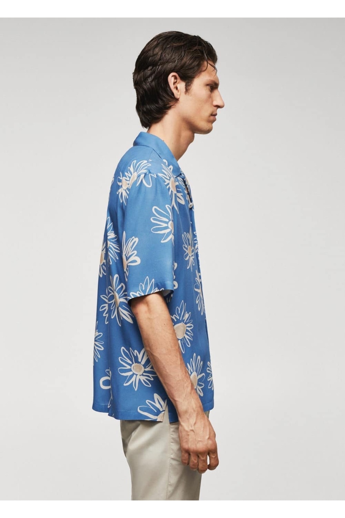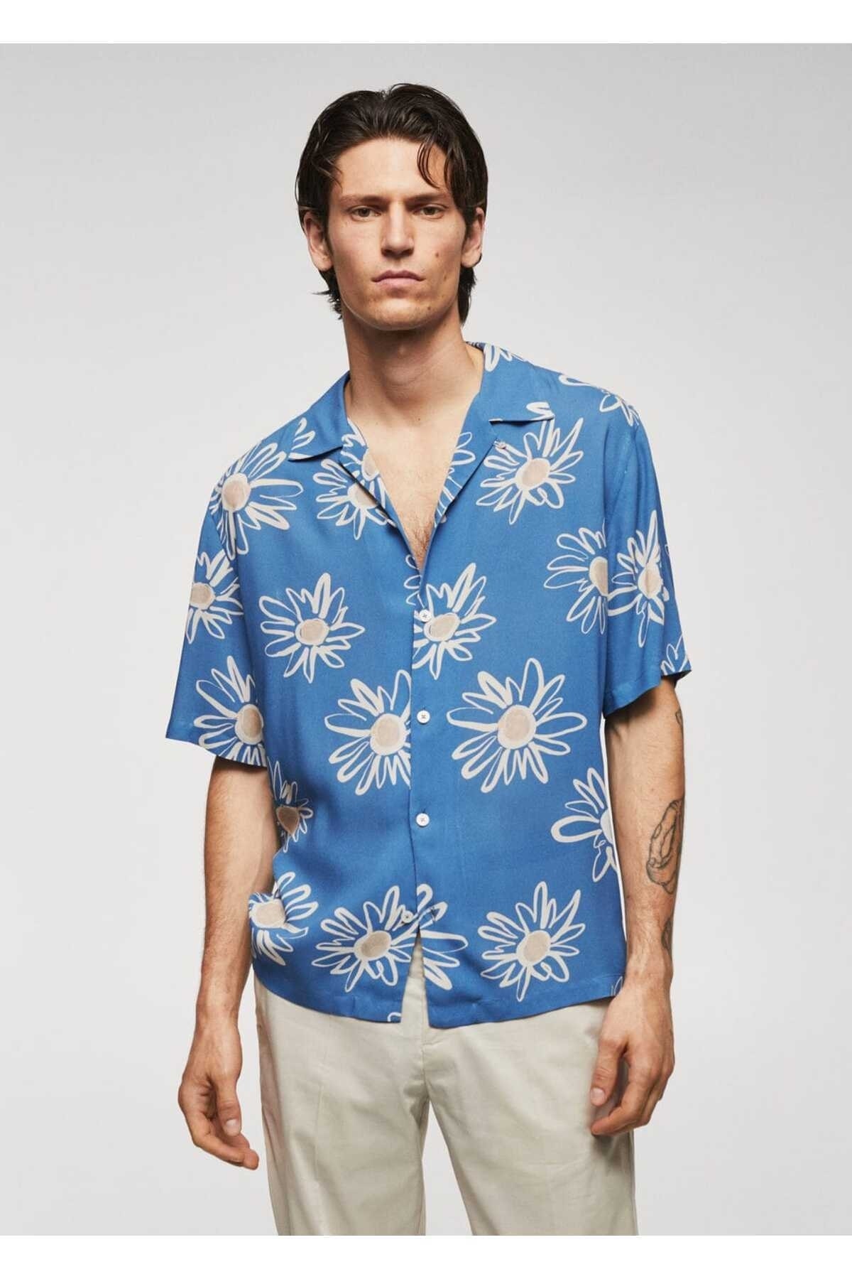 خرید اینترنتی پیراهن آستین کوتاه مردانه آبی مانگو 57040788