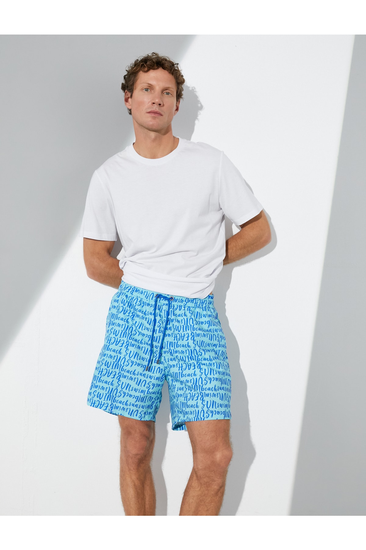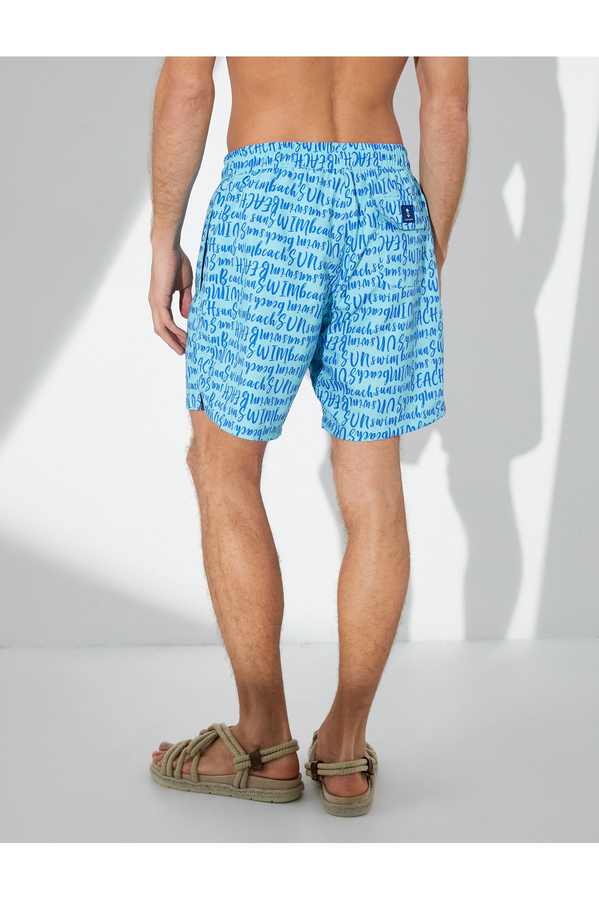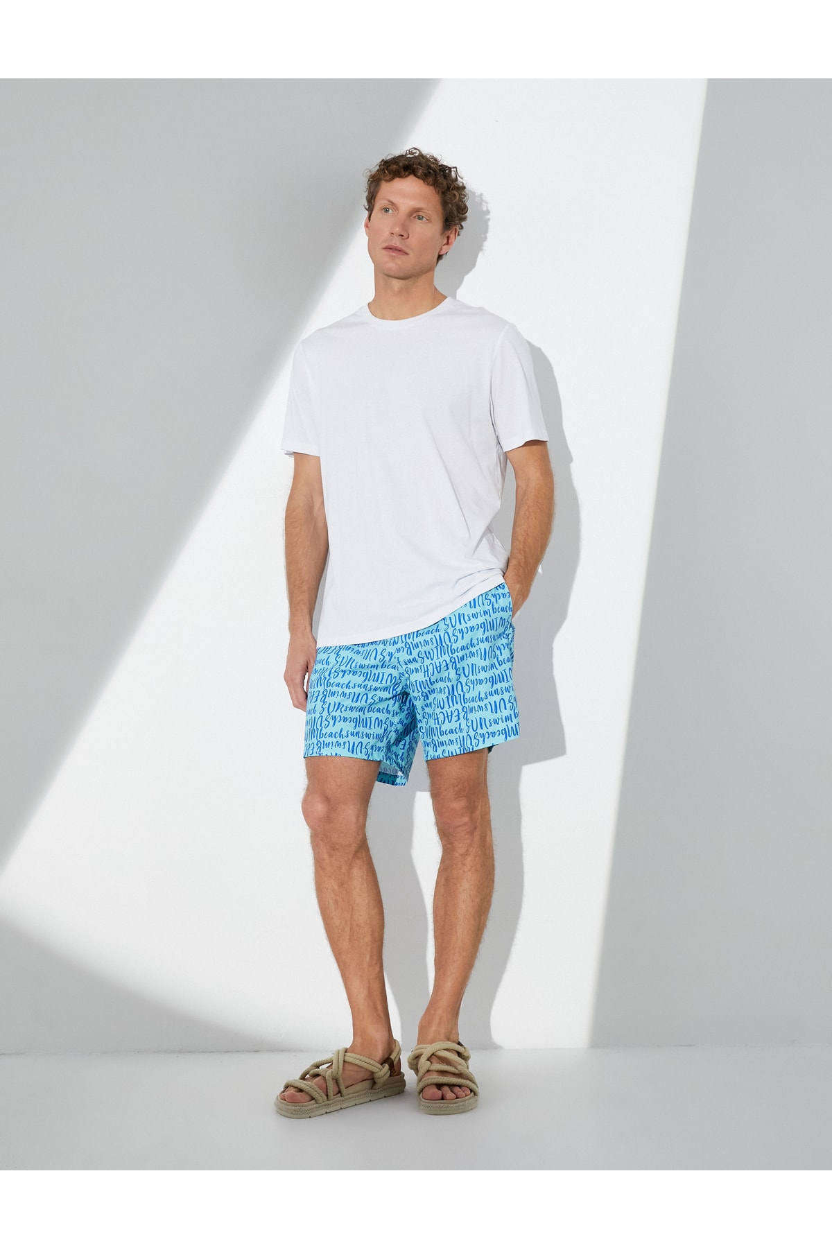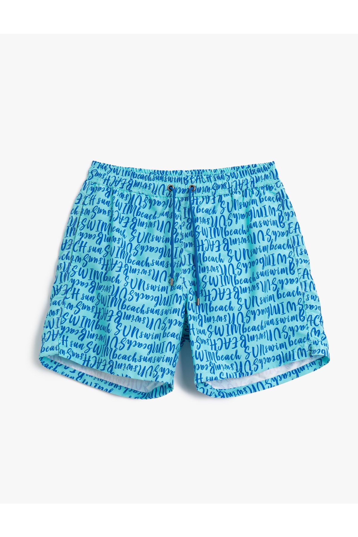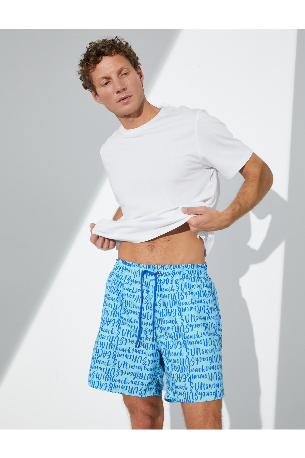 - نام : Deniz Şortu Yazı Baskılı Beli Bağcıklı Cepli