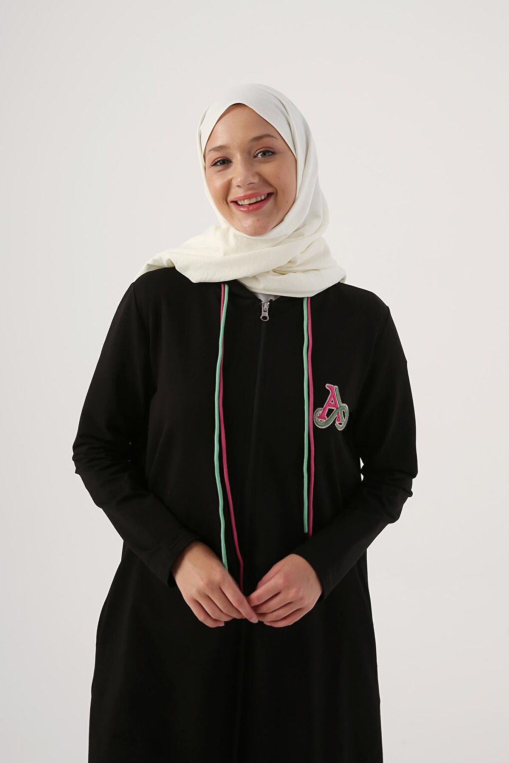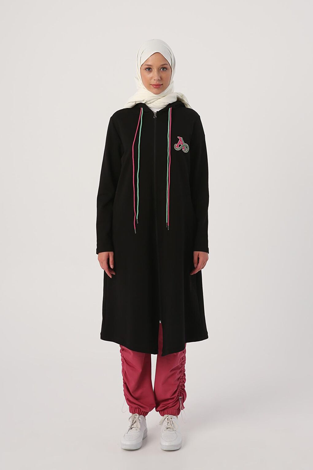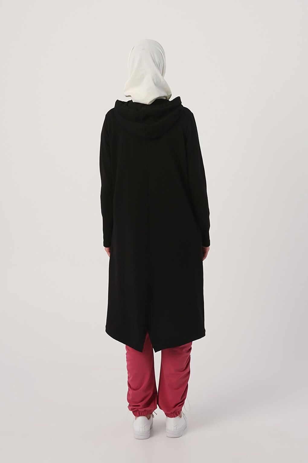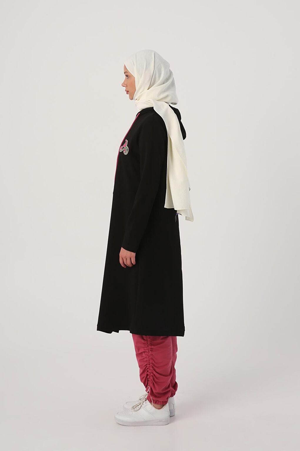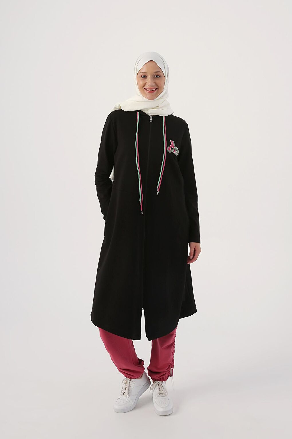 - نام : Siyah Nakışlı Kapüşonlu Rahat Hırka